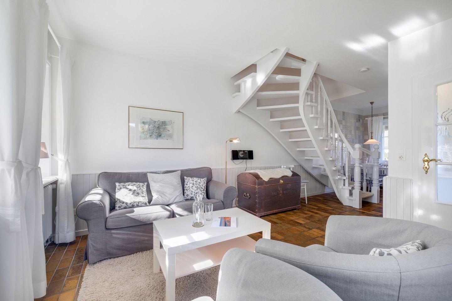 Die „Scheunentor“ Wohnung bietet Platz für bis zu vier Personen und erstreckt sich über Erd- und Obergeschoss. Im Erdgeschoss finden Sie den freundlich eingerichteten Wohnbereich mit Sitzgruppe, Essplatz und Küchenzeile. Über eine Holztreppe erreichen Sie im Obergeschoss zwei helle, gemütliche Schlafzimmer mit eingebauten Betten ( jeweils 80 x 190 cm ) sowie das Duschbad. Auf dem 1000qm großen Grundstück stehen Ihnen eine eigene Sitzgruppe und ein Strandkorb (ca. April - Oktober) zur Verfügung und laden dazu ein, die Seele baumeln zu lassen.