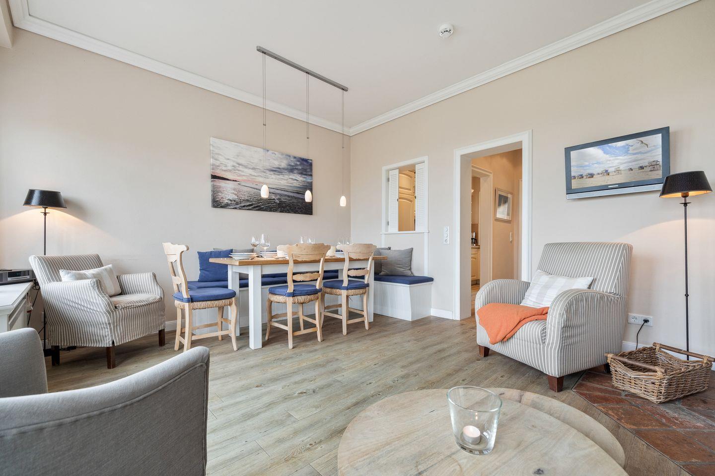 stilvoll eingerichteter Wohnraum (Flat-TV, Stereo-Anlage mit CD,W-LAN) mit Kamin und angrenzenden Essplatz