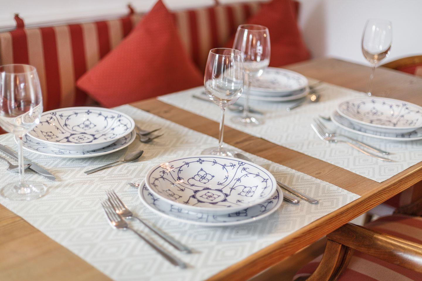 Gemütlicher Wohnraum mit einer Sitzgruppe und einer Esstischgruppe (TV und Wlan)