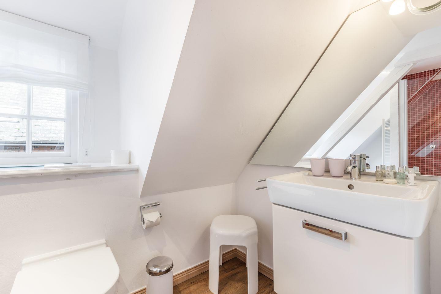 Im Erdgeschoss des Hauses befinden sich die separate Küche, ein Duschbad und der Wohnbereich. Original "Delfter Fliesen" geben dem gemütlichen Wohnraum seinen besonderen Charme. Im 1. OG befinden sich die zwei Schlafzimmer und ein weiteres modernes Duschbad. Der Garten lädt zum Verweilen ein.