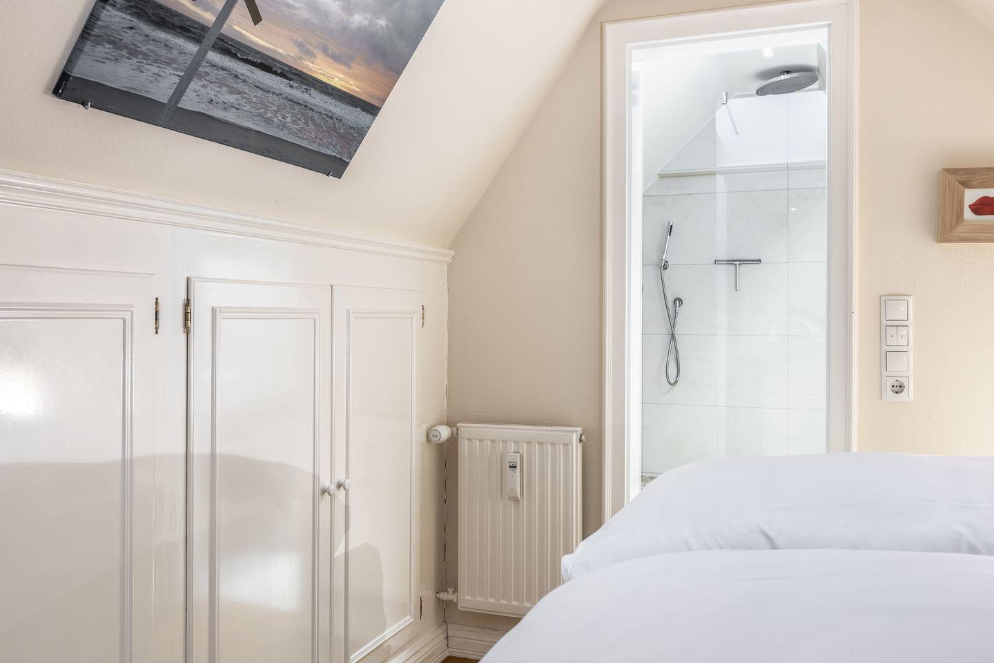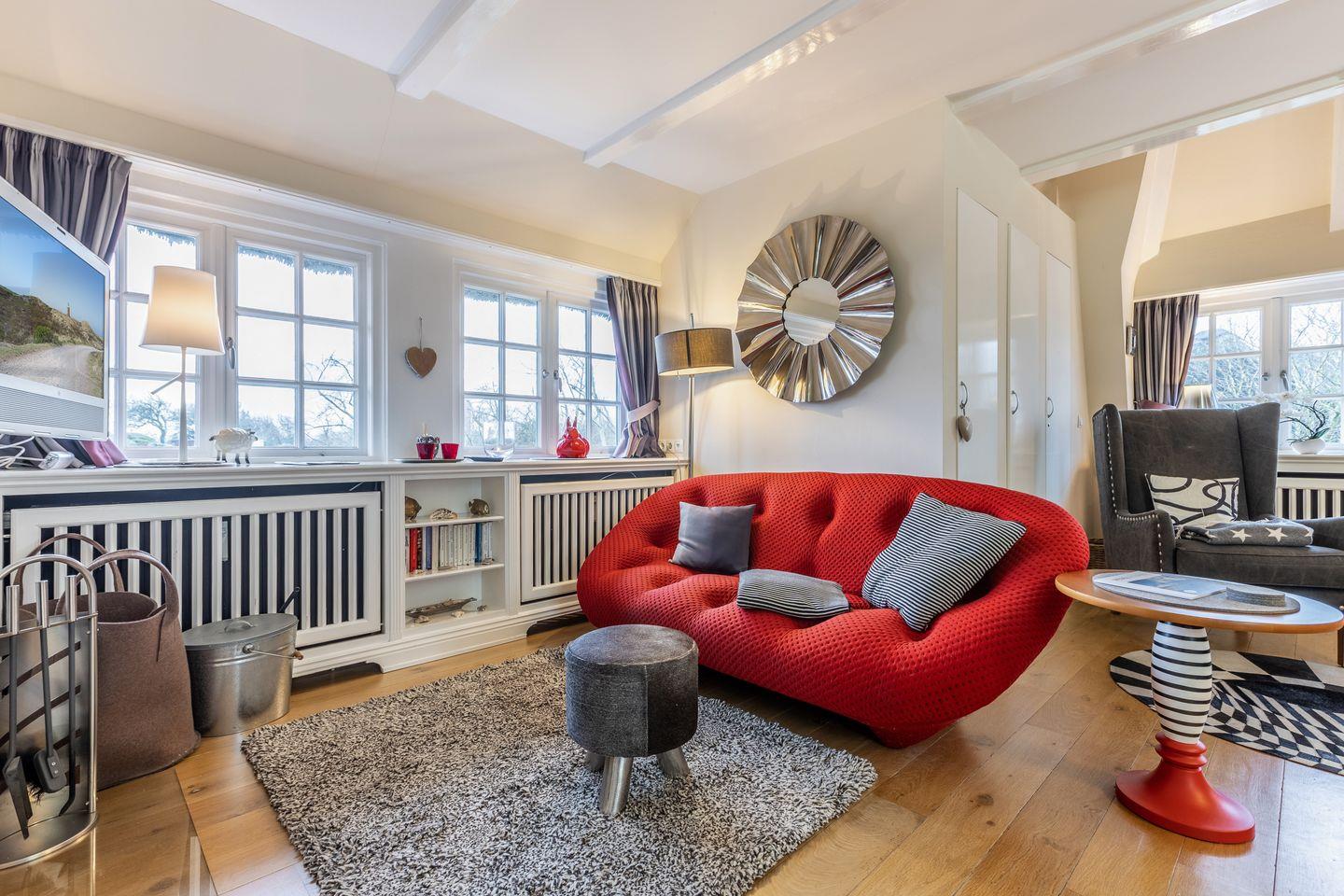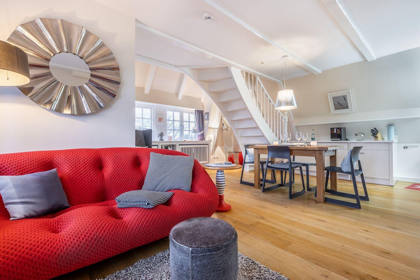 Das „Kleine Nest“ ruht im Obergeschoss eines Reetdachhauses im nord-östlichen Teil Keitums mit unverbautem Blick aufs Wattenmeer.