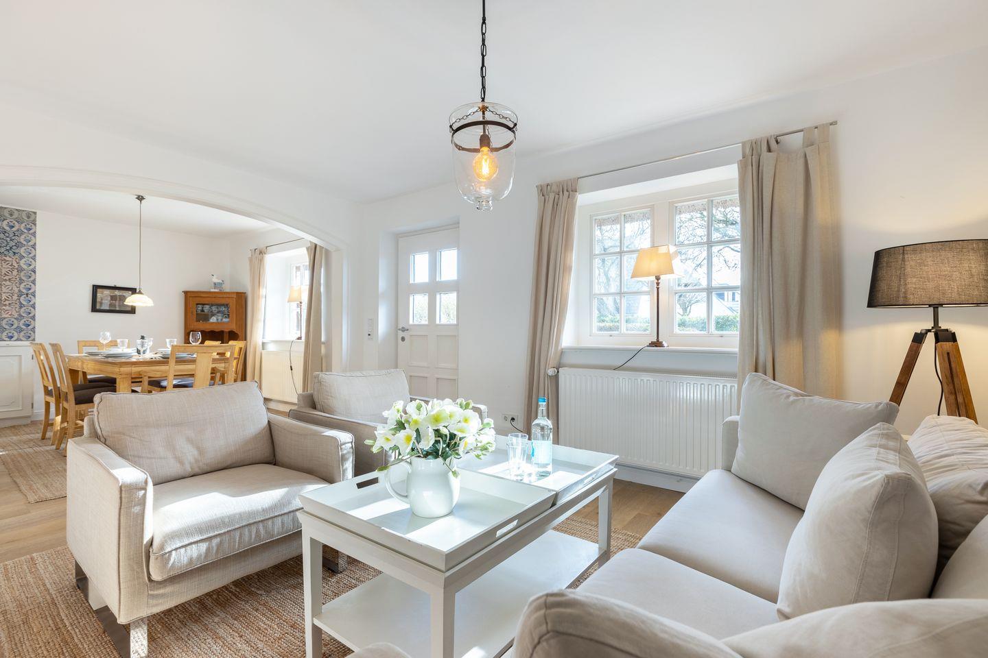 Entfliehen Sie dem Alltag in dieser charmanten Ferienwohnung "Paulas Hüs - Paula" auf Sylt, gelegen in der malerischen Gemeinde Keitum. Die großzügige Unterkunft bietet Platz für bis zu fünf Personen und ist ideal für Familien und Paare. Genießen Sie modernen Komfort mit zwei Schlafzimmern, einer voll ausgestatteten Küche und einem gemütlichen Wohnzimmer. Entspannen Sie im Garten oder auf der Terrasse und profitieren Sie von der idealen Lage – nur 230 Meter zum Wattenmeer.