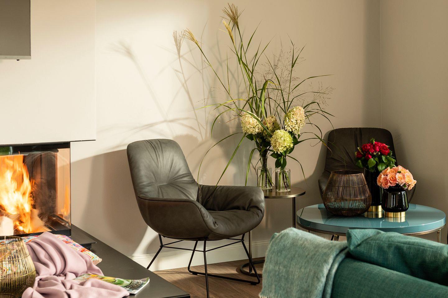 Ein lichtdurchfluteter Wohnraum empfängt Sie mit gemütlicher Couchecke, Kamin und hochwertigem Essbereich mit Platz für bis zu sechs Personen. Die offene Küche ist top-ausgestattet und bietet Ihnen alles, was das Hobbykoch-Herz begehrt. Vom Wohnbereich aus erreichen Sie Ihre beiden Terrassen, die von April bis Oktober möbliert sind. Auf gleicher Ebene finden Sie ein Gäste-WC mit Tageslicht.