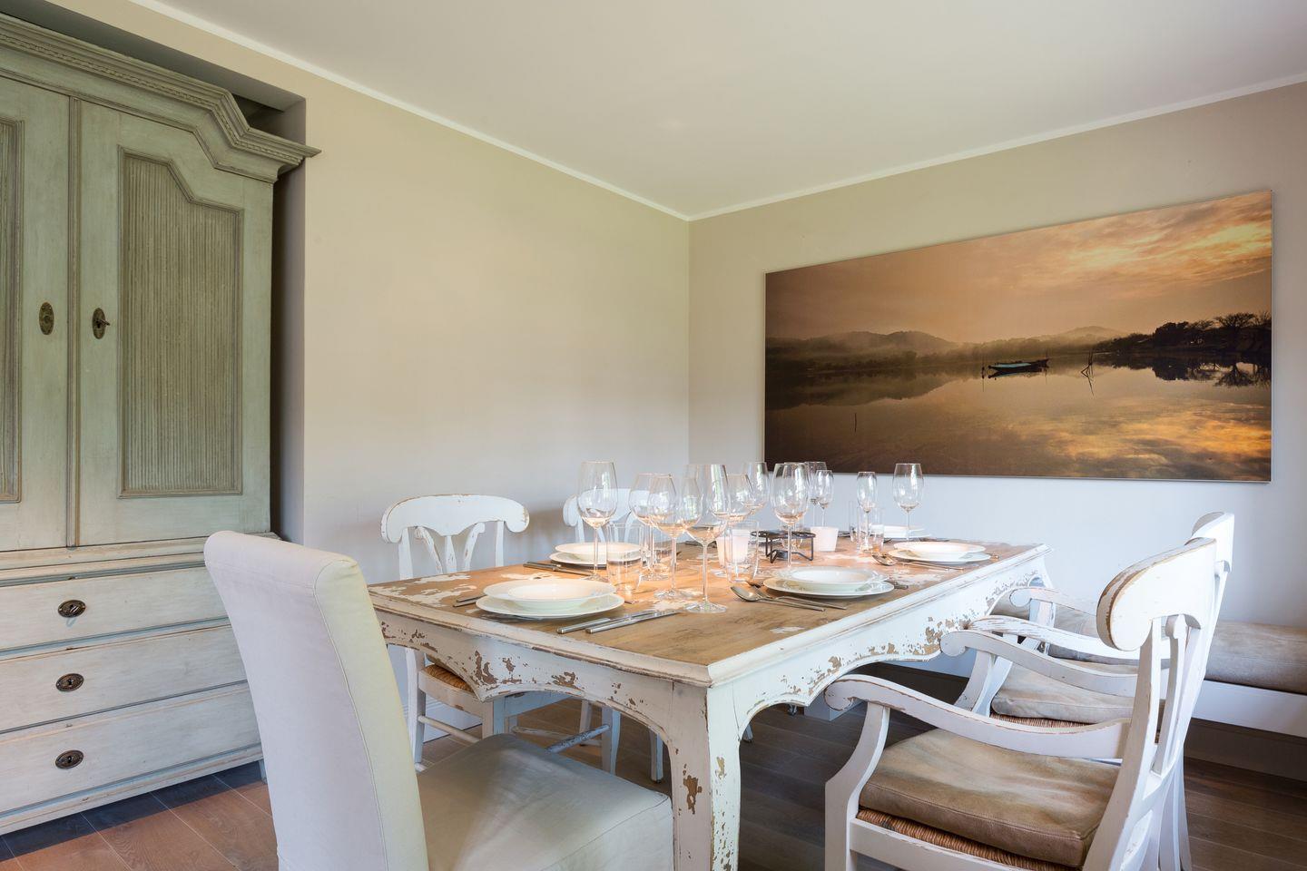Dieses Interior-Design werden auch Sie als keinen Widerspruch wahrnehmen, sondern als eine äußerst geschmackvolle Synthese aus Leichtigkeit und Geborgenheit, die niemals zu dick aufträgt, sondern durch Stil und Eleganz sich vornehm zurückhält. Die original und vom Besitzer eigens aus Asien hand-importierten Zeichnungen im Obergeschoss, als auch die fantastischen Fotos und Bilder des Erdgeschossbereichs werden Sie atmosphärisch verzaubern.