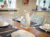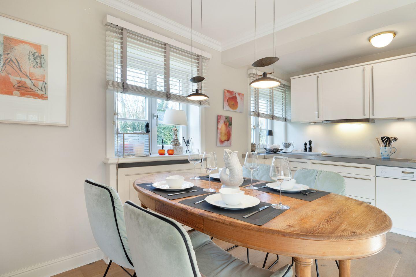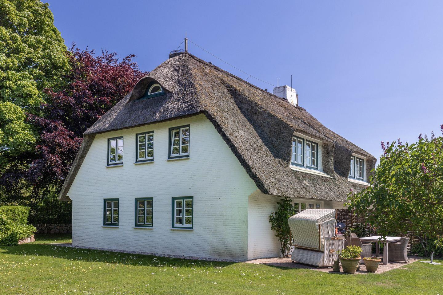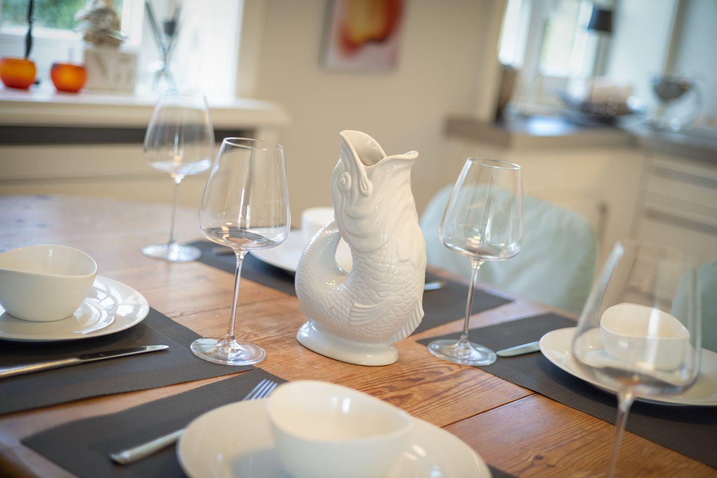 Die voll ausgestattete Küche lässt keine Wünsche offen und ist ideal für alle, die gerne selbst kochen. Sie finden moderne Geräte, darunter einen Induktionsherd, eine Spülmaschine, einen Kühlschrank mit Gefrierfach und viele nützliche Küchenutensilien. Frühstücken Sie auf der sonnigen Terrasse, die mit gemütlichen Gartenmöbeln ausgestattet ist, und genießen Sie die frische Sylter Luft.