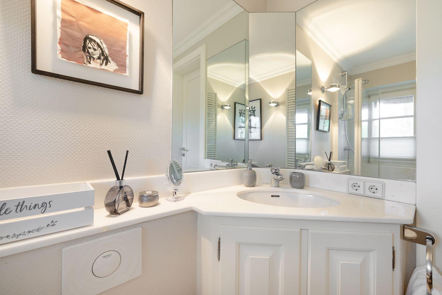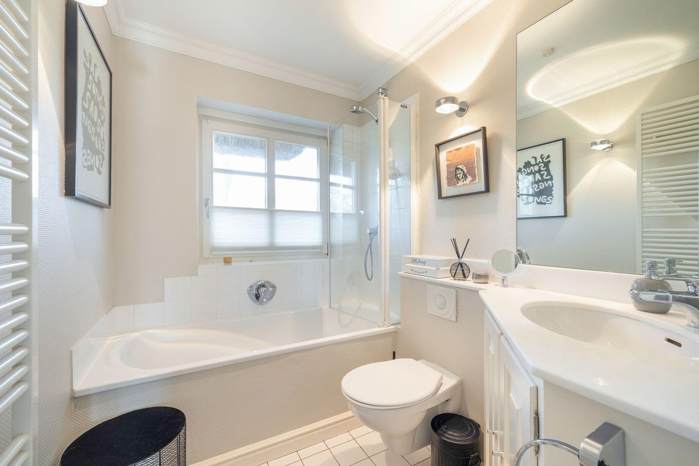Im Schlafzimmer erwartet Sie ein komfortables Bett, das zu erholsamen Nächten einlädt. Die ruhige Lage der Wohnung sorgt für eine entspannende Nachtruhe. Das Badezimmer ist modern eingerichtet und bietet sowohl eine Dusche als auch eine Badewanne – perfekt für entspannende Wellnessmomente nach einem Tag am Strand