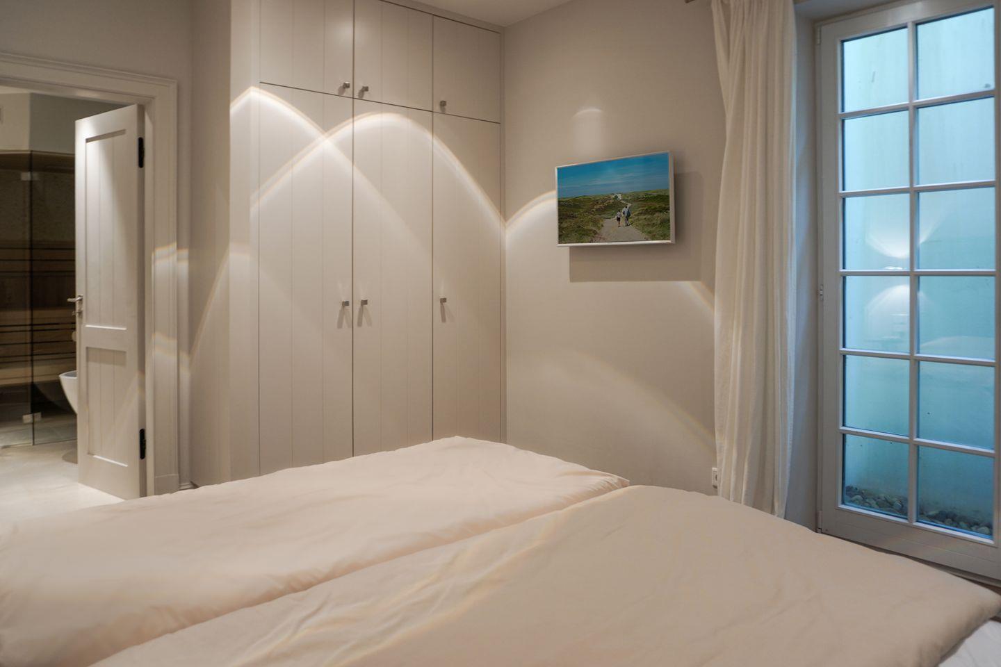 Das Haus bietet drei moderne Badezimmer, die jeweils über eine bodengleiche Dusche verfügen. Zusätzlich gibt es zwei Gäste-WCs. Für Komfort sorgen eine Badewanne und eine Sauna zur Eigennutzung, die entspannende Stunden verspricht. Die Bäder sind teilweise mit Kosmetikspiegel, Ganzkörperspiegel ausgestattet. Handtücher, Bettwäsche, eine Erstausstattung an Badausstattung sowie Geschirrhandtücher werden bereitgestellt.