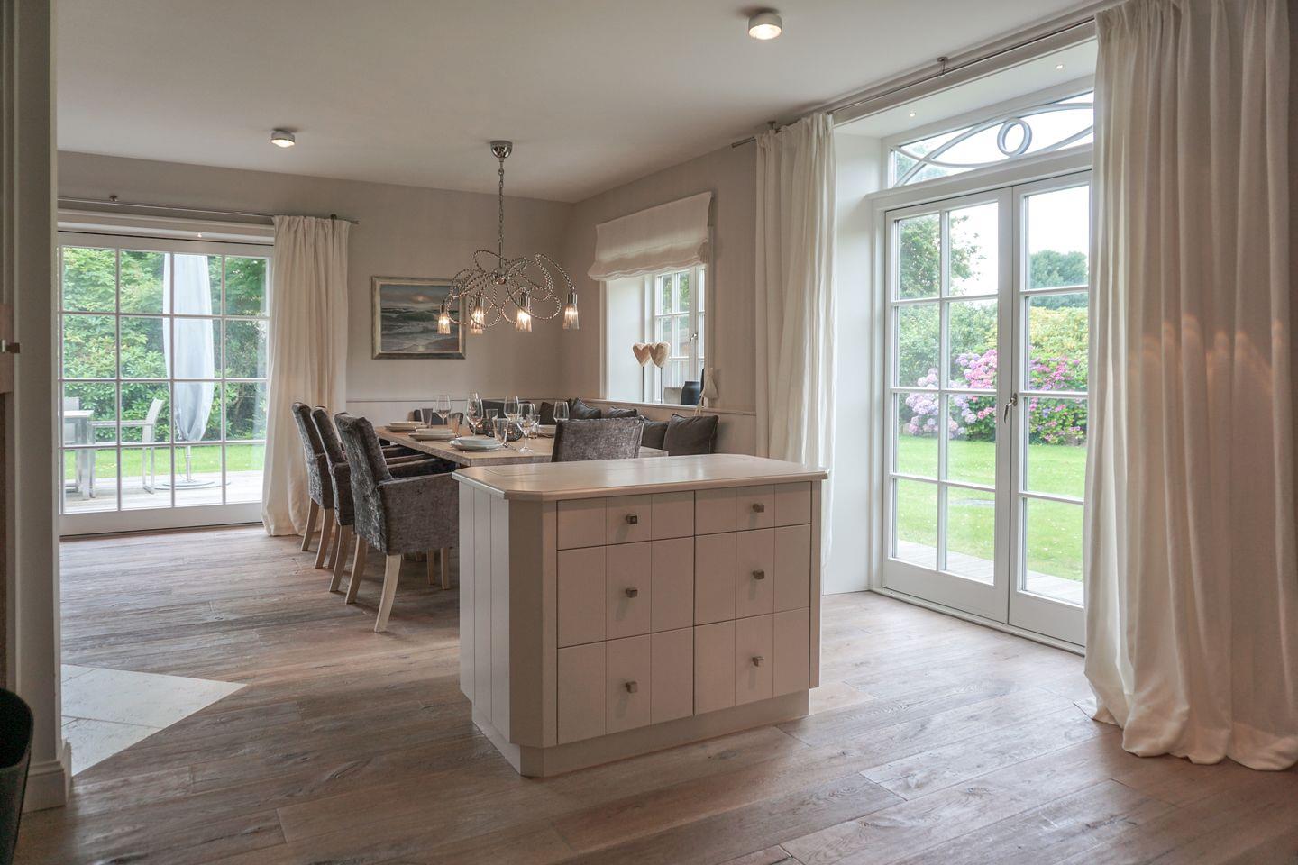 Die offene Küche ist in das Wohnzimmer integriert und verfügt über eine moderne Induktionskochplatte, einen Backofen mit Elektroanschluss, einen großen Kühlschrank sowie einen separaten Gefrierschrank. Für den alltäglichen Komfort stehen Ihnen eine Nespresso-Espressomaschine, Wasserkocher, Küchenutensilien, Geschirr und Besteck zur Verfügung. Eine Spülmaschine, Waschmaschine und Trockner zur Eigennutzung komplettieren die umfangreiche Haushaltsausstattung.
