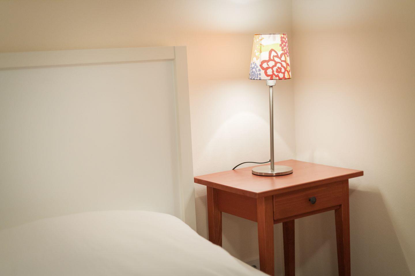 Schlafen: Schlafraum mit Doppelbett (2 Matratzen à 90 x 200 cm) und
