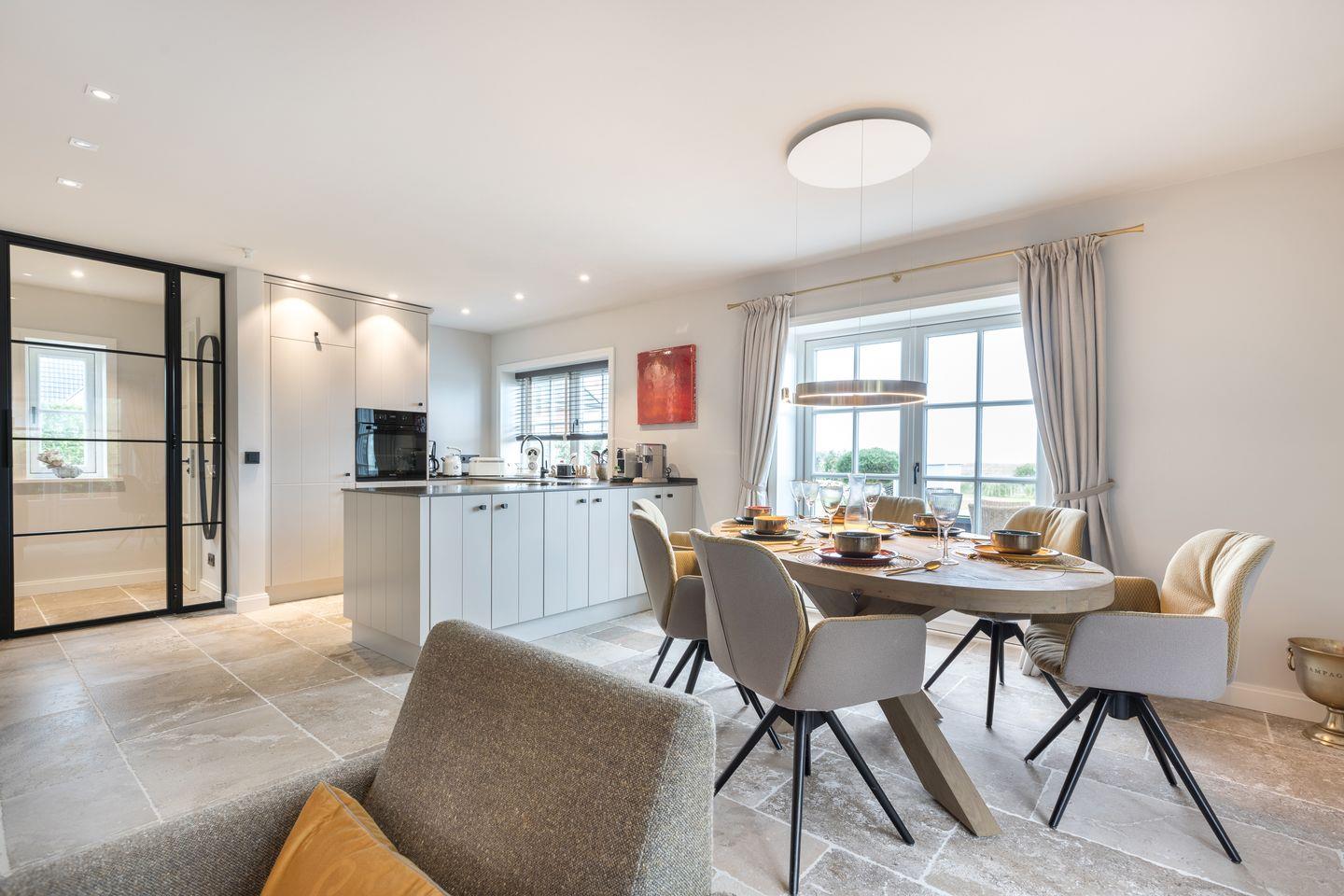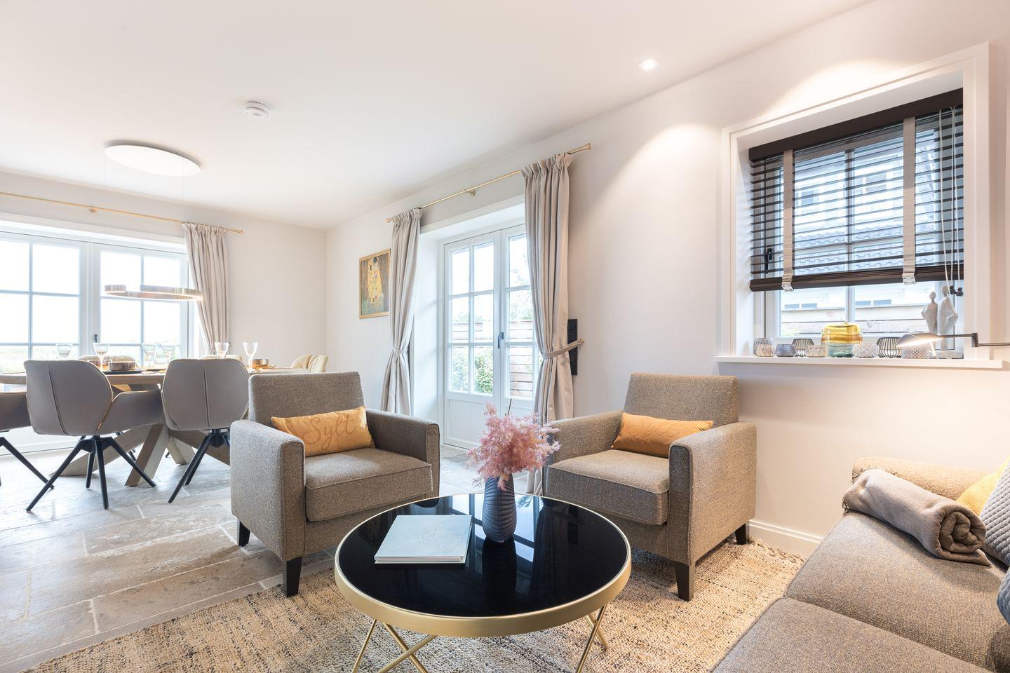 Der Wohnbereich des Hauses ist offen gestaltet und bietet Ihnen neben einem gemütlichen Couchbereich auch einen Kamin sowie einen großzügigen Essbereich für bis zu sechs Personen mit Blick in den wunderbaren Garten, der mit zwei möblierten Terrassen immer einen tollen Sonnenplatz bietet. Die von Tischlern maßangefertigte Küche bietet Ihnen vom BORA Induktionskochfeld bis zur Nespresso Maschine alles, was das Hobbykoch-Herz begehrt. Auf gleicher Ebene finden Sie außerdem ein Gäste-WC.