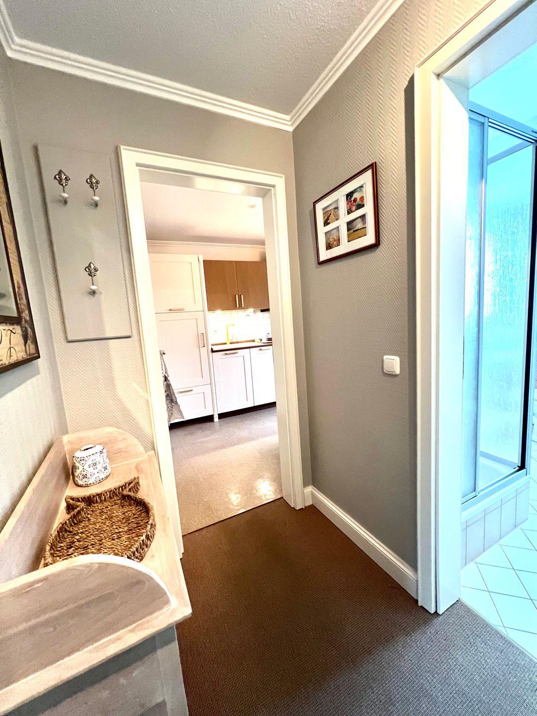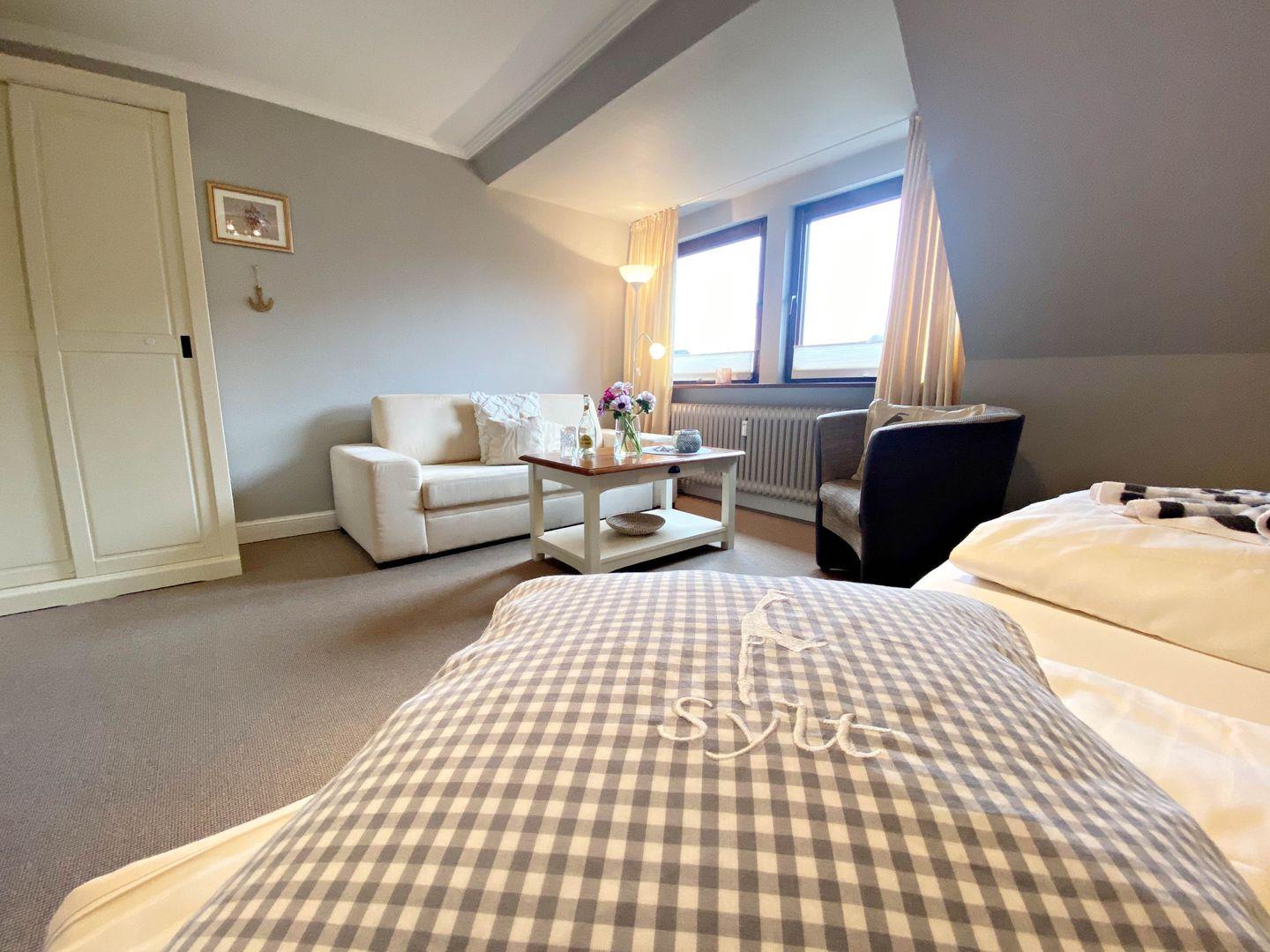 Unsere 1-Zimmer-Ferienwohnung "Annika1" liegt im ersten Stock einer kleinen Appartementanlage am Rande von Westerland, trotzdem mittendrin und doch nah bei den weitläufigen Salzwiesen. In wenigen Schritten erreichen Sie die Haltestelle des Inselbusses der SVG, der Bäcker liegt eben um die Ecke. Im Zentrum von Westerland sind Sie zu Fuß in gut 10 bis 15 Minuten, je nachdem, wie forsch Sie unterwegs sind oder wieviele Sie unterwegs auf einen Schnack treffen. Das Appartement ist ungefähr 45 Quadratmeter groß und lichtdurchflutet.