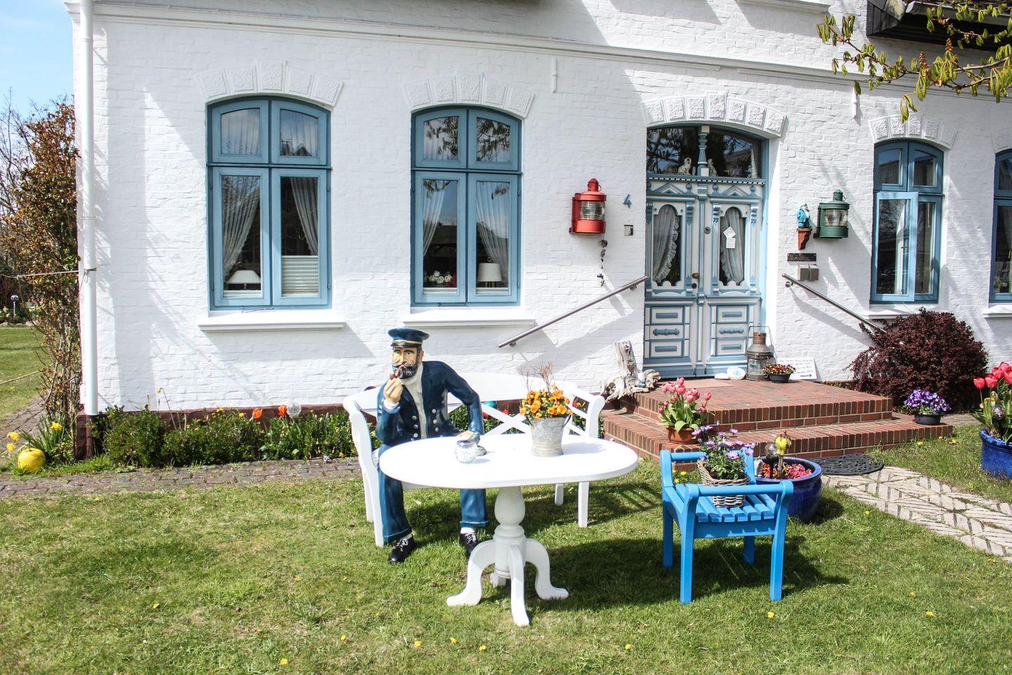 Das ist perfektes Inselambiente: Im Obergeschoss vom Haus "Käpt'n Andresen" in Tinnum finden Sie die 38 Quadratmeter große 2-Zimmer-Ferienwohnung "Tessa". "Tessa" ist in sommerlichen Farben gehalten, hier können Sie gern den großzügigen Garten mit seinen Sitzecken mitbenutzen und in die Tinnumer Wiesen ist es zu Fuß auch nicht weit. Ein Parkplatz liegt direkt vor dem Haus.
