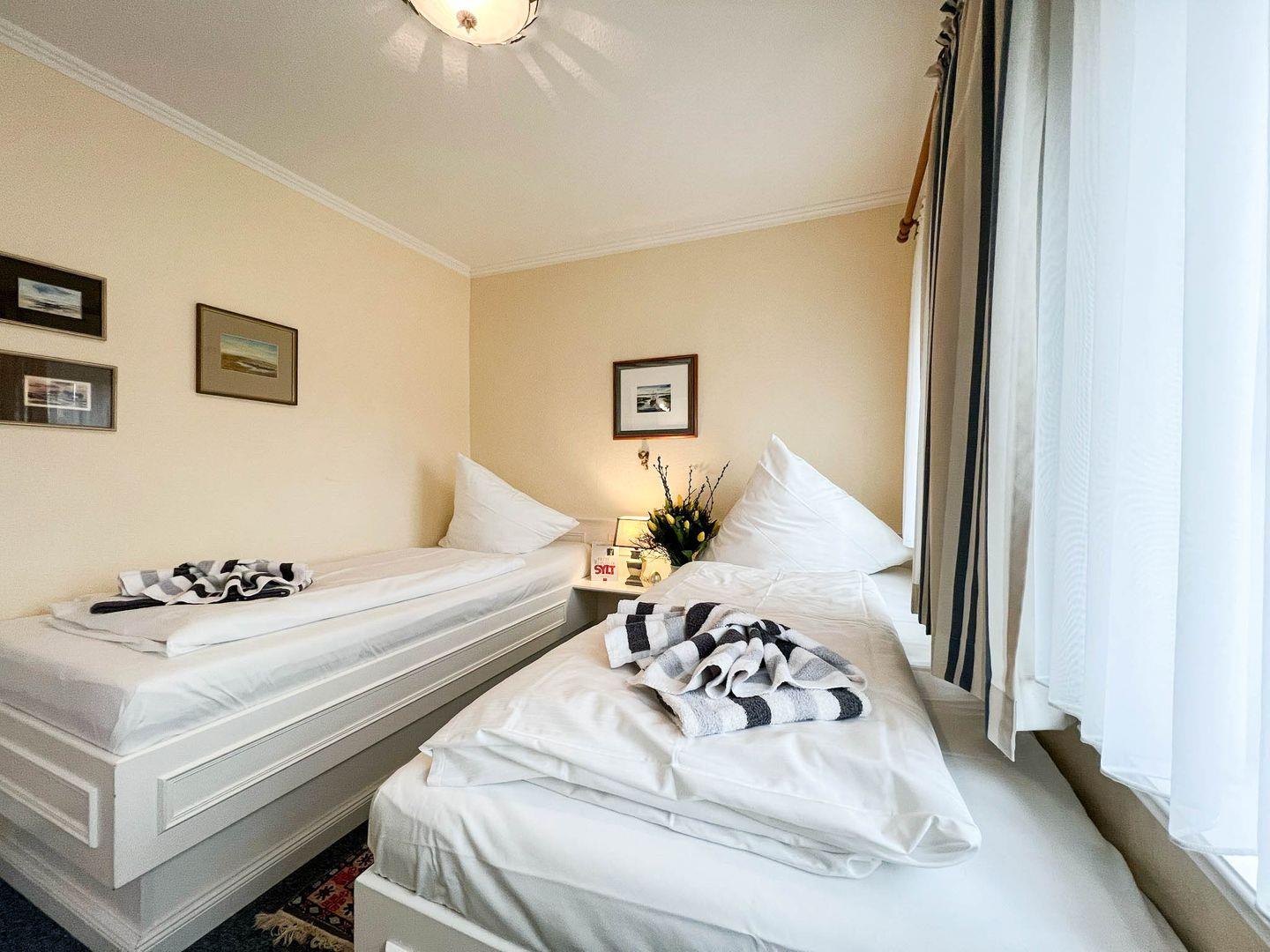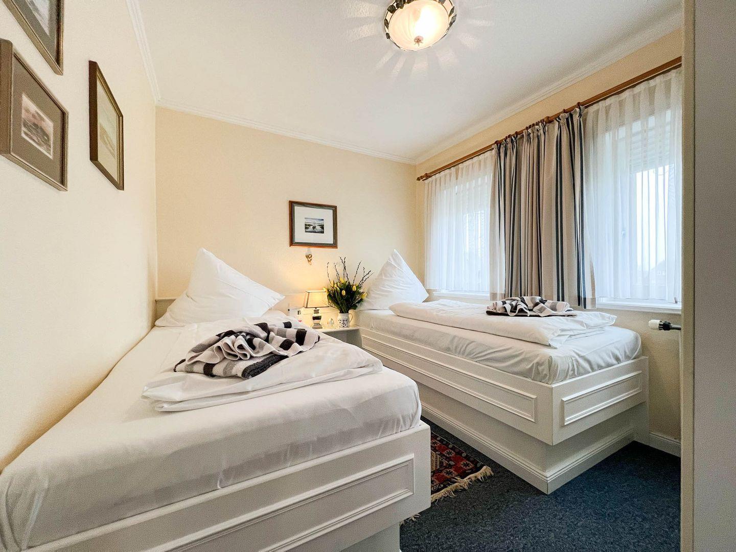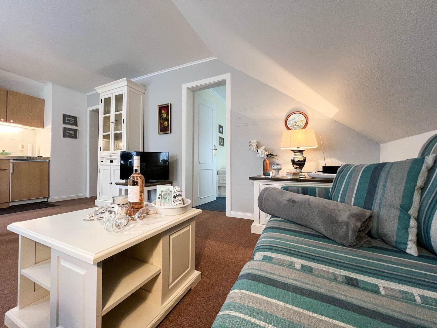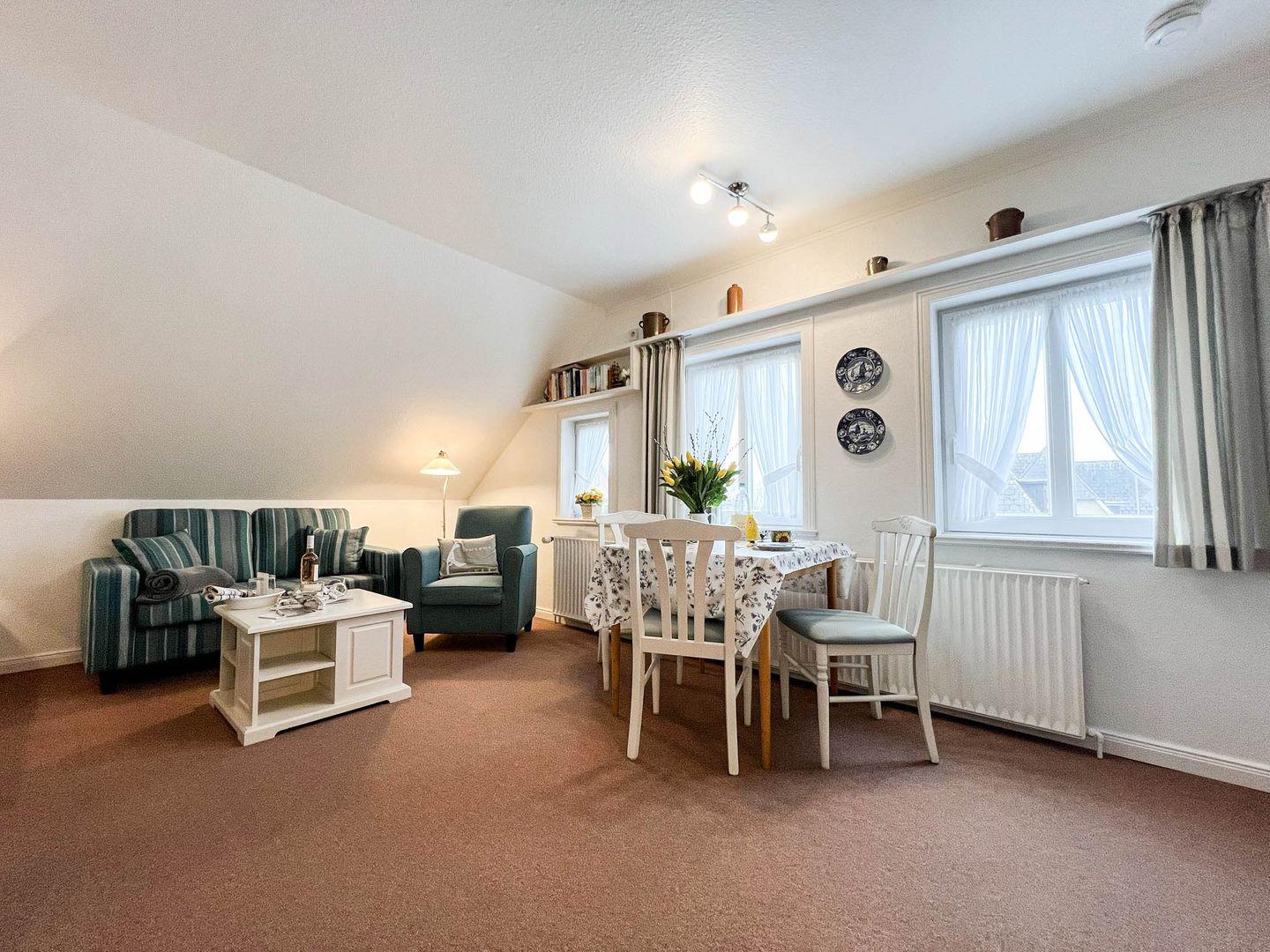 Erleben Sie das perfekte Inselambiente im Obergeschoss des Hauses "Käpt'n Andresen" in Tinnum, wo Sie die 38 Quadratmeter große 2-Zimmer-Ferienwohnung "Tessa" erwartet. Die Wohnung präsentiert sich in sommerlichen Farben, die eine frische und einladende Atmosphäre schaffen. Gäste sind herzlich eingeladen, den großzügigen Garten mit seinen gemütlichen Sitzecken zu nutzen und die entspannte Inselatmosphäre zu genießen. Die Lage ermöglicht es, zu Fuß die malerischen Tinnumer Wiesen zu erreichen, und lädt zu erholsamen Spaziergängen inmitten der Natur ein. Ein zusätzlicher Vorteil ist der direkt vor dem Haus gelegene Parkplatz, der die Anreise und Abreise besonders bequem gestaltet. "Tessa" bietet somit nicht nur eine geschmackvolle Unterkunft, sondern auch die Gelegenheit, die Schönheit der Insel Sylt in vollen Zügen zu erleben. Ob entspannte Stunden im Garten oder ausgedehnte Spaziergänge in der umliegenden Natur – hier finden Gäste den idealen Rückzugsort für einen erholsamen Inselurlaub.