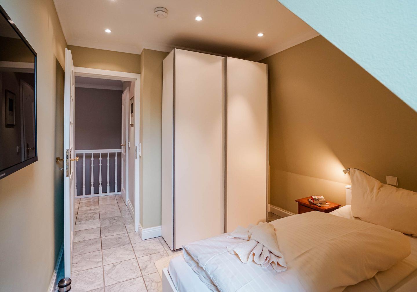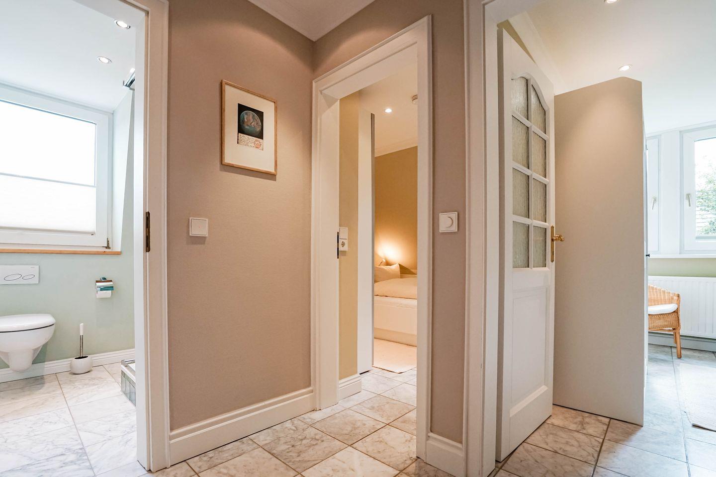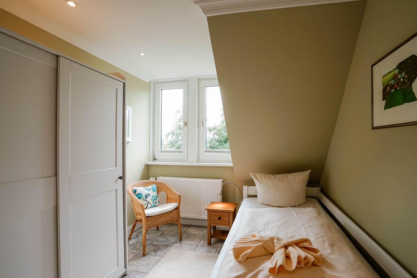 Moin und herzlich Willkommen im Ferienhaus „Oene“ in Tinnum, einem Hausteil für bis zu fünf Personen ganz in der Nähe der Tinnumer Salzwiesen, genau dort also, wo sozusagen die Mitte von Sylt liegt und die Atmosphäre eher dörflich-gemütlich ist. Hier hört man an manchen Tagen noch das Klappern von Pferdehufen auf Asphalt, hier ist das urgemütliche „Hofcafé Klein‘er Kuhstall“ von Birgit Klein nur eben „um die Ecke“, das Rantumbecken nah und auch zum Strand der „Oase zur Sonne“ ist es nicht wirklich weit. Dieses attraktive Ferien-Domizil ist klar und nicht überladen eingerichtet, im Erdgeschoss gefliest, und mit allem Komfort ausgestattet, den man sich auch im Urlaub wünscht. Eine Waschmaschine ist da, ein Kaminofen sorgt an stürmischen Tagen für Atmosphäre. Der für Sylter Verhältnisse ungewöhnlich große Garten mit Rutsche und Schaukel macht Kindern und Hundebesitzern Freude, sogar ein kleiner Kräutergarten gehört dazu, der sich über Nutzung und etwas Pflege bestimmt freut. Drei Schlafzimmer bietet das Haus im Obergeschoss, ein Einzel und zwei Doppel, zwei Duschbäder gehören dazu. Das Ganze gibt‘s zu einem familienfreundlichen Preis und als Clou maritime Hingucker in den Zimmern obendrauf: faszinierende Schiffsdioramen!