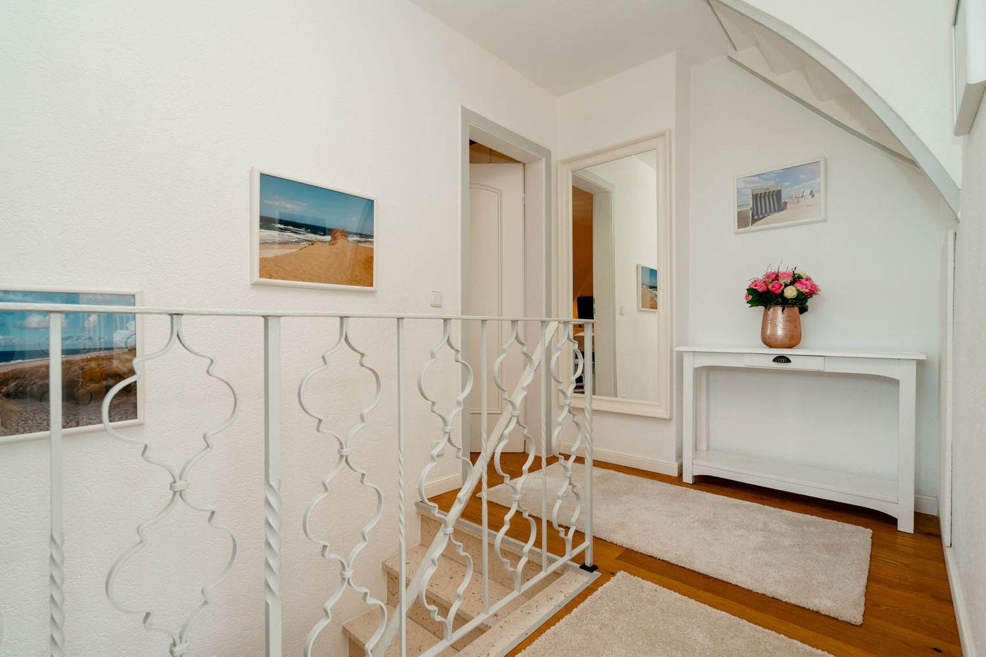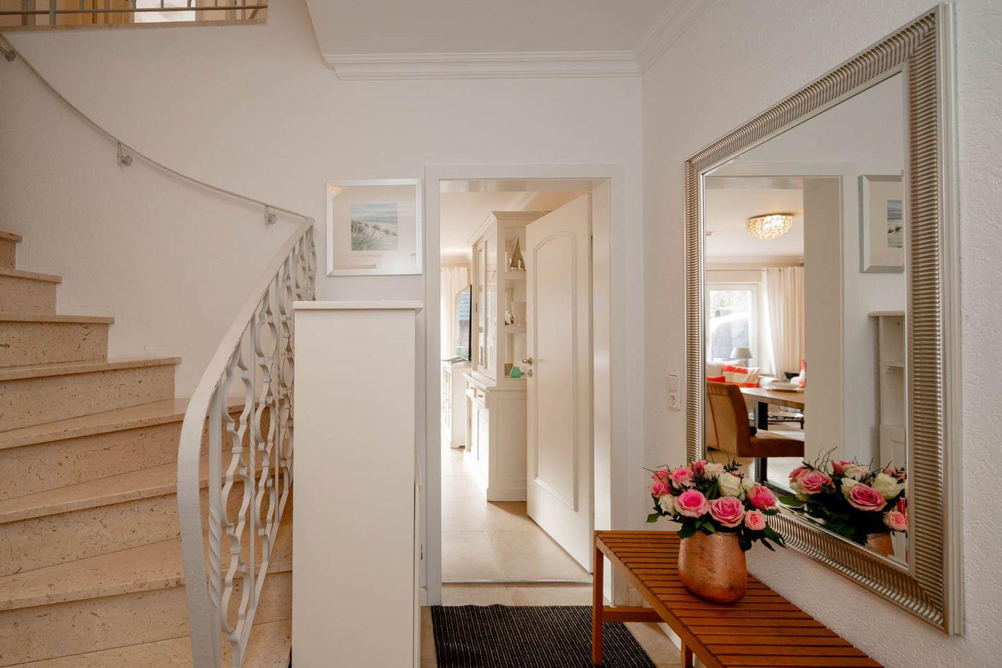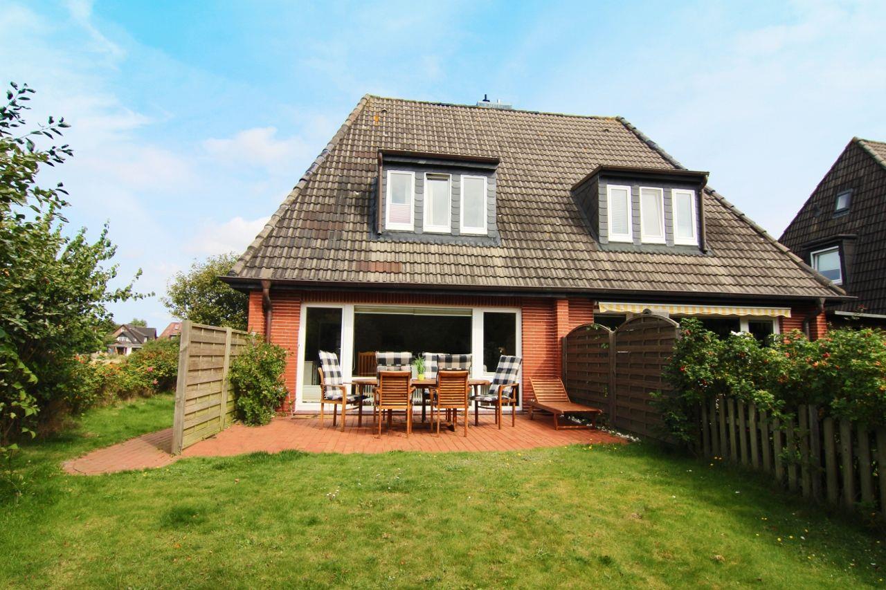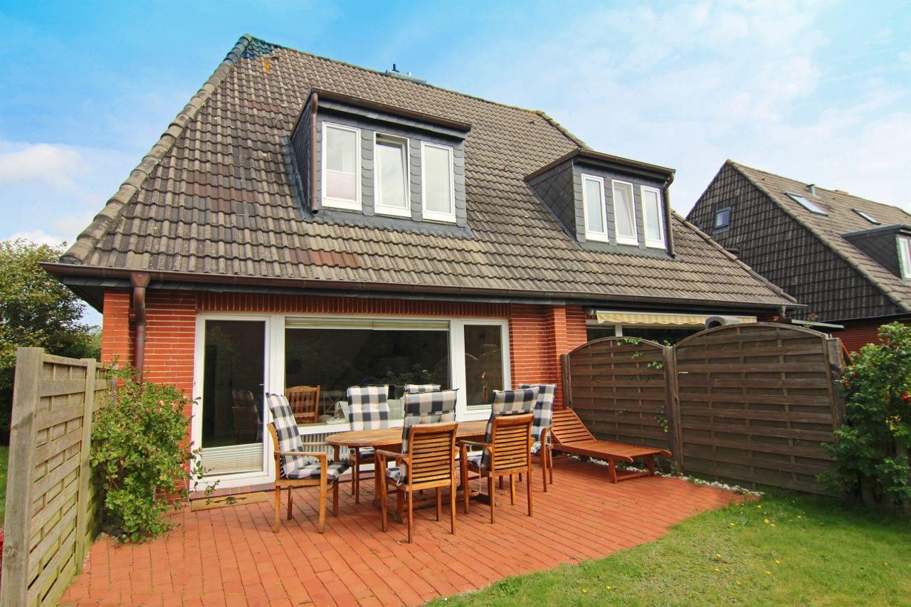 Herzlich Willkommen im Haus "Sprotte": Diese schöne Doppelhaushälfte mit Einzelhauscharakter bietet Ihnen auf ungefähr 120 Quadratmetern Wohnfläche ausreichend Platz für bis zu sechs Personen. Ein wunderschöner Blick in die weitläufigen Tinnumer Wiesen, eine große und möblierte Süd-Terrasse und der eingewachsene Garten sind nicht die einzigen Vorteile dieses Ferienhausteils: Ein Kamin, Holzdielenboden und attraktiver Wohnzimmerwandputz in Steinoptik sorgen für den individuellen Charme des Urlaubsdomizils.