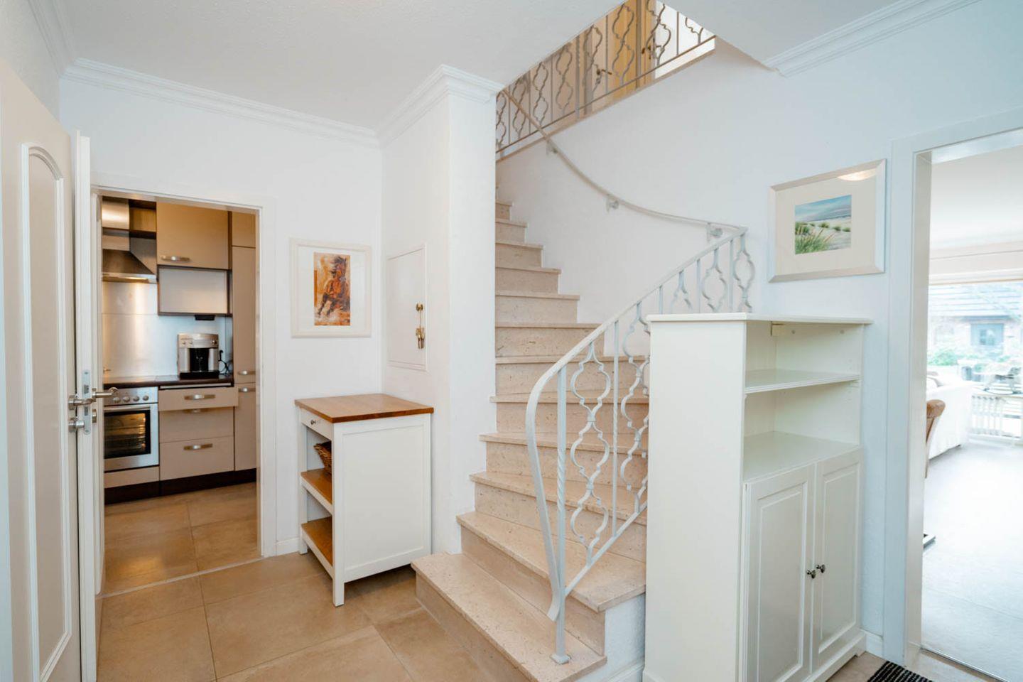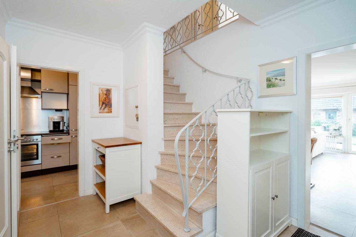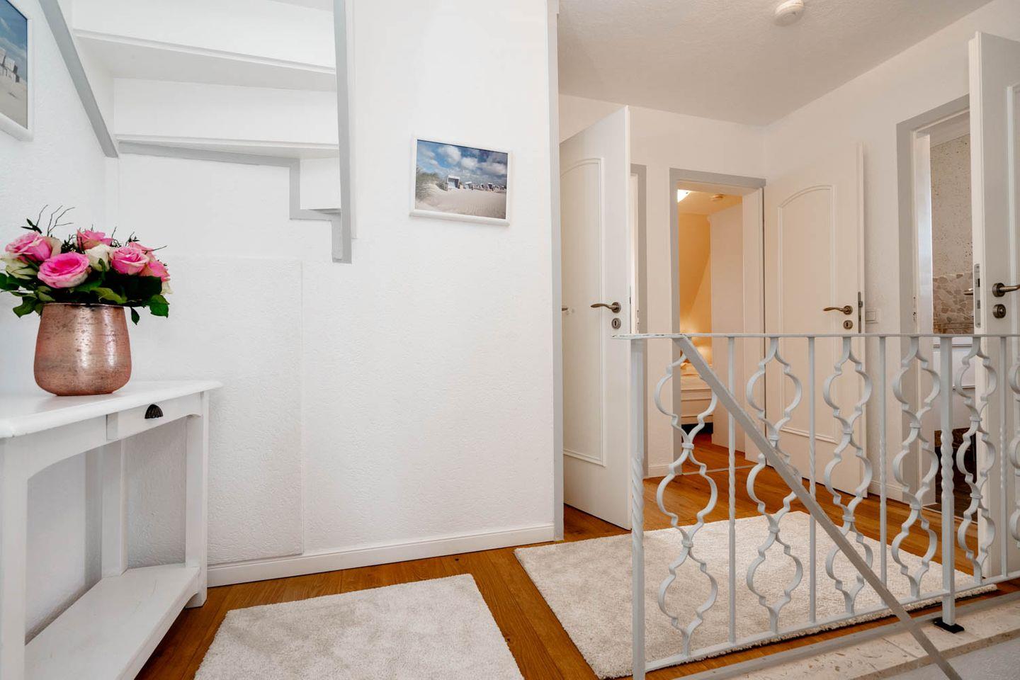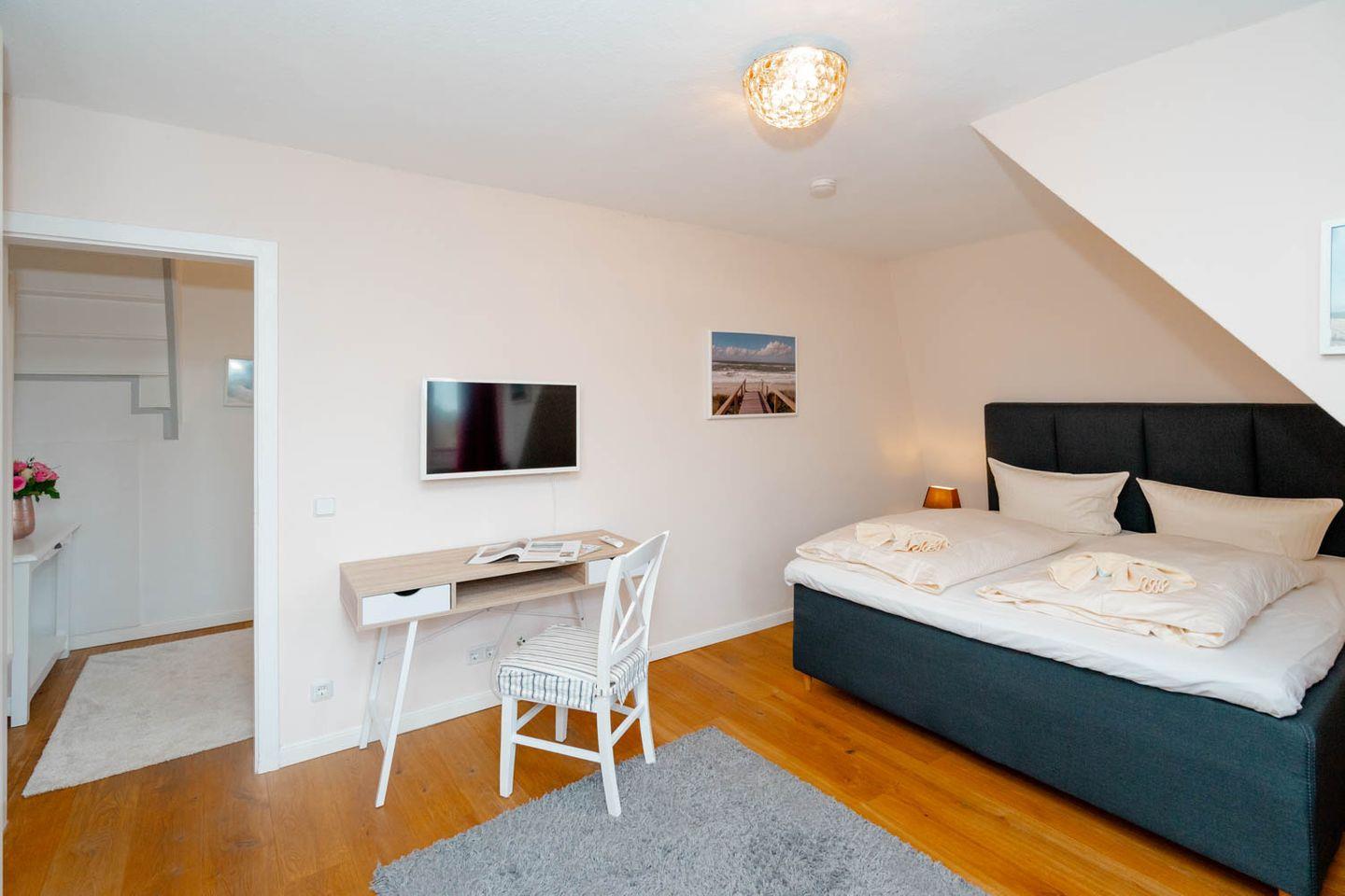 Herzlich Willkommen im Haus "Sprotte": Diese schöne Doppelhaushälfte mit Einzelhauscharakter bietet Ihnen auf ungefähr 120 Quadratmetern Wohnfläche ausreichend Platz für bis zu sechs Personen. Ein wunderschöner Blick in die weitläufigen Tinnumer Wiesen, eine große und möblierte Süd-Terrasse und der eingewachsene Garten sind nicht die einzigen Vorteile dieses Ferienhausteils: Ein Kamin, Holzdielenboden und attraktiver Wohnzimmerwandputz in Steinoptik sorgen für den individuellen Charme des Urlaubsdomizils.