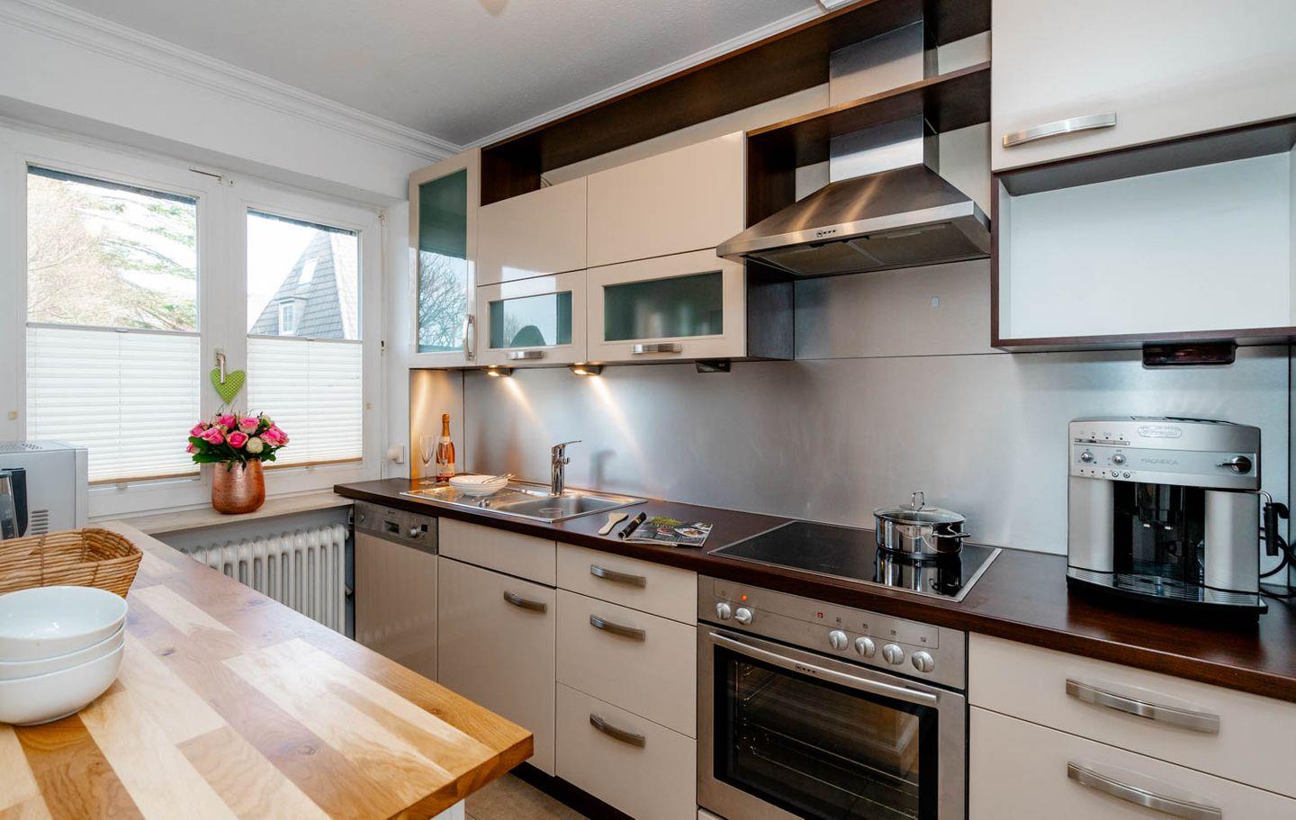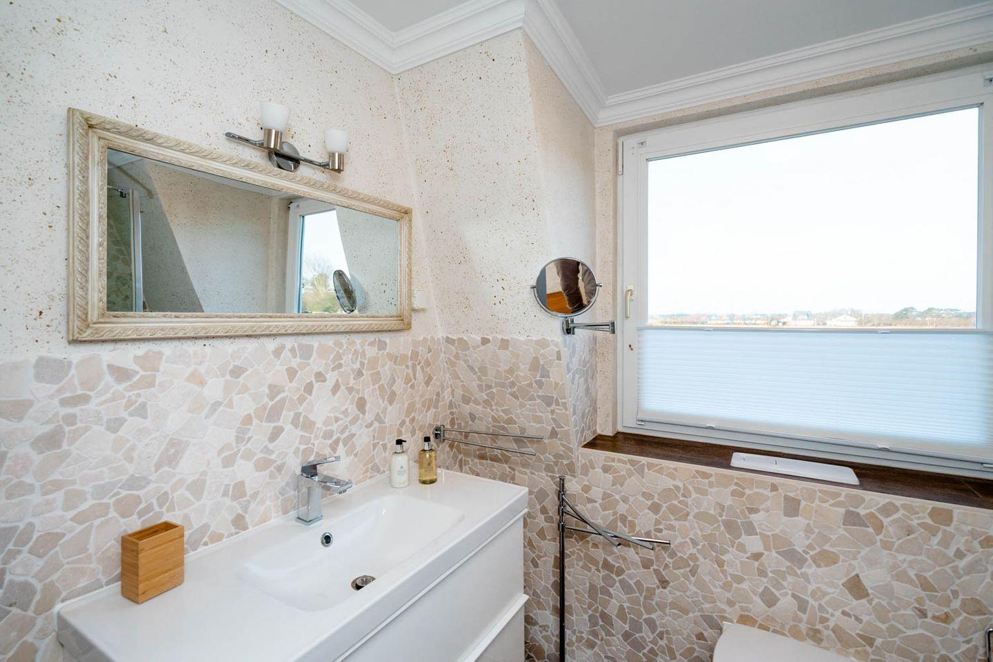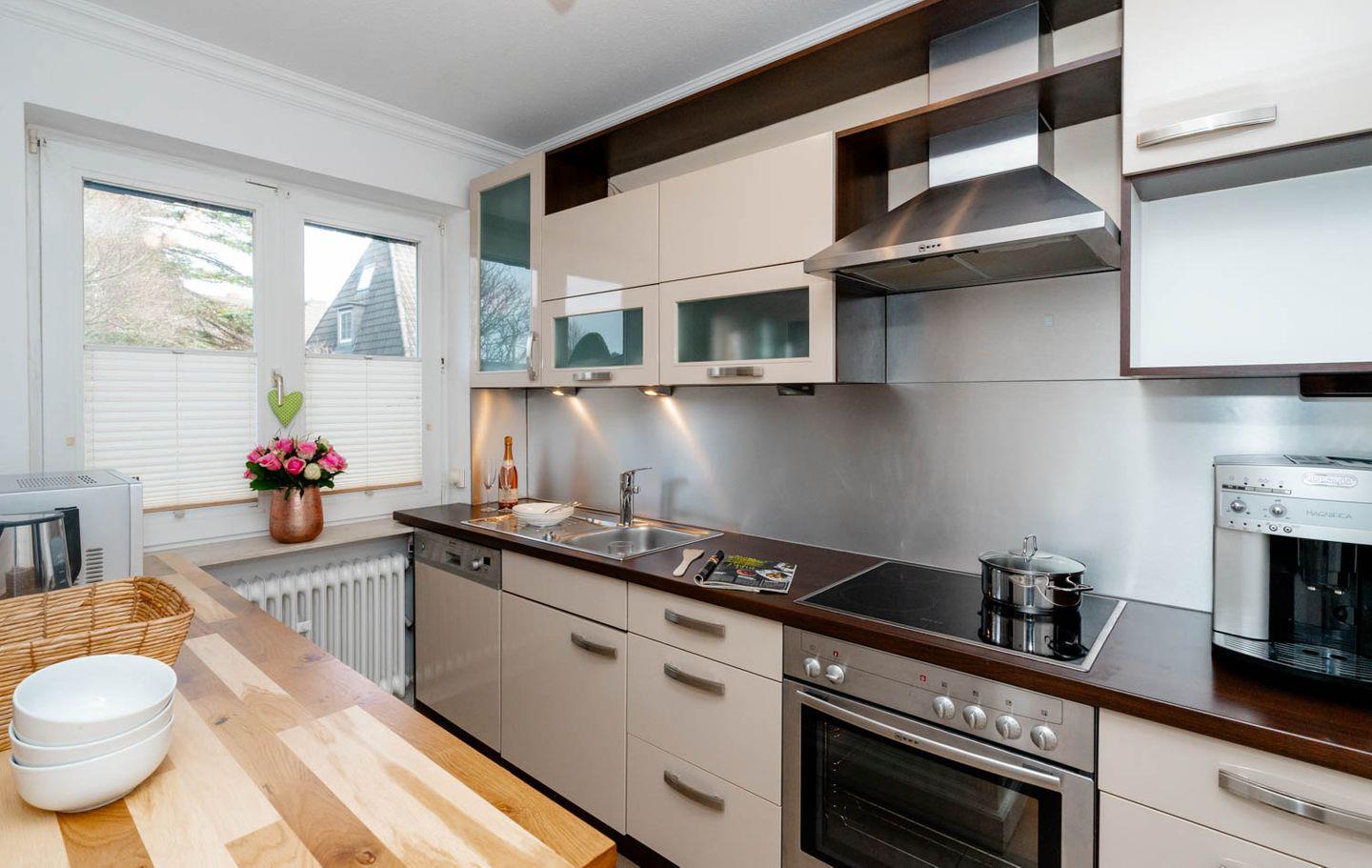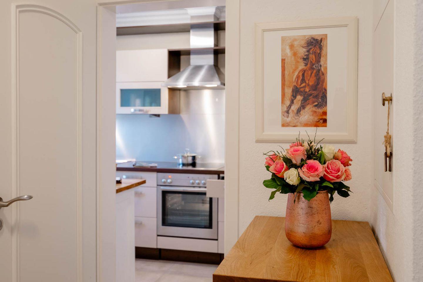 Herzlich Willkommen im Haus "Sprotte": Diese schöne Doppelhaushälfte mit Einzelhauscharakter bietet Ihnen auf ungefähr 120 Quadratmetern Wohnfläche ausreichend Platz für bis zu sechs Personen. Ein wunderschöner Blick in die weitläufigen Tinnumer Wiesen, eine große und möblierte Süd-Terrasse und der eingewachsene Garten sind nicht die einzigen Vorteile dieses Ferienhausteils: Ein Kamin, Holzdielenboden und attraktiver Wohnzimmerwandputz in Steinoptik sorgen für den individuellen Charme des Urlaubsdomizils.