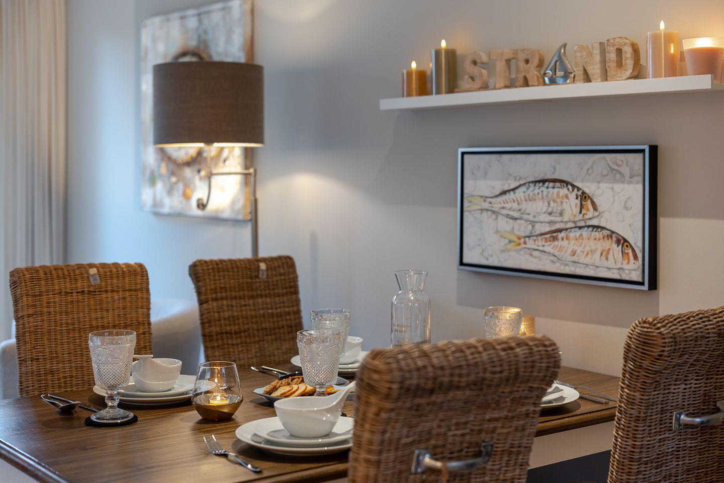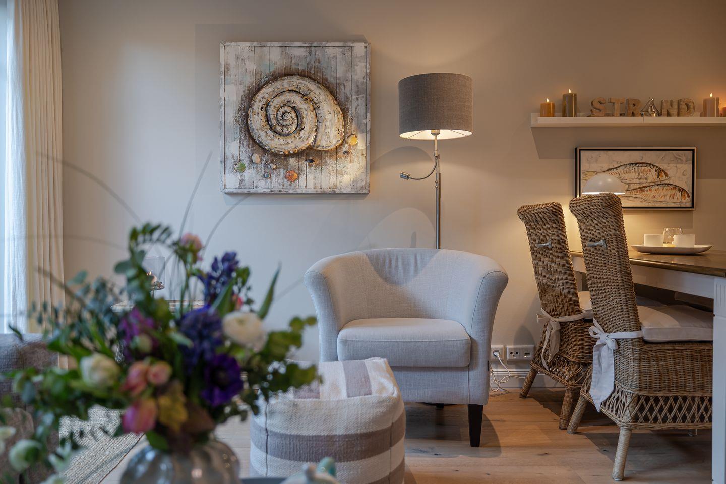 Auf drei geschmack- und liebevoll mit Eichendielen, warmen Syltfarben und mit Fußbodenheizung versehenen Ebenen stellt sich leicht das cozy Syltfeeling ein, um dem Alltagsstress zu entfliehen.