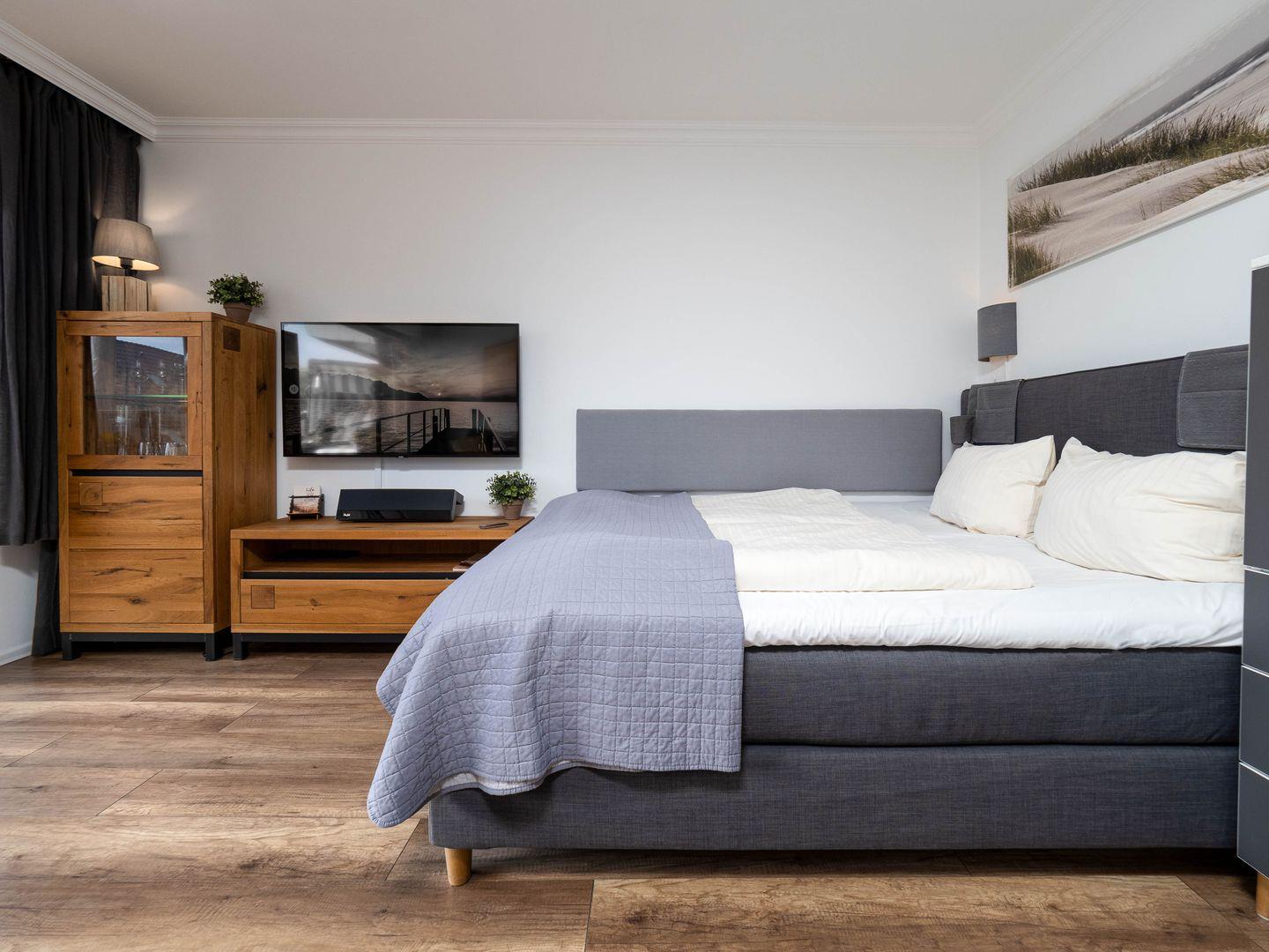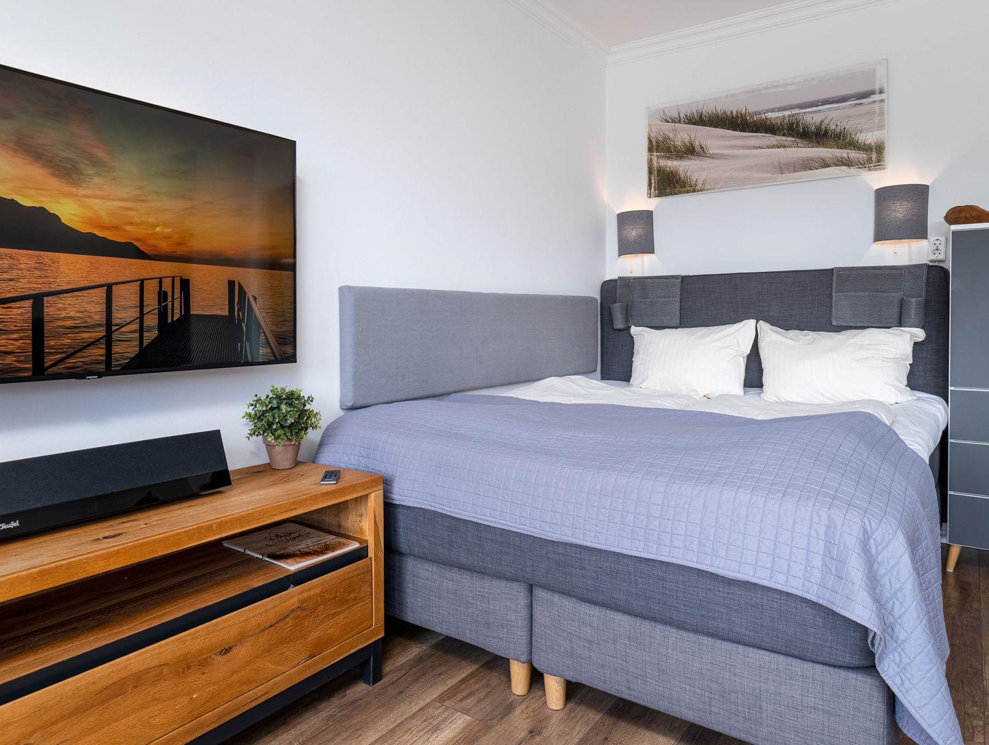 Moin Moin, und herzlich willkommen im Appartement "Abendsonne". Diese charmante 1- Zimmer-Ferienwohnung liegt quasi mitten im Herzen von Sylt, in Wenningstedt, und das auch noch ganz zentral im Ort. Von hier aus ist es nur ein Katzensprung bis zu "Feinkost Meyer" oder zum Fahrradverleih, und sogar ein gut sortierter Shop für Hund und Herrchen/Frauchen im Erdgeschoss dieses familiären Appartementhauses, eine Apotheke und der Dorf-Arzt schräg gegenüber sind Ihre "Nachbarn". Zum Weststrand und zum Kliff brauchen Sie zu Fuß keine zehn Minuten, zum idyllischen Dorfteich und der Norddörfer Kirche keine fünf. Die Wohnung ist neu und hochwertig eingerichtet, sie hat einen Süd-Balkon mit Strandkorb und ein gemütliches Boxspringbett. Zur modernen Ausstattung gehören außerdem Highspeed-Wlan, ein großer Smart-TV (mit TV-Apps wie netflix und Amazon prime) und eine bluetooth-fähige Stereo-Anlage.