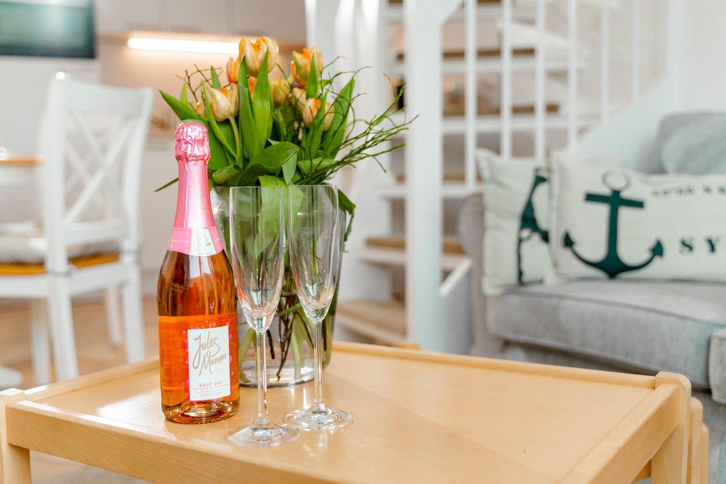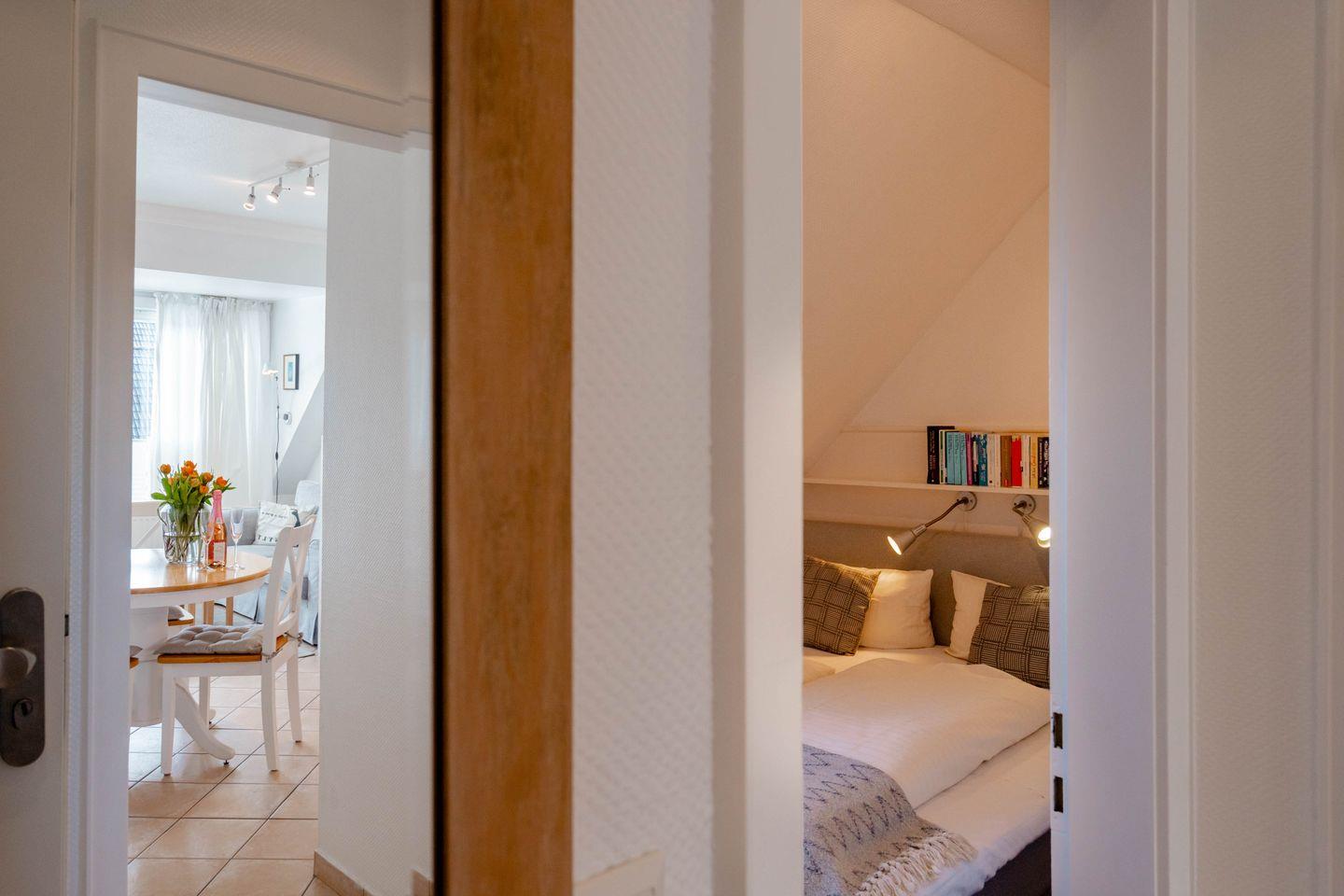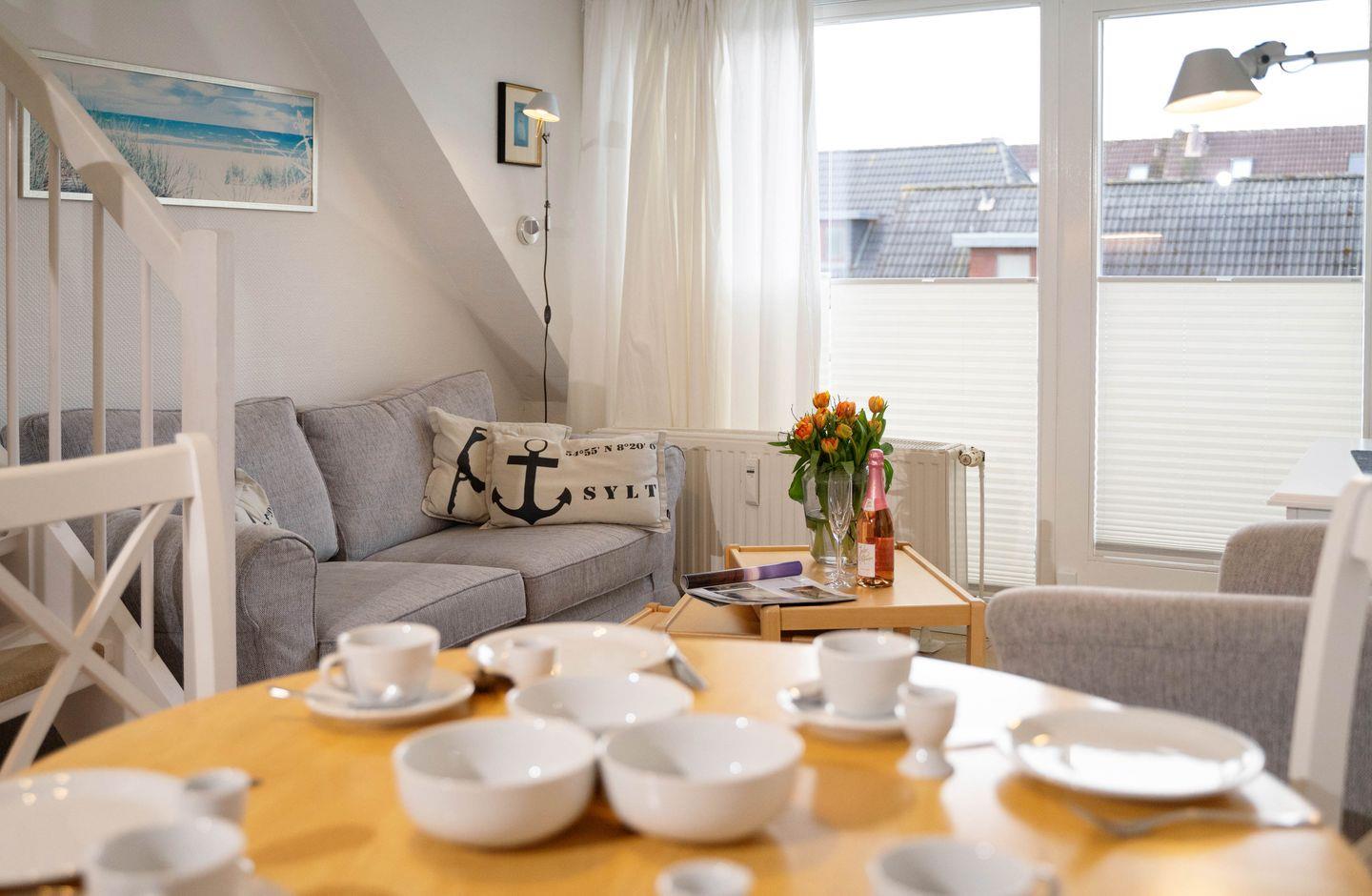 Moin Moin und Willkommen in der 3-Zimmer-Ferienwohnung "Dorothea". Sie liegt im ersten Stock einer kleinen Wenningstedter Wohnanlage über zwei Ebenen und ist circa 65 Quadratmeter groß. Von hier aus sind es tatsächlich nur gute 250 Meter bis zum Strand, aber "Dorothea" hat auch noch einen Balkon mit Südausrichtung was wunderbare Momente voller Mittagssonne bescheren kann.