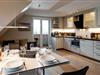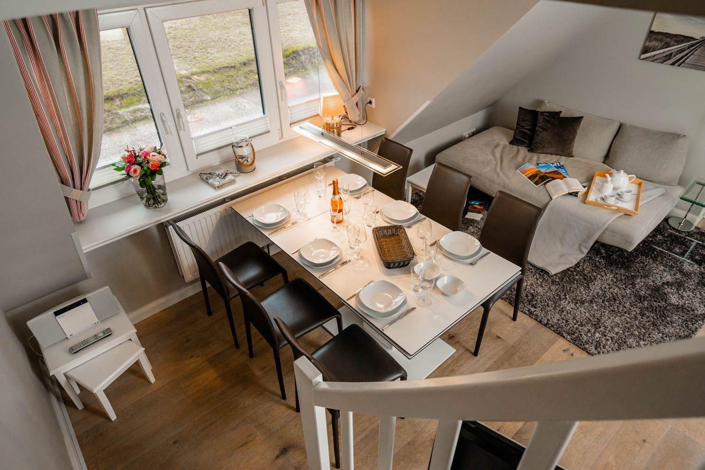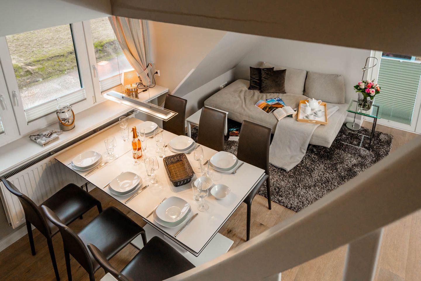 Moin, moin, willkommen im großzügigen Ferien-Appartement "Buhne 73", das Platz und allen Komfort für bis zu 6 Personen bietet und am allersüdlichsten Ende von Wenningstedt zu Hause ist. Das heißt natürlich genaugenommen, dass diese 4-Zimmer-Ferienwohnung ganz in der Nähe des kleinen beschaulichen Nordwäldchens liegt, das Wenningstedt und Westerland trennt, die Inselmetropole und der Strand also auch nicht weit entfernt sind. Die Wohnung liegt im Obergeschoss und Dachgeschoss eines vor Kurzem erbauten 5-Parteien-Hauses, ist nach Westen ausgerichtet und hat sogar einen eigenen Balkon mit attraktiver Brüstung aus Glas. Überhaupt liegt dieses Haus nicht nur sehr schön etwas abseits mit Blick auf Pferdewiese und Wäldchen, sondern ist auch noch besonders eingerichtet: sehr klar, hell, luftig und ohne überflüssigen Firlefanz, kurz gesagt – inselfrisch und wirklich schön. Drei Doppelbetten, eine vollausgestattete Küche, die kommunikativ in den Wohnbereich integriert ist, ein Bad und ein Extra-WC mit Waschbecken sowie eine Waschmaschine inklusive Trockner und ein eigener Parkplatz machen "Buhne 73" zu einem perfekten Partner für Ihre Ferien. Woher der Name kommt? Buhnen, das waren die alten und wie sich heute zeigt unnützen Wellenbrecher aus Beton oder Holz, die jetzt an der Westküste entfernt werden und die 73 verdankt die Wohnung schlicht ihrer Hausnummer.
