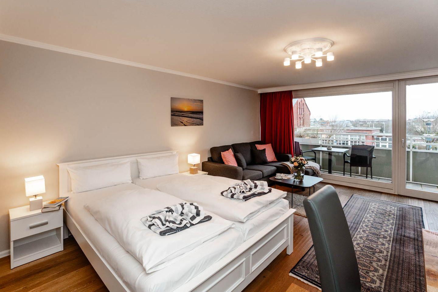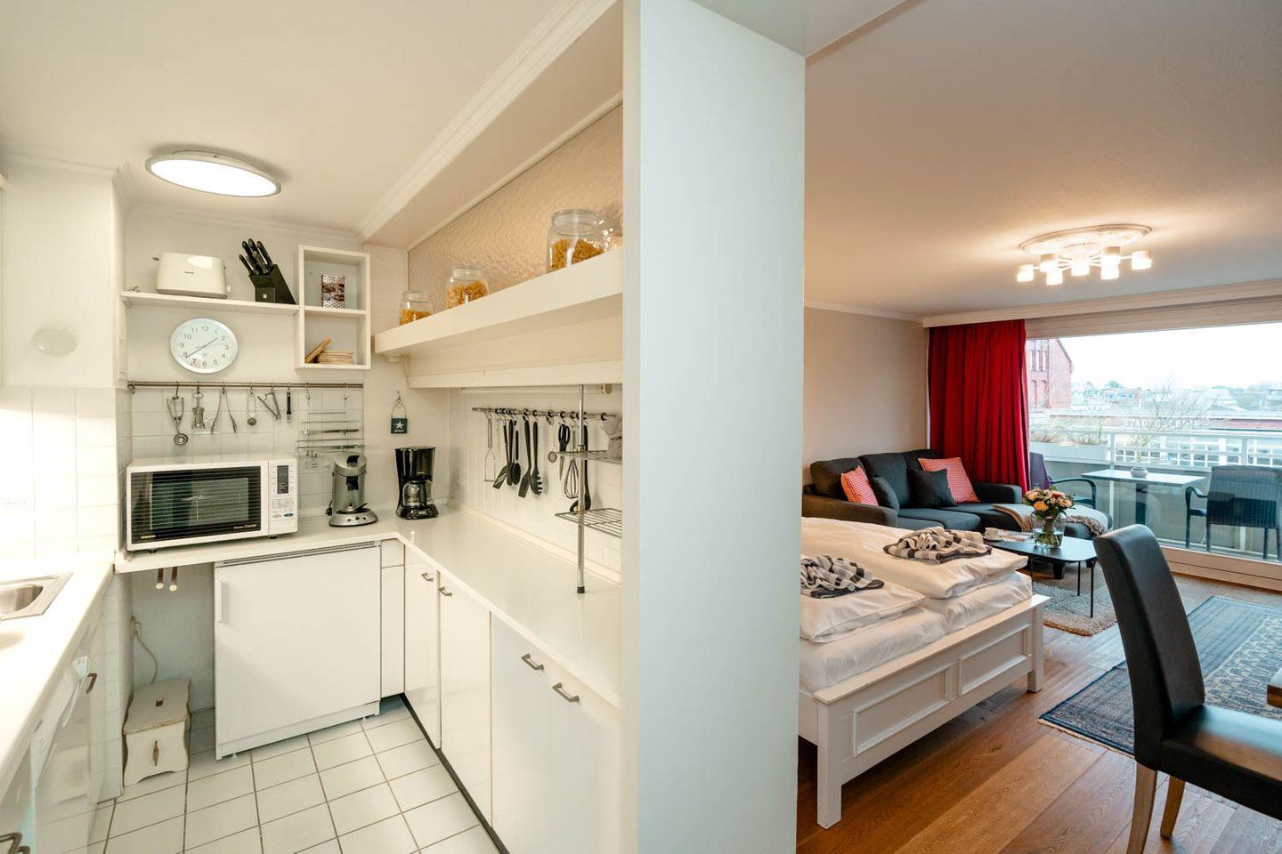 Mit sehr viel Liebe zum Detail wurde die 1-Zimmer-Ferienwohnung "di Wiis" möbliert und eingerichtet. Sie liegt zentral in Westerland im ersten Stock eines größeren Appartementhauses. Ein Bäcker um die Ecke, ein Supermarkt nah dran, die Fußgängerzonen genauso, Strand und unzählige Restaurants, die Bushaltestelle, das idyllische Alt Westerland und das Kaufhaus HB Jensen: Von hier aus sind es kurze Wege zu wirklich allem, was Westerland ausmacht. 40 Quadratmeter bieten genug Raum zur Entfaltung. Und das Auto kann auch einfach Zuhause bleiben.