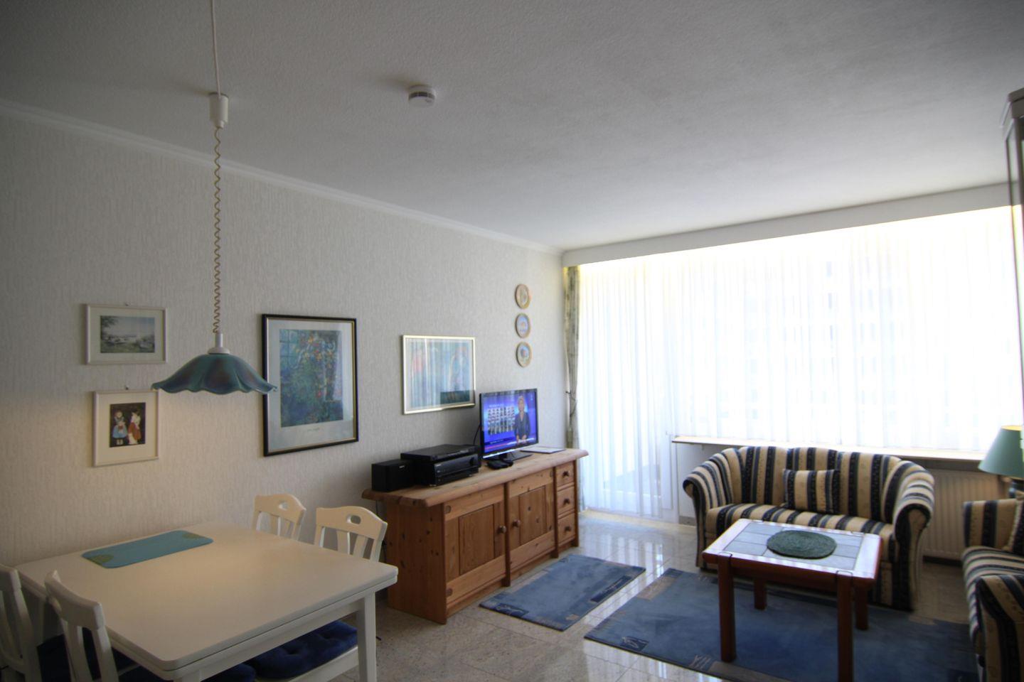 Moin Moin, willkommen in der 1-Zimmer-Ferienwohnung "Kapitänin Maria" in der Strandstraße in Westerland. Die "Kapitänin" verfügt über kompakte 30 Quadratmeter Wohnfläche, liegt im zweiten Stock eines Appartementhauses in der Fußgängerzone der Strandstraße. Sie mag friesisch-frisches Weiß mit blauen Akzenten, wie es so typisch für Sylt ist, und genießt die kurzen Wege zum Shopping wie ans Meer. Zu der Wohnung gehört ein Westbalkon, das Haus hat einen komfortablen Fahrstuhl.