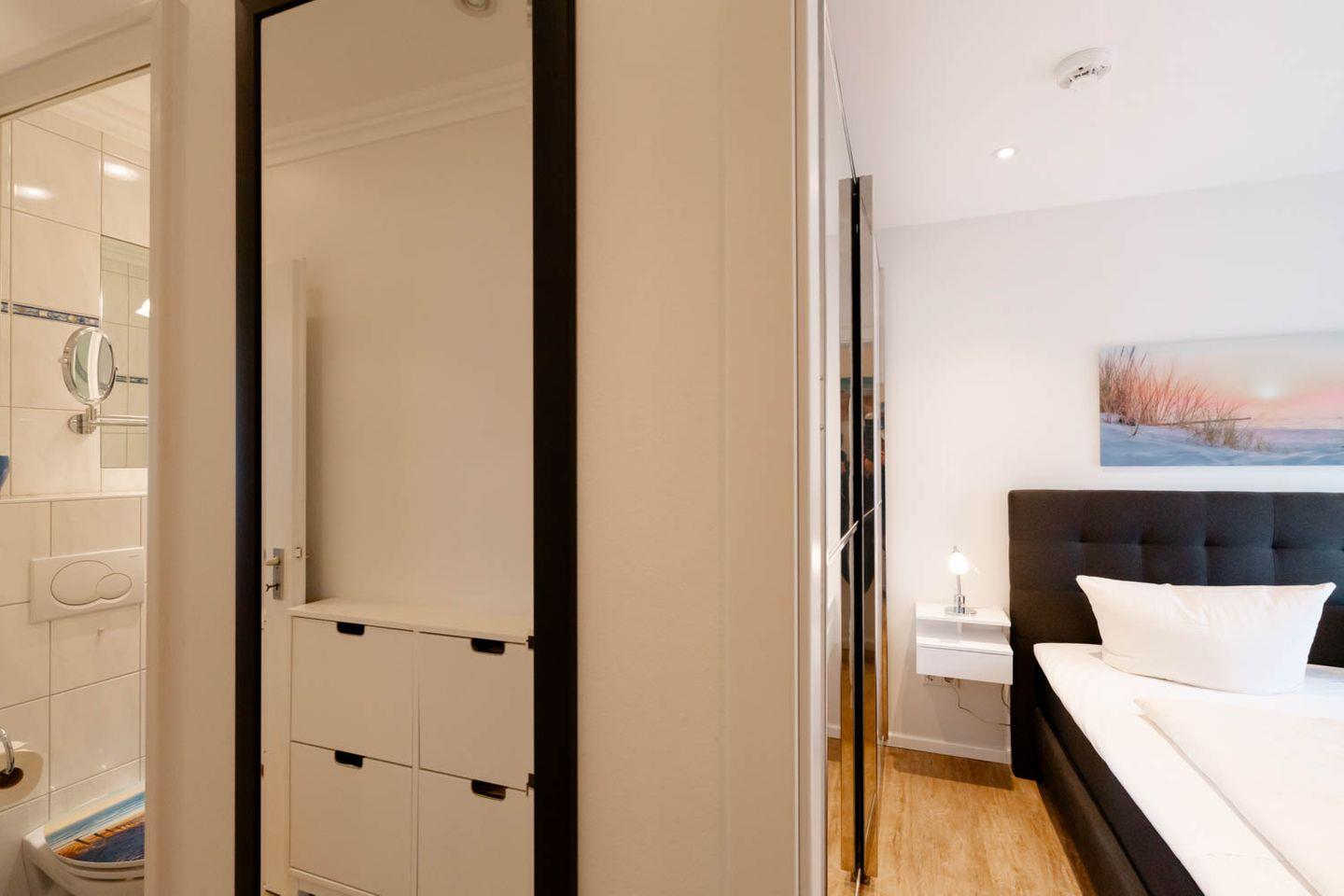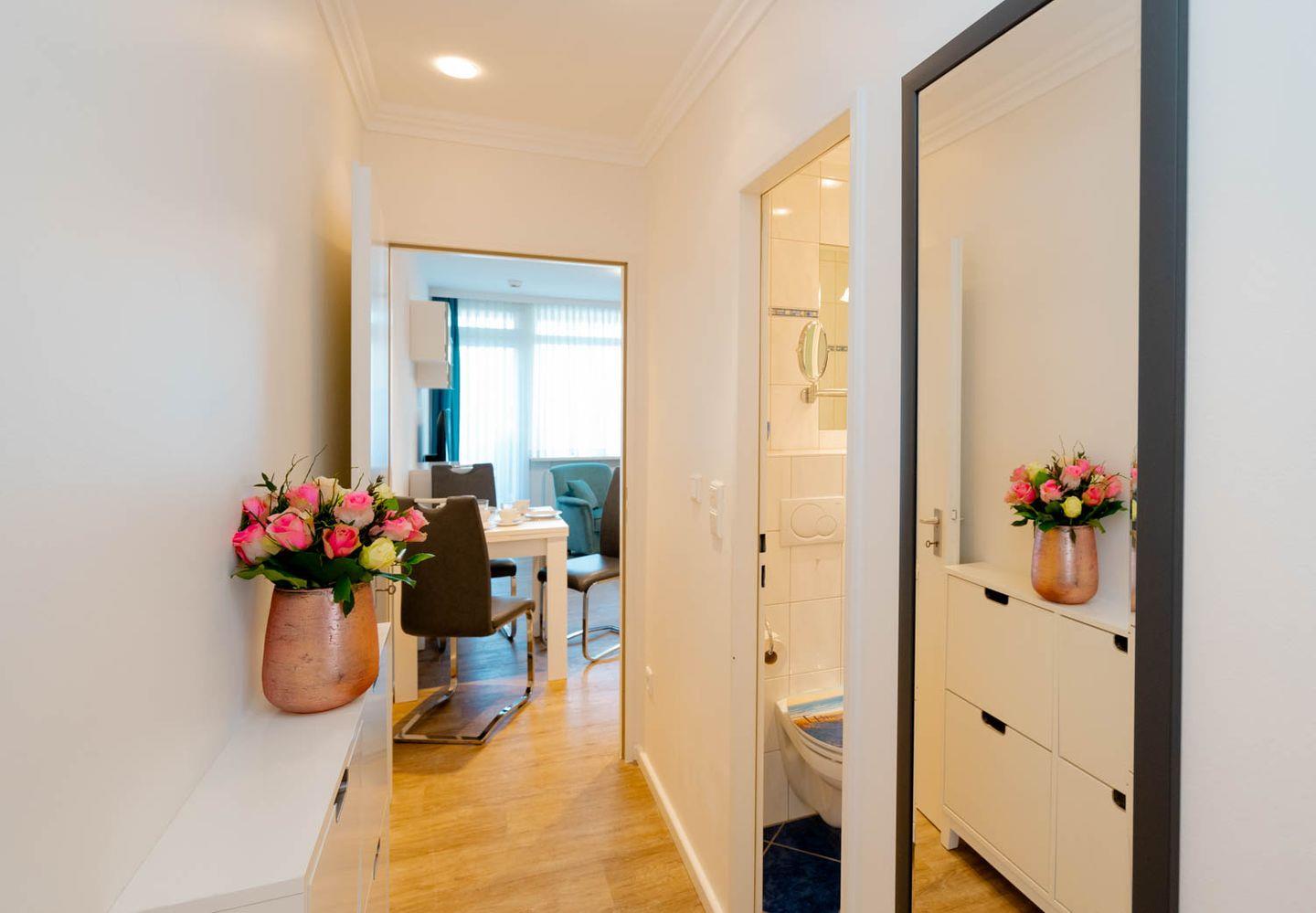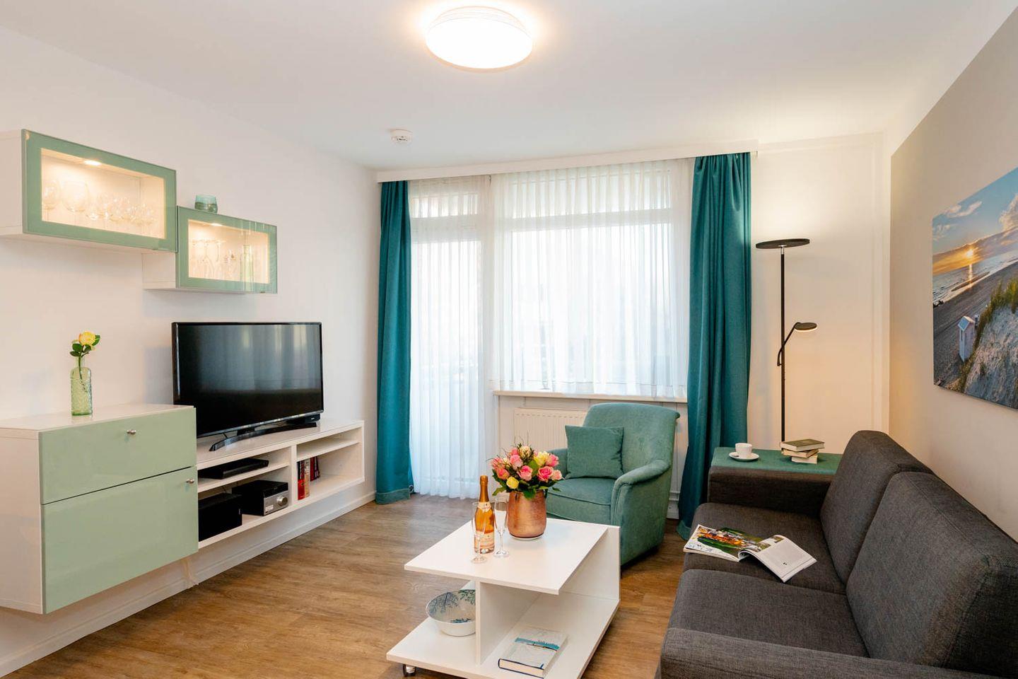 Moin, herzlich Willkommen im Süden der Inselhauptstadt Westerland. Das Appartement "di Gooki" liegt in einem ruhigen und gepflegten Mehrfamilienhaus, mit dem Südwäldchen und dem Weststrand in unmittelbarer Nähe. Ebenso quasi vor der Haustür: das "Sylt-Aquarium", ein Minigolfplatz, der Strandübergang mit dem schönsten Namen der Insel, der "Himmelsleiter" und ein cooler Kinderspielplatz. "di Gooki" wurde jetzt sozusagen runderneuert, also im März 2019 umfassend saniert und topmodisch mit frischen Türkis-Akzenten in klarem, nordischen Stil eingerichtet. Die 2-Zimmer-Ferienwohnung mit Westbalkon ist circa 35 Quadratmeter groß, hat ein Schlafzimmer, eine variable Schlafcouch im Wohnbereich und passt perfekt für bis zu 3 Personen, sogar ein Außenparkplatz gehört dazu. Die Innenstadt mit allen Einkaufsmöglichkeiten und Restaurants ist von hier aus in gut 15 Minuten zu Fuß zu erreichen, der Strand keine 5 Minuten entfernt.
