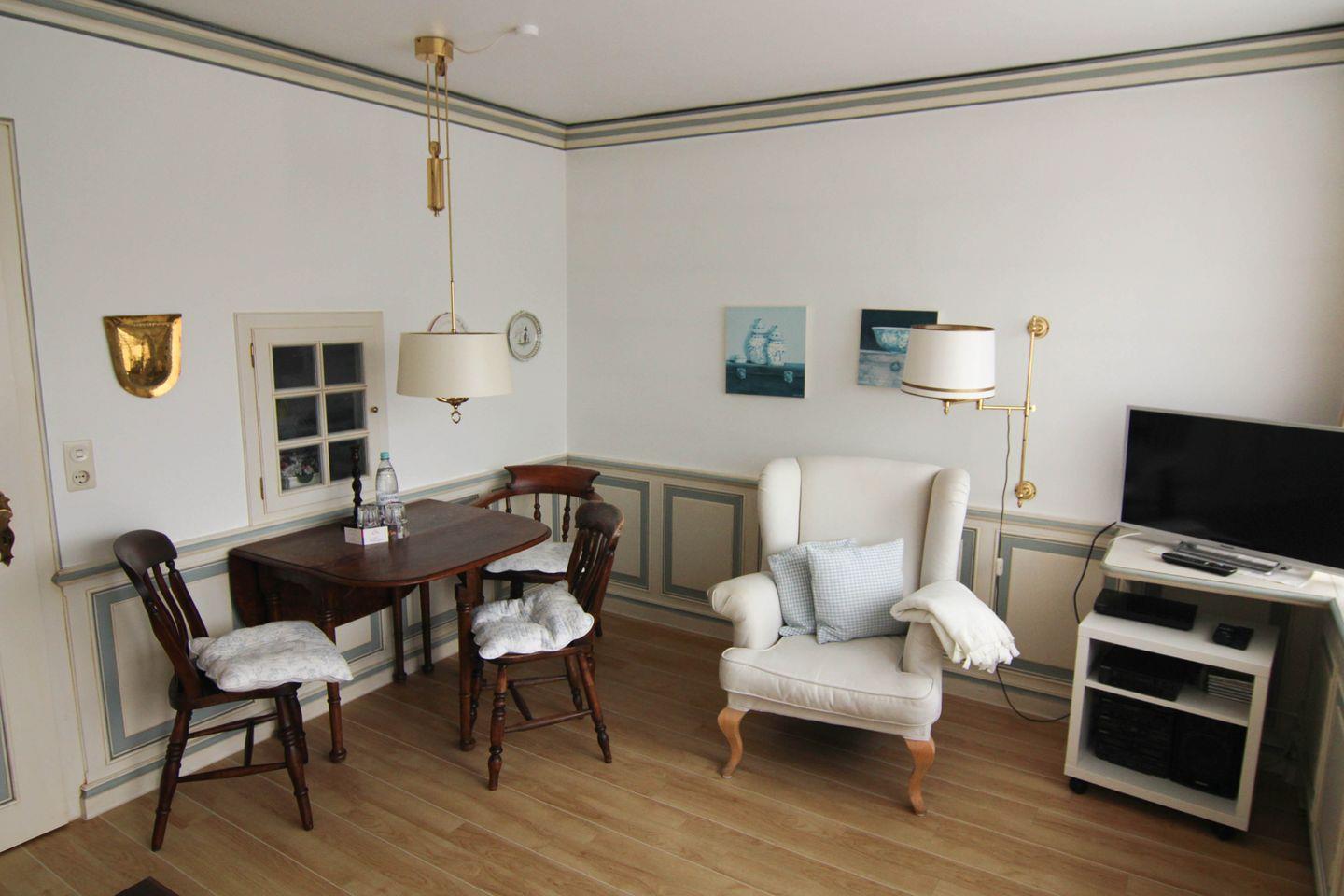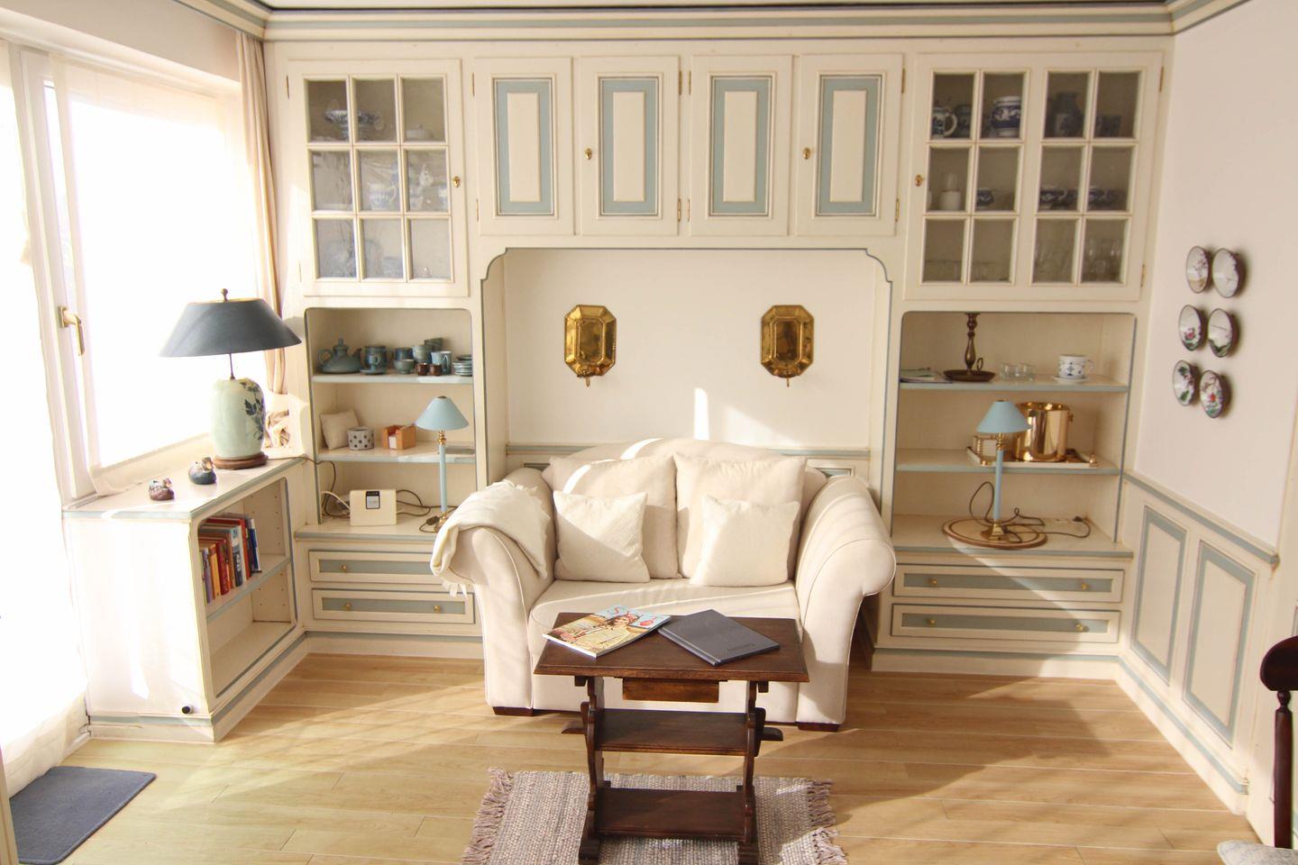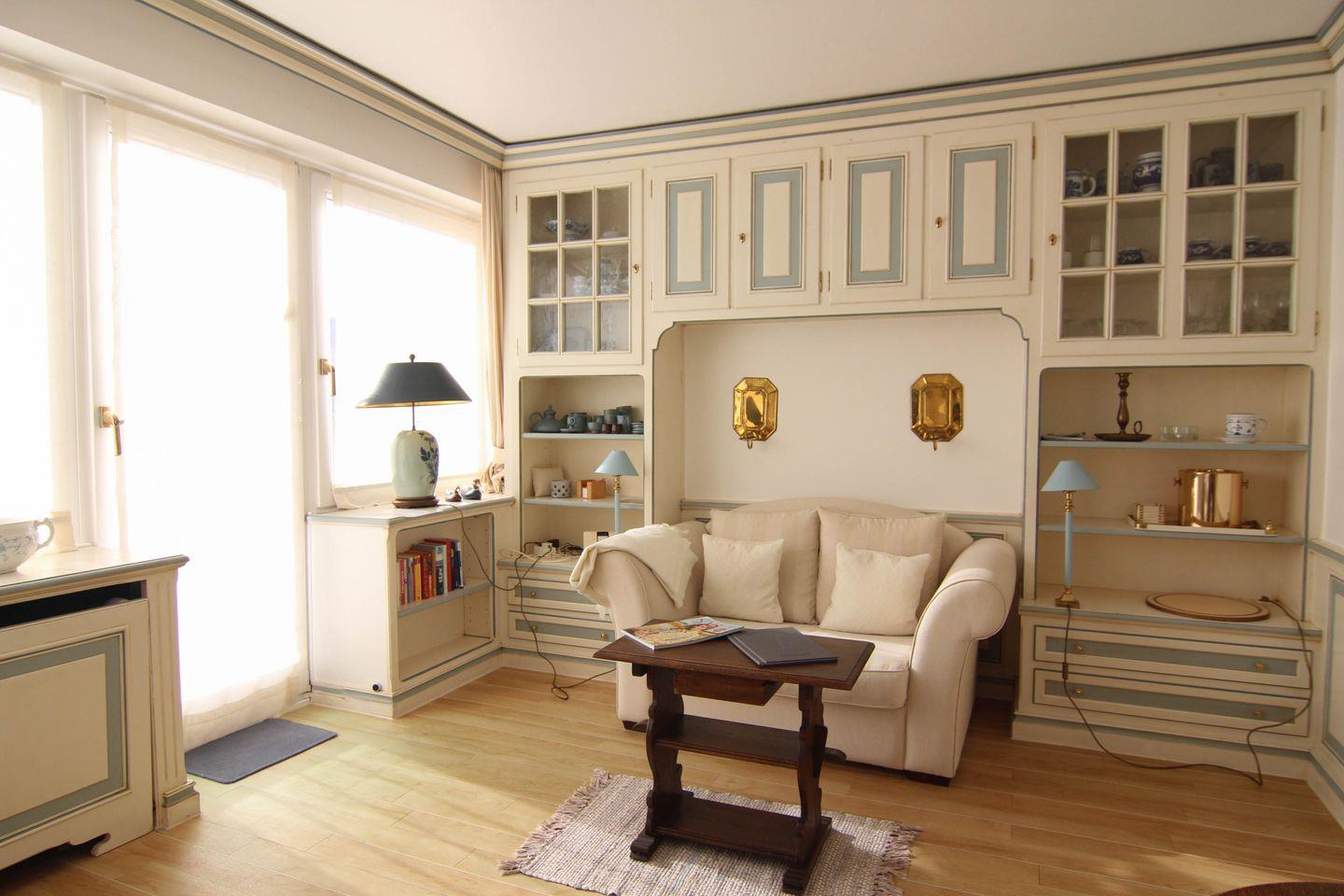 Moin und Willkommen in dieser charmanten 2- Zimmer-Ferienwohnung mit der Extraportion Sylt inklusive. Denn die " Kleine Düne", so heißt dieses Appartement, hat es in sich: Überall finden sich exklusive und gut durchdachte Einbauten und Kassettenpaneele, wie sie so typisch sind für die traditionelle Handwerkskunst der friesischen Tischler, liebevoll von Hand bemalt in nordischem Blau-Weiß. Eine separate Küche mit praktischer Durchreiche, ein uriger Esstisch für vergnügte Runden, eine gemütliche Couch, geschickt gesetzte maritime Messingakzente und ein Schlafzimmer mit attraktivem Doppelbett in Alkovenart: Dieses 42 Quadratmeter große und ebenerdige Ferienappartement ist mit viel Freude am Datail eingerichtet, eine möblierte Süd-Terrasse und ein eigener Parkplatz gehören auch noch dazu. Die Westerländer Innenstadt und den Strand erreichen Sie von hier aus in einer knappen Viertelstunde zu Fuß, eine nahe Bushaltestelle gibt es auch, gleich um die Ecke.