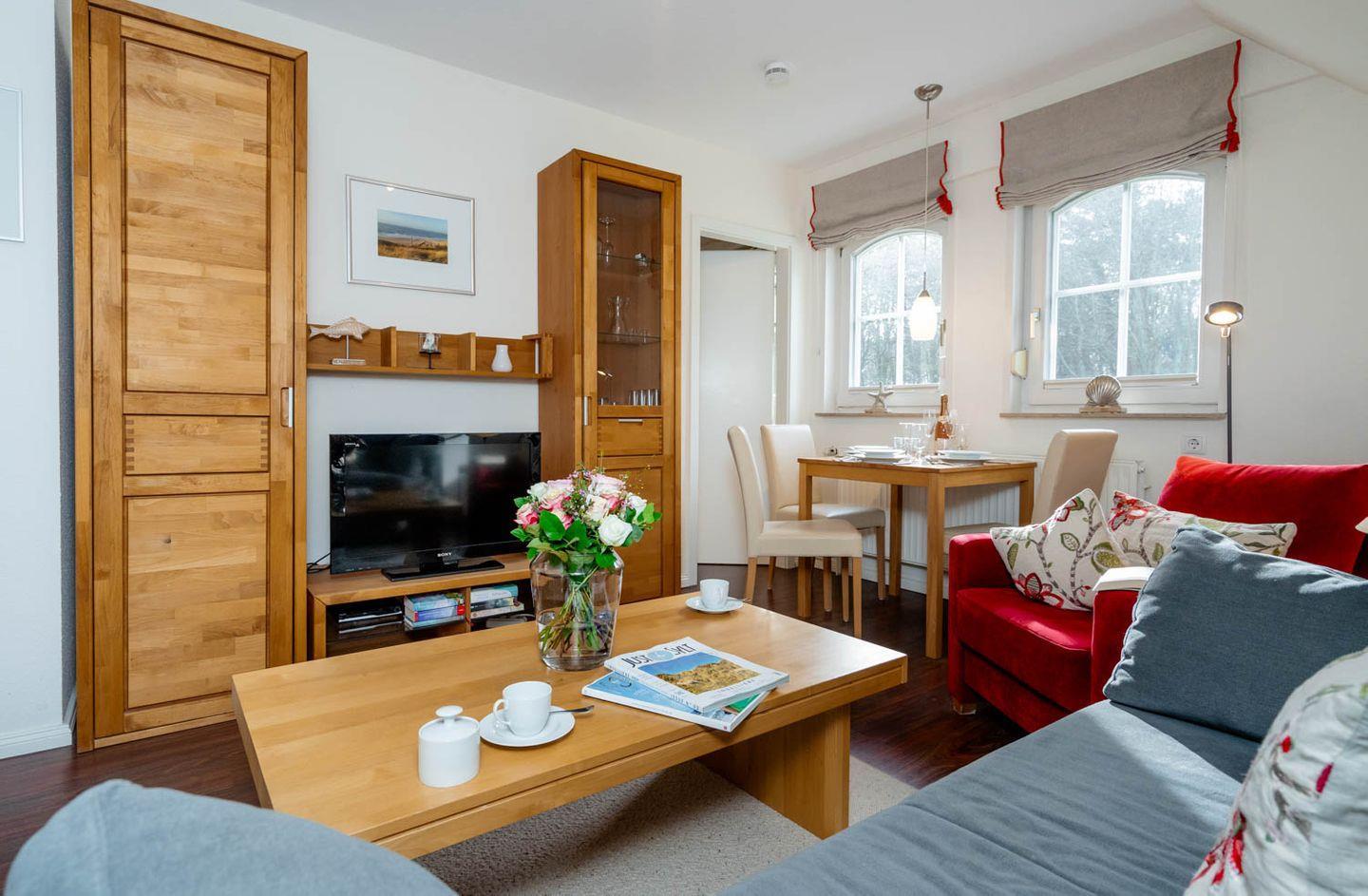 Moin Moin, Willkommen im Appartement "Südwind", in ganz besonderer Lage von Westerland. Hier ist das entzückende Wäldchen "Friedrichshain" mit seinem kleinen Ententeich in unmittelbarer Nähe zu finden, auch zum Bäcker, zum Kinderspielplatz und zum Strand ist es zu Fuß nicht weit. Die frisch renovierte attraktive Wohnung befindet sich im ersten Stock eines Mehrparteienhauses und ist circa 35 Quadratmeter groß. Sie bietet Platz für bis zu drei Personen.