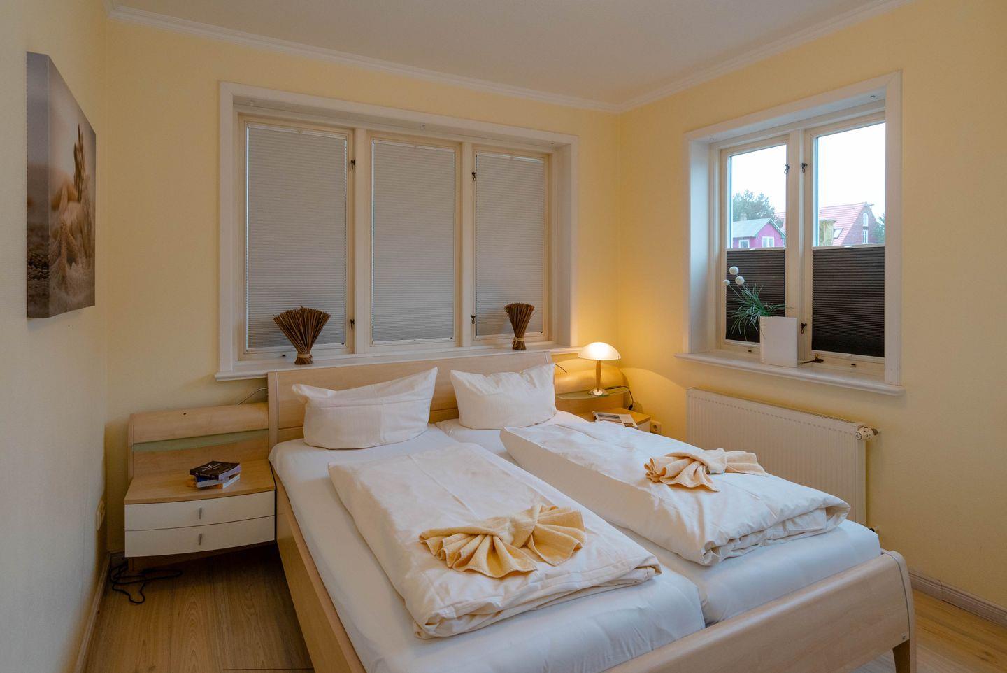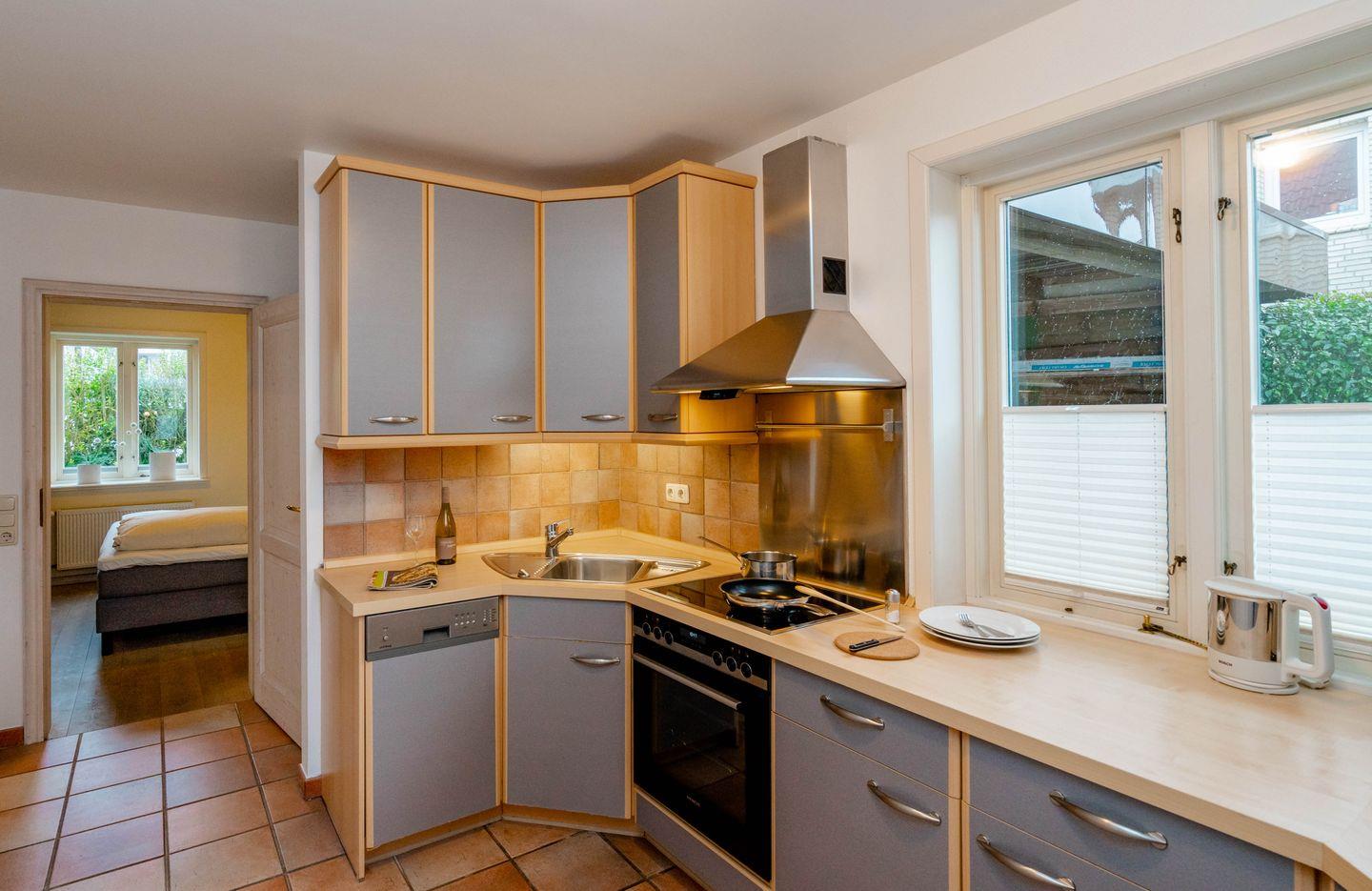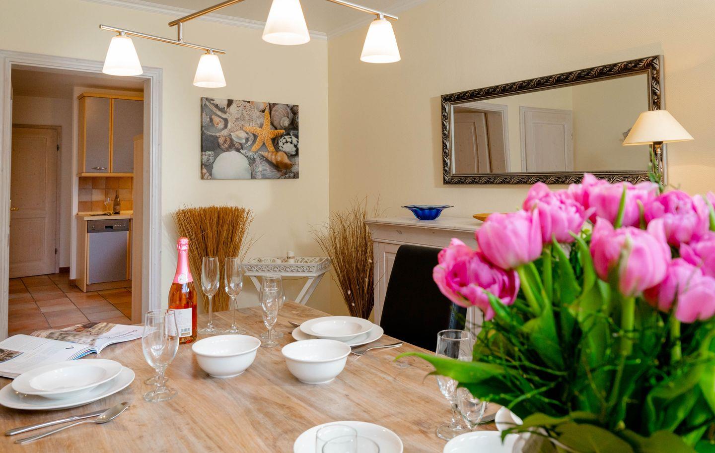Moin, moin und Willkommen an Bord vom "Käpt'n", dieser ebenerdigen 3-Zimmer-Ferienwohnung für bis zu 4 Personen in Westerland, die auf großzügigen 80 Quadratmetern durch viele liebenswerte Details besticht. Ein schöner und wertiger Echtholzfußboden, attraktiv Holztüren in weißer Kalkbeize-Optik und dazu passende Einzelstücke fügen sich hier zu einem ganz eigenen, sehr inseligen und entspannten Einrichtungsstil. Die Wohnung ist wunderbar hell, sie hat eine separate Küche mit allem Drum und Dran, ein Esszimmer und neben dem großzügigen Wohnzimmer zwei geschickt angeordnete Doppelschlafzimmer, eins auf dieser, eins auf der gegenüberliegenden Seite der Wohnung. Womit sich dieses Ferienappartement auch für zwei befreundete Paare empfiehlt. Ihre Lage ist übrigens nahezu perfekt: in einer ruhigen Seitenstraße im Norden von Westerland und doch zentrumsnah und mit dem Strandübergang "Friesische Straße/Nordhedig" nur wenige Gehminuten entfernt. Dieser Strandübergang bietet einen gewissen "Luxus"