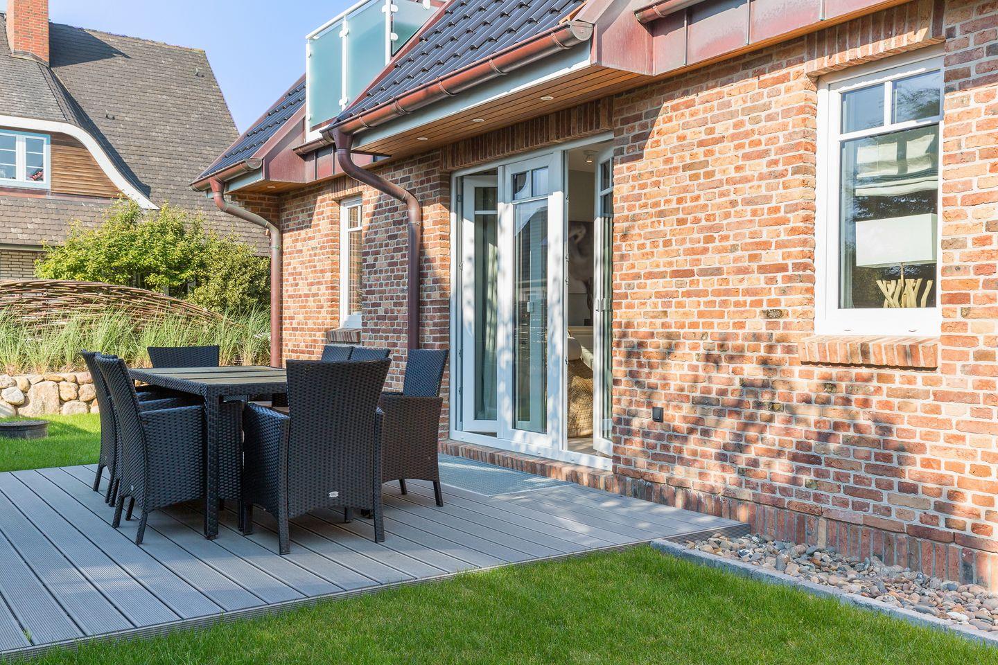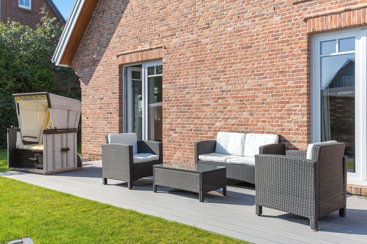 Sofern die Sylter Sonne scheint, heißt es nichts wie raus ! Hier für eignet sich Ihre große, umlaufende Süd-West-Terrasse perfekt. Wertiges Gartenmobiliar mit Strandkorb, das Ihnen ca. von April - Oktober zur Verfügung steht, verstehen sich von selbst.