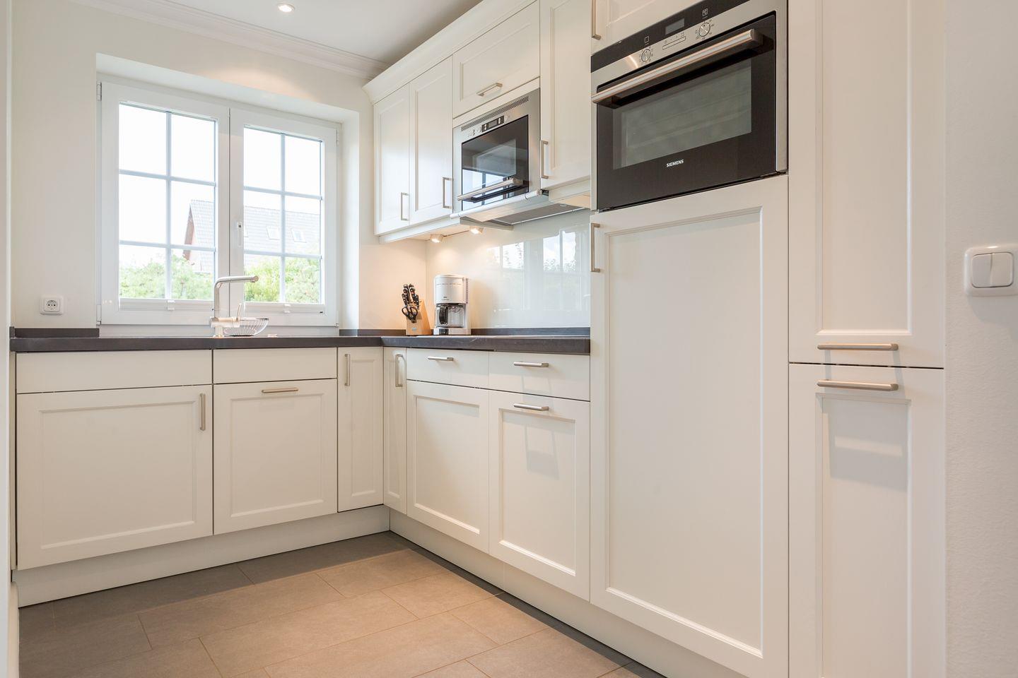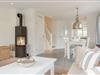 Beim Betreten des „Landhaus Hooge“ können Sie sich auf einen großzügigen, hochwertig eingerichteten Wohnbereich freuen. Vom Wohn- und Essbereich aus schauen Sie auf den Kamin, der für kuschelige Abende in der dunklen Jahreszeit sorgt. Die Küche ist offen gestaltet und mit Geschirrspülmaschine, Microwelle und Backofen ausgestattet. Vom Wohnzimmer aus betreten Sie Ihre möblierte, private Terrasse mit angeschlossenem Garten. Im Erdgeschoss finden Sie außerdem ein Gästebad mit WC und Dusche.