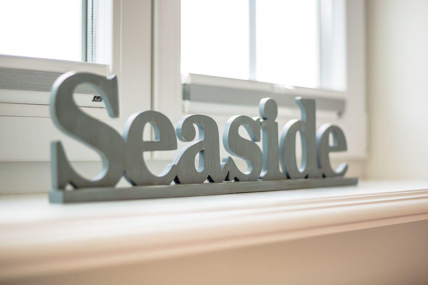 EG: Wohnbereich mit Couch und Essbereich, Samsung Flat-TV mit DVD und iPod-Dock, WLAN und Kaminofen. Küche mit Geschirrspülmaschine, Microwelle, Backofen und Filterkaffeemaschine. Gäste-WC mit Dusche. Süd-Garten mit Terrasse, Gartenmöbel und Strandkorb (ca. von April-Oktober).