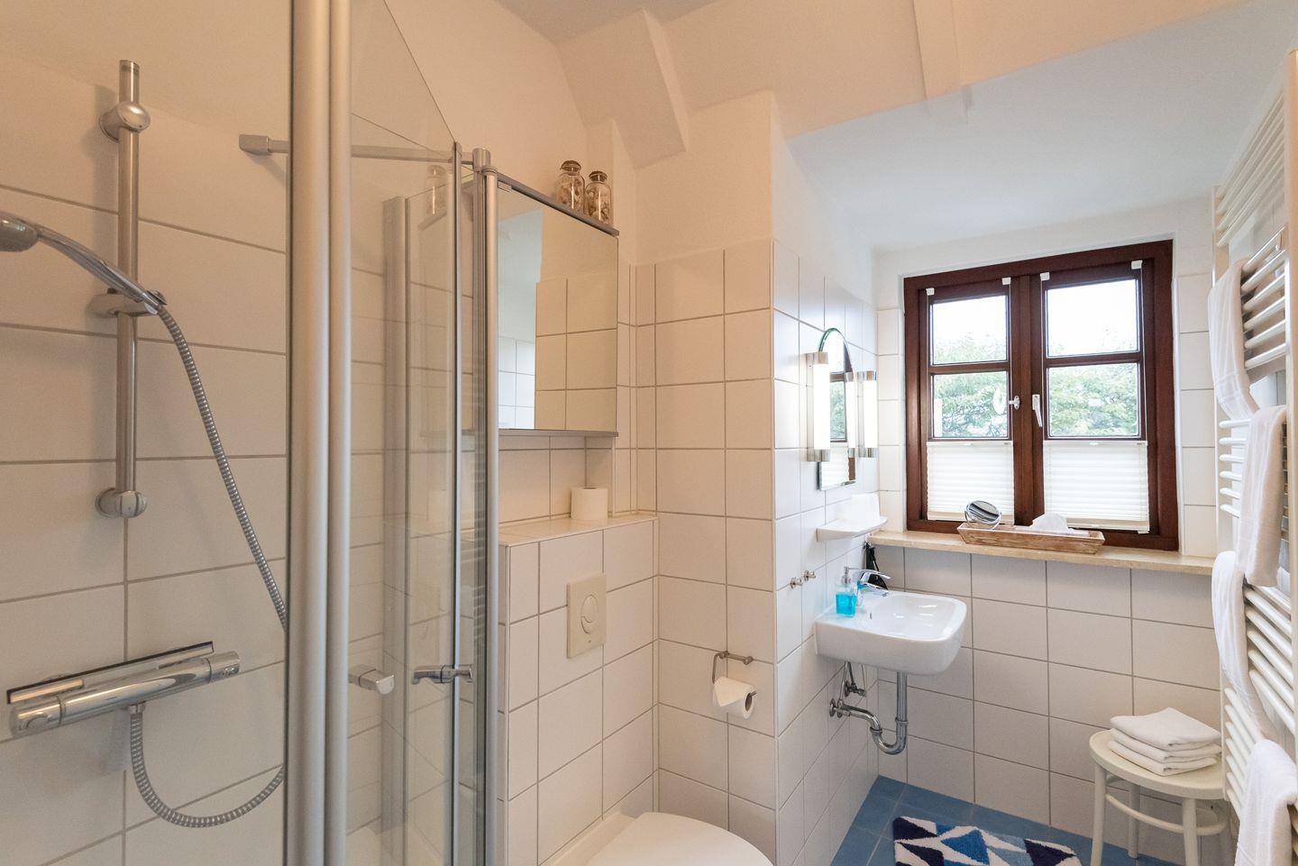 Badezimmer 1: Helles Duschbad mit Fenster.