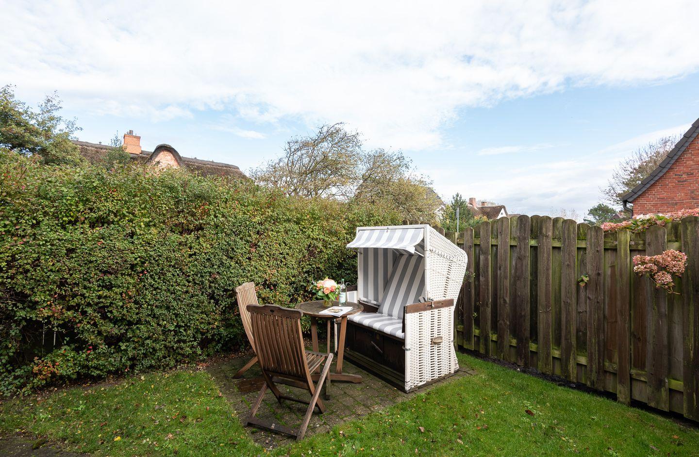 Garten: Im Garten steht Ihnen eine Sonnenkuhle Richtung Norden mit Gartenmöbeln und Strandkorb zur Verfügung.