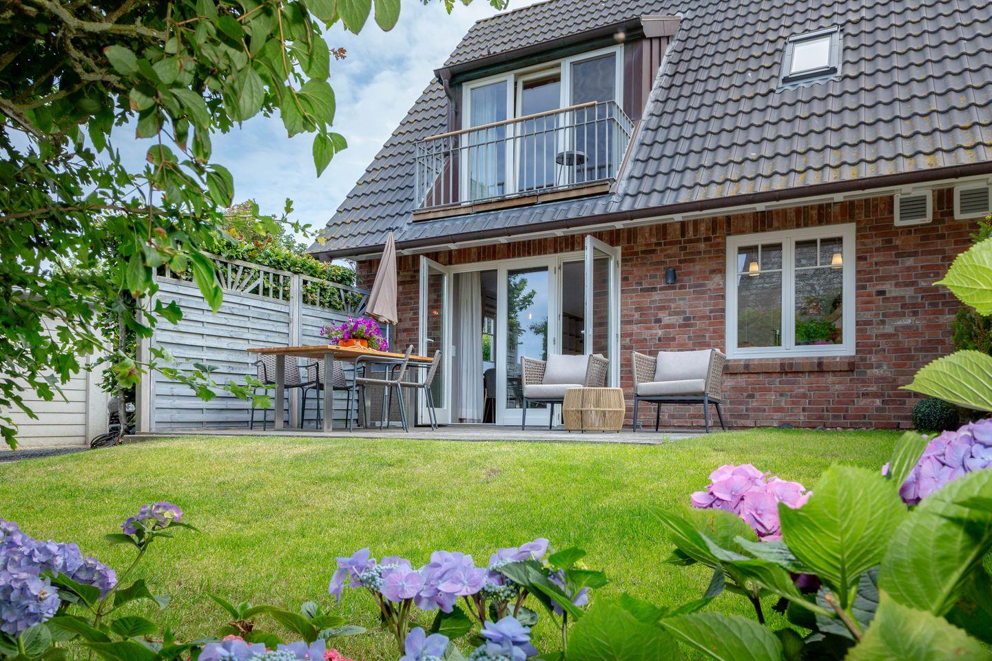 Exklusives Ferienhaus „Hüs im Glück“ (146 m²) zentral in Westerland, ideal für bis zu 6 Personen. 3 komfortable Schlafzimmer, 2 moderne Duschbäder, heller Wohnbereich mit gemütlichem Kamin und Sauna für entspannte Stunden. Terrasse, Balkon und eingewachsener Garten mit Gartenmöbeln. WLAN, Waschmaschine, Trockner, Kaffeemaschine vorhanden. Parkplatz am Haus. Hunde sind herzlich willkommen. Nichtraucher-Domizil.