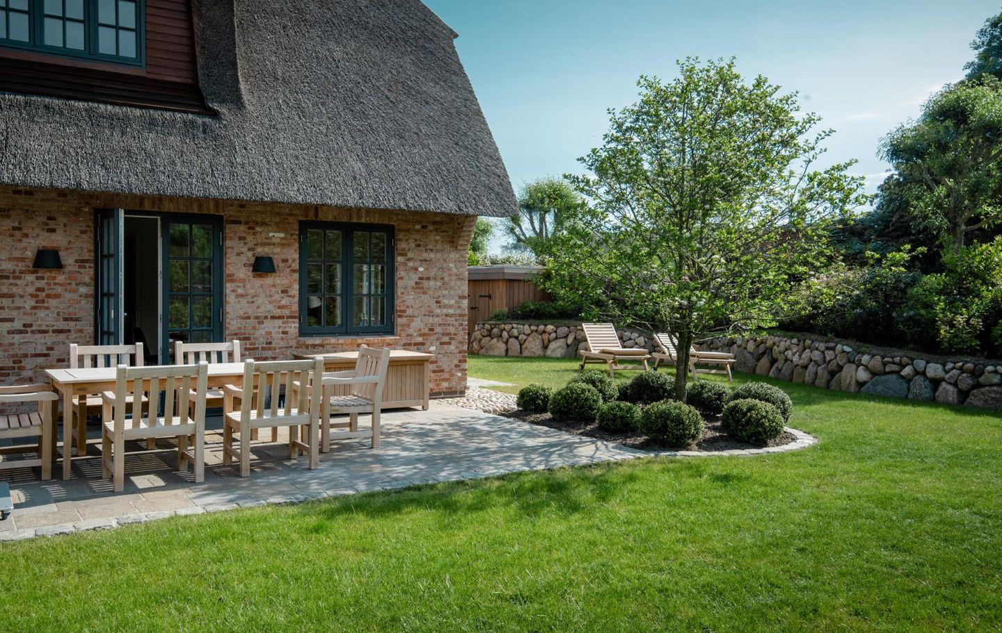 Reet-Doppelhaushälfte im klaren, modernen Stil und tollem Garten in Archsum