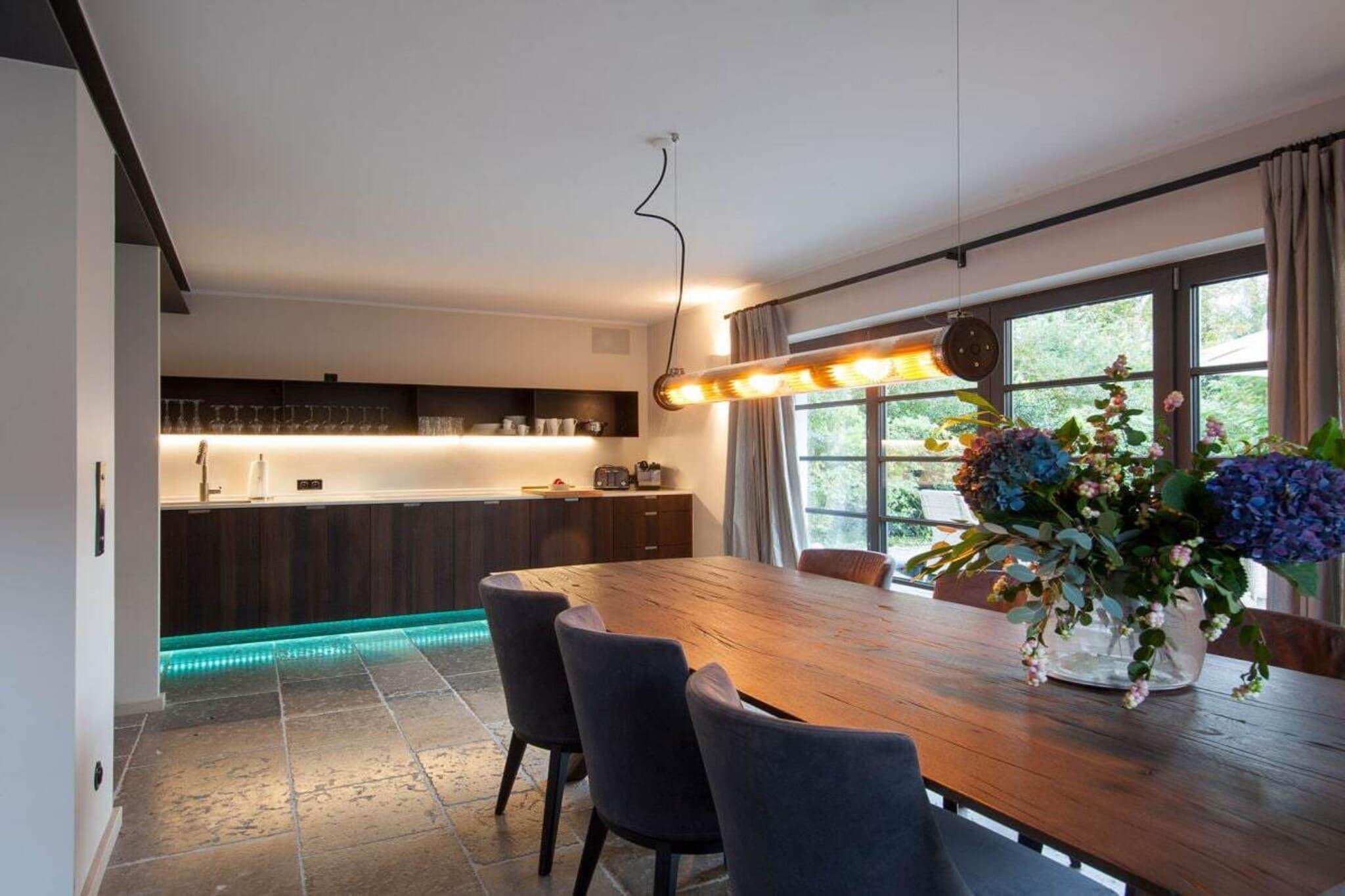 Færdiggjort i slutningen af 2016 er dette ca. 250 m² store feriehus på en 1200 m² grund utroligt rummeligt. Du kan nyde solen hele dagen lang på terrasserne og i huset. I de koldere årstider kan du slappe af ved pejsen og i saunaen. Huset strækker sig over to niveauer: Stueetagen rummer opholds-, spise- og køkkenområdet (ca. 130 m²), mens den øverste etage (ca. 120 m²) byder på soveplads til op til seks personer, med to soveværelser med dobbeltsenge, et soveværelse med 2 enkeltsenge og et enkelt soveværelse, samt i alt tre badeværelser (to med bruser/badekar og et med bruser/badekar). Huset byder på masser af plads, lys og privatliv til seks personer.