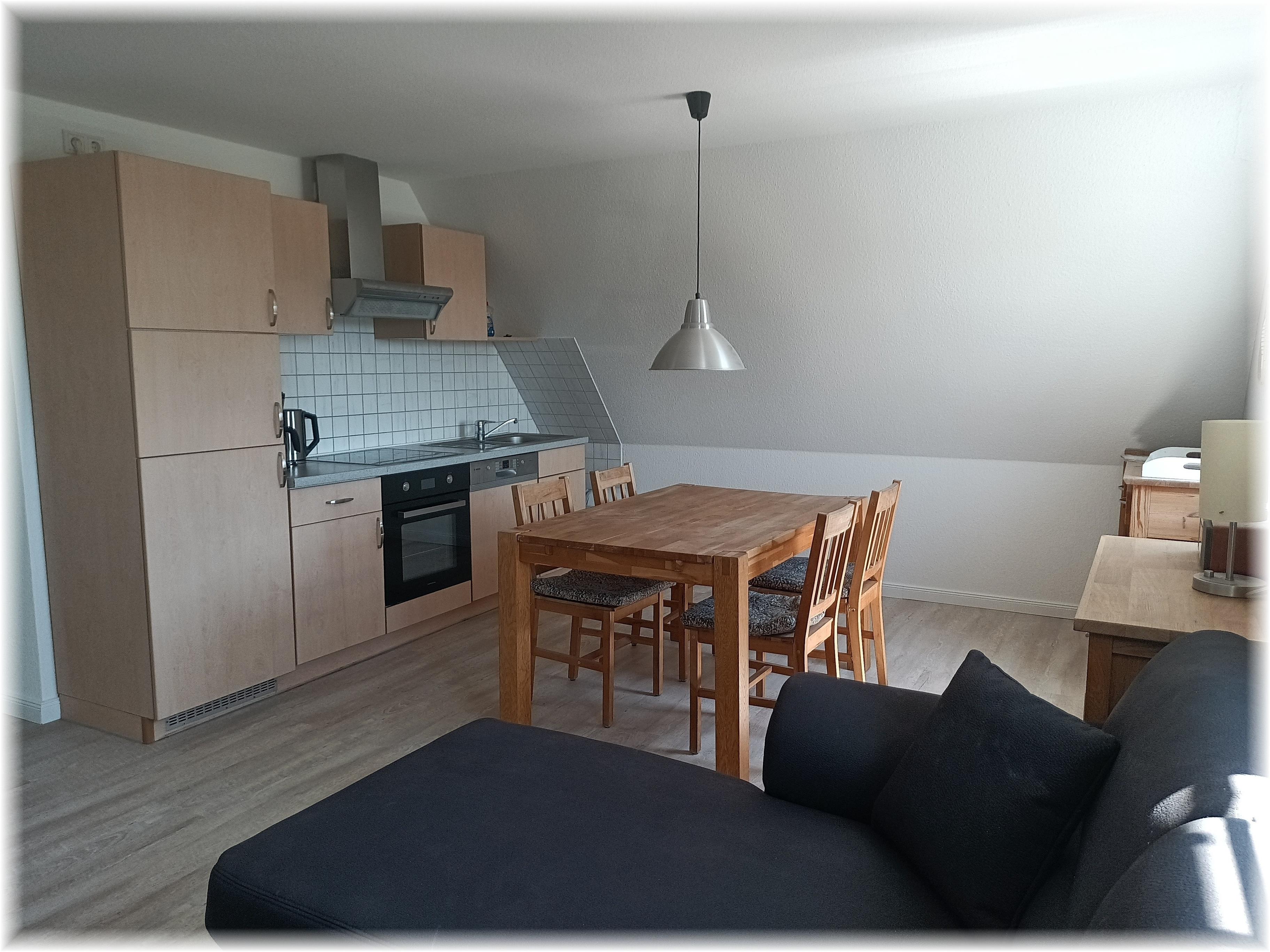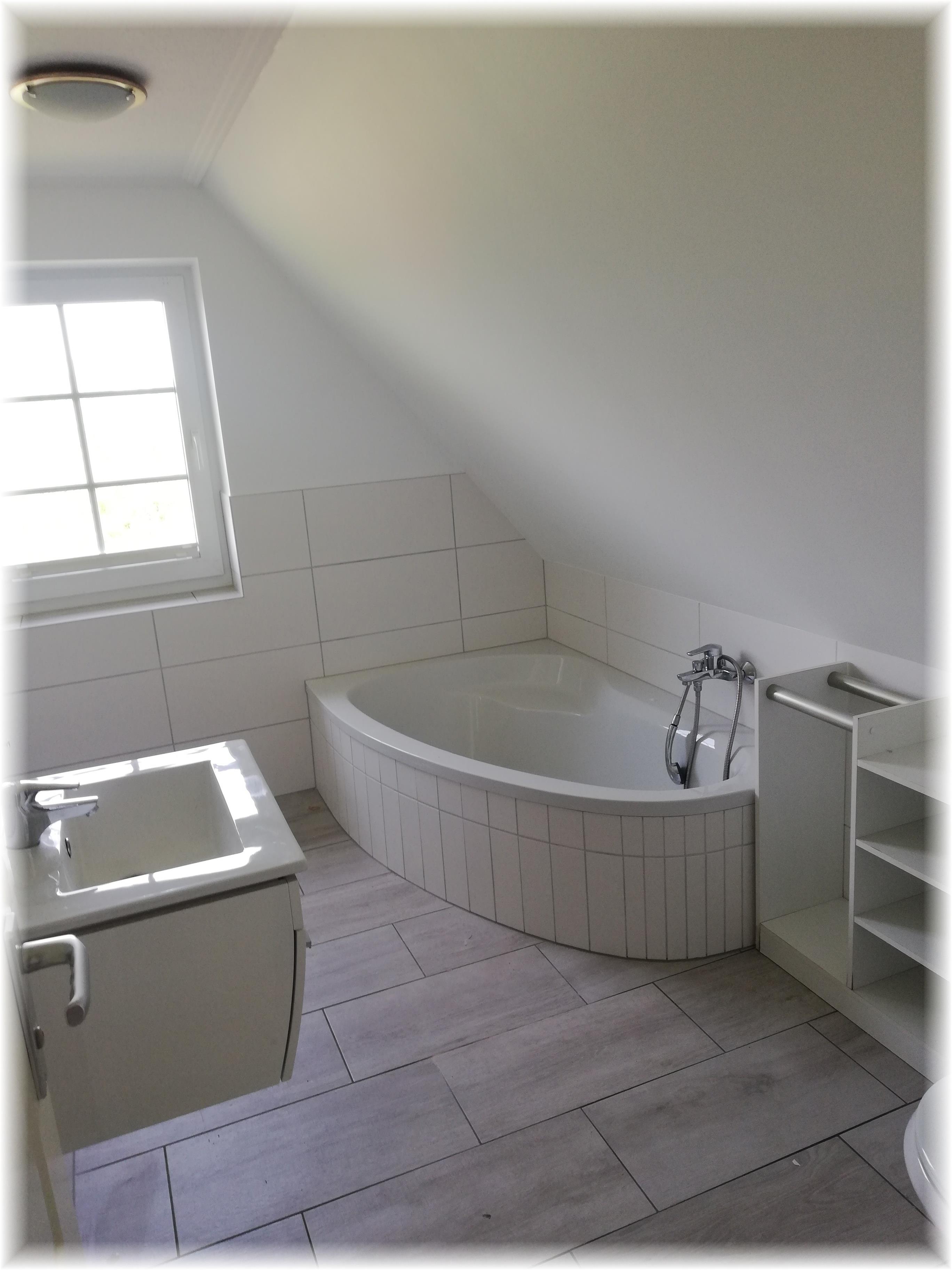 Das großzügige Wannenbad in der Fewo im Obergeschoss sowie die komplett eingerichteten Wohnküche lassen keine Wünsche offen und laden ein, die Seele baumeln zu lassen.