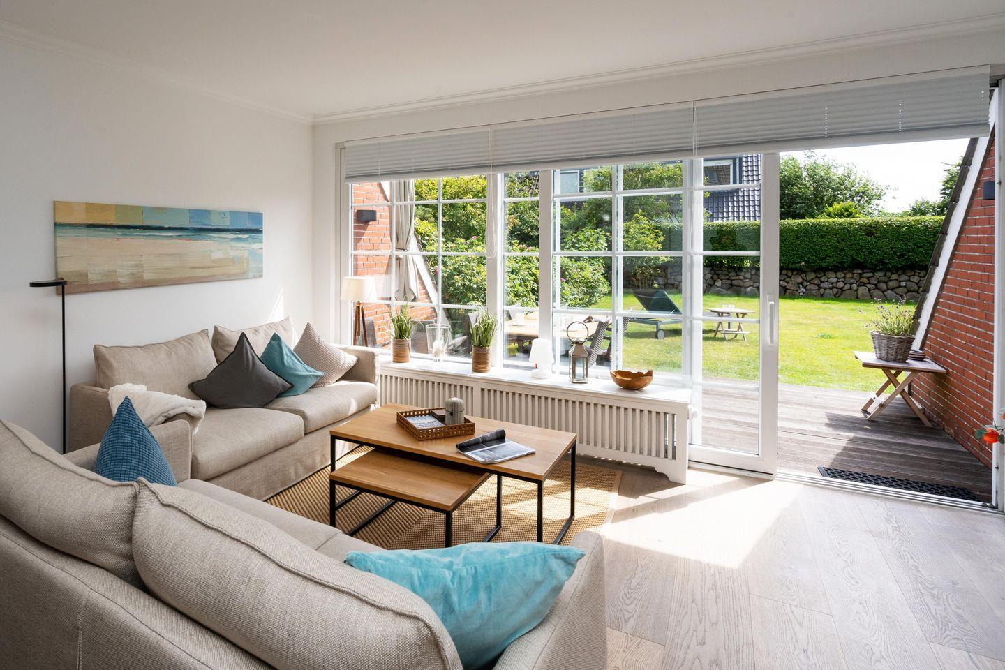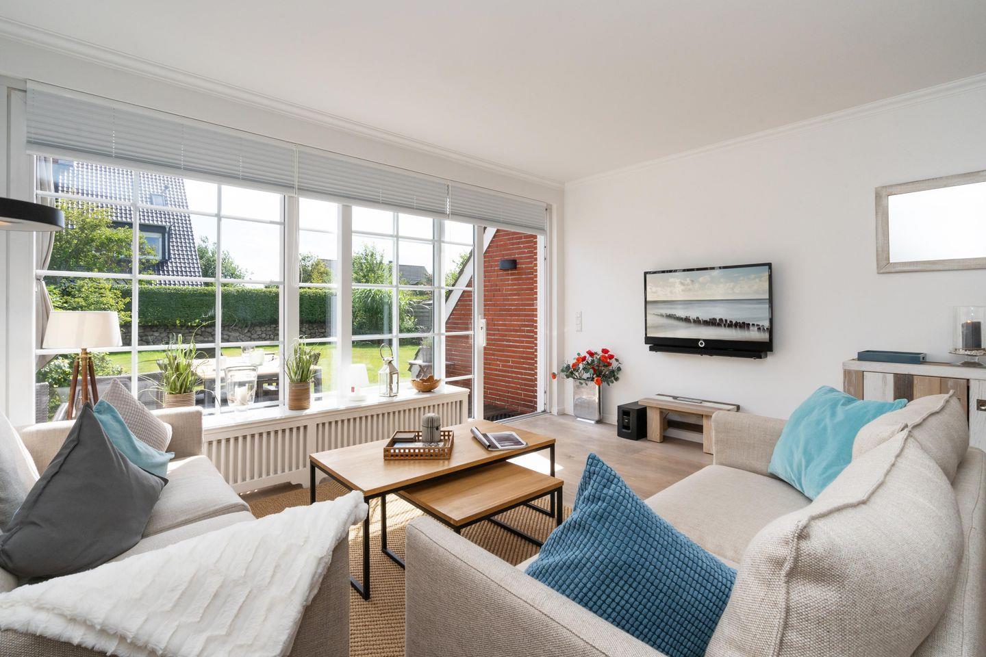 Familienfreundliches ca. 120 m2 großes 5-Sterne Ferienhaus in unmittelbarer Nähe zu den Tinnumer Wiesen für bis zu 6 Personen mit schönem Garten. Inklusive hochwertiger Ausstattung, WLAN, zugehörigen PKW-Stellplätzen und Strandkorb (in der Saison).