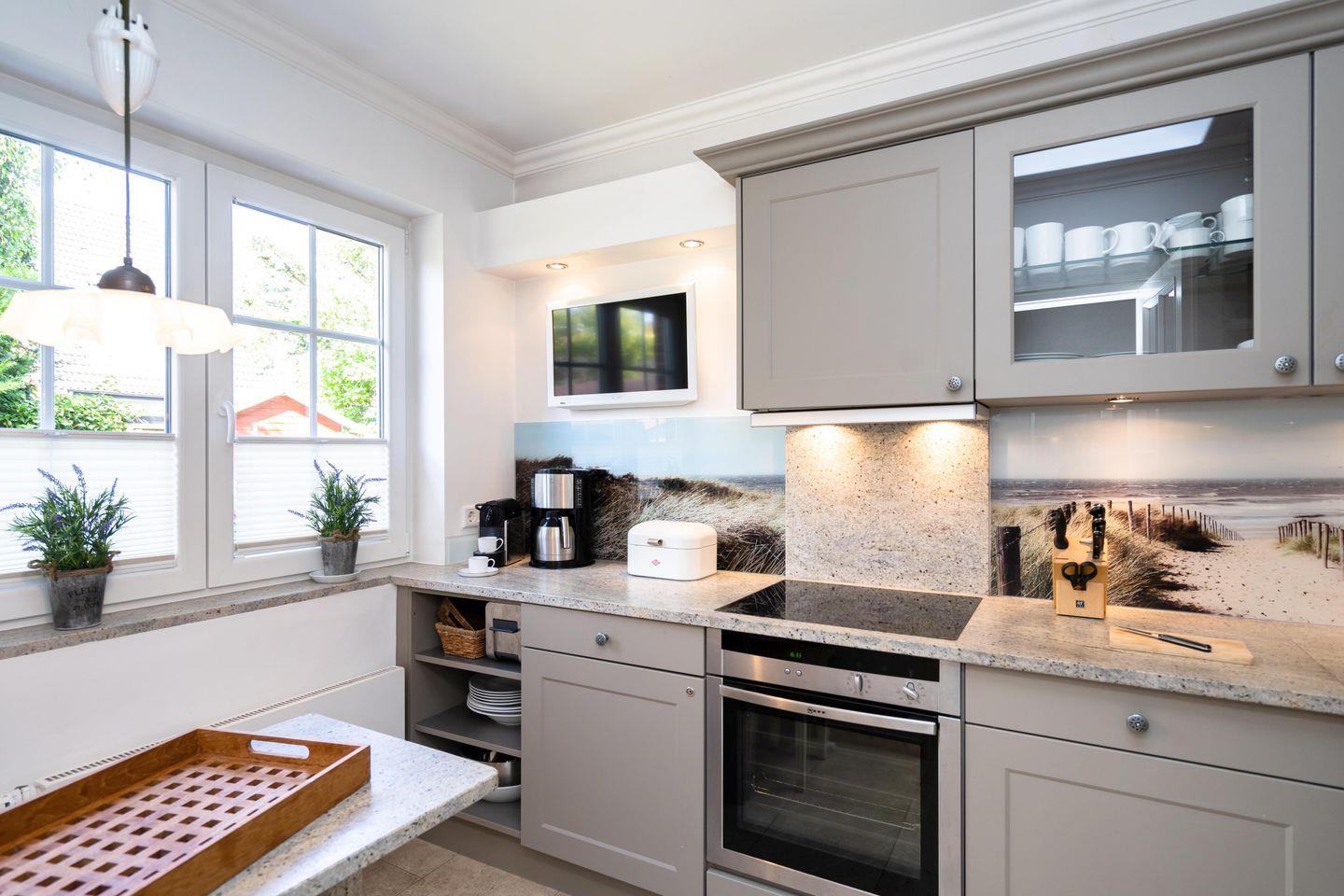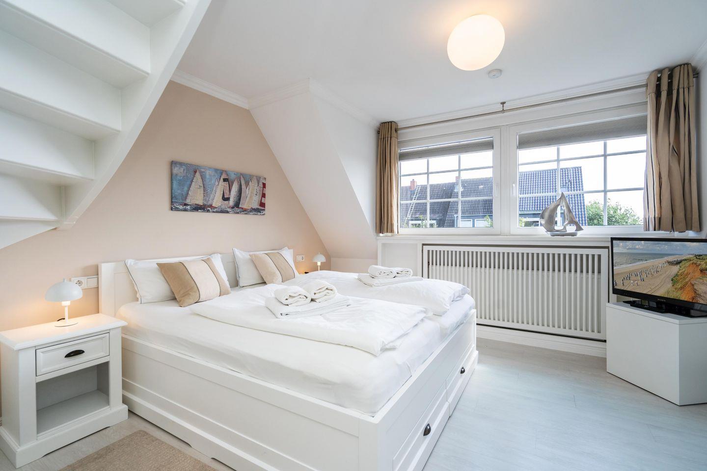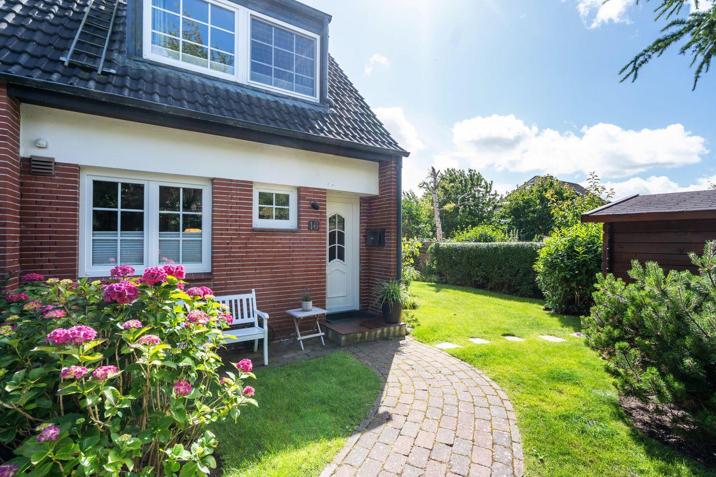 Dieses modern eingerichtete, sanierte 5-Sterne Reihenendhaus mit 120 m² Wohnfläche bietet Ihnen ein gemütliches Wohn- und Esszimmer mit Flatscreen Fernseher. Die komplett ausgestattete Küche befindet sich im Erdgeschoss. Im Erdgeschoss befindet sich außerdem ein Gäste-WC. Im Obergeschoss erwarten Sie drei große Doppelschlafzimmer und zwei Duschbäder. Nutzen Sie gerne den großen Garten mit zwei Terrassen und einem Strandkorb (in der Saison) in absolut ruhiger Lage. Das Ferienhaus verfügt über WLAN, zwei zugehörige PKW-Stellplätze, eine Waschmaschine sowie einen Wäschetrockner im eigenen Gartenhaus. Ein Haustier ist auf Anfrage erlaubt.