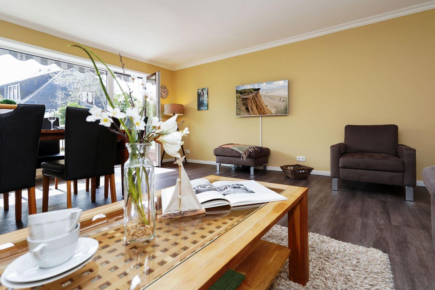 Familienfreundliche ca. 80 m² große Erdgeschosswohnung für bis zu 4 Personen am Ortsrand zu Westerland mit schönem, hundefreundlichem Garten und zugehörigem PKW- Stellplatz. Inklusive WLAN und Strandkorb (in der Saison).