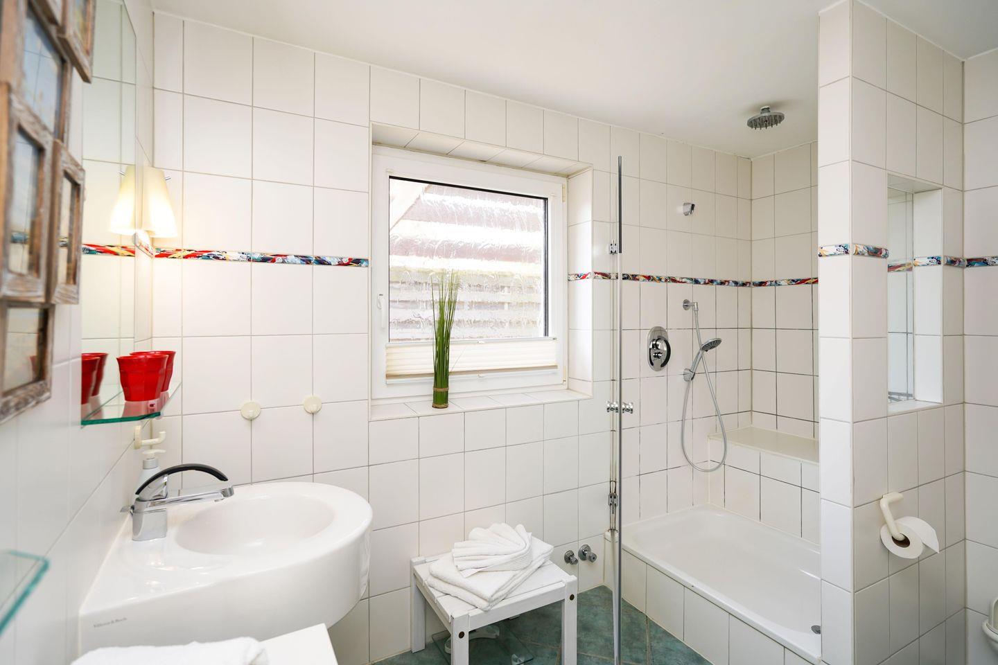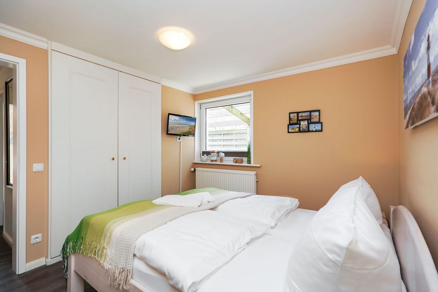 Diese familienfreundliche ca. 80 m² große Erdgeschosswohnung für bis zu 4 Personen bietet Ihnen ein gemütliches Wohn- und Esszimmer mit Kabel-TV sowie eine voll ausgestattete Küche samt Geschirrspüler, zwei Doppelschlafzimmer und ein Duschbad. Nutzen Sie gerne den eingezäunten Garten mit eigener Südterrasse und einem Strandkorb (in der Saison). Die Ferienwohnung verfügt über WLAN, einen zugehörigen PKW-Stellplatz, eine Waschmaschine sowie einen Wäschetrockner. Haustiere sind erlaubt.