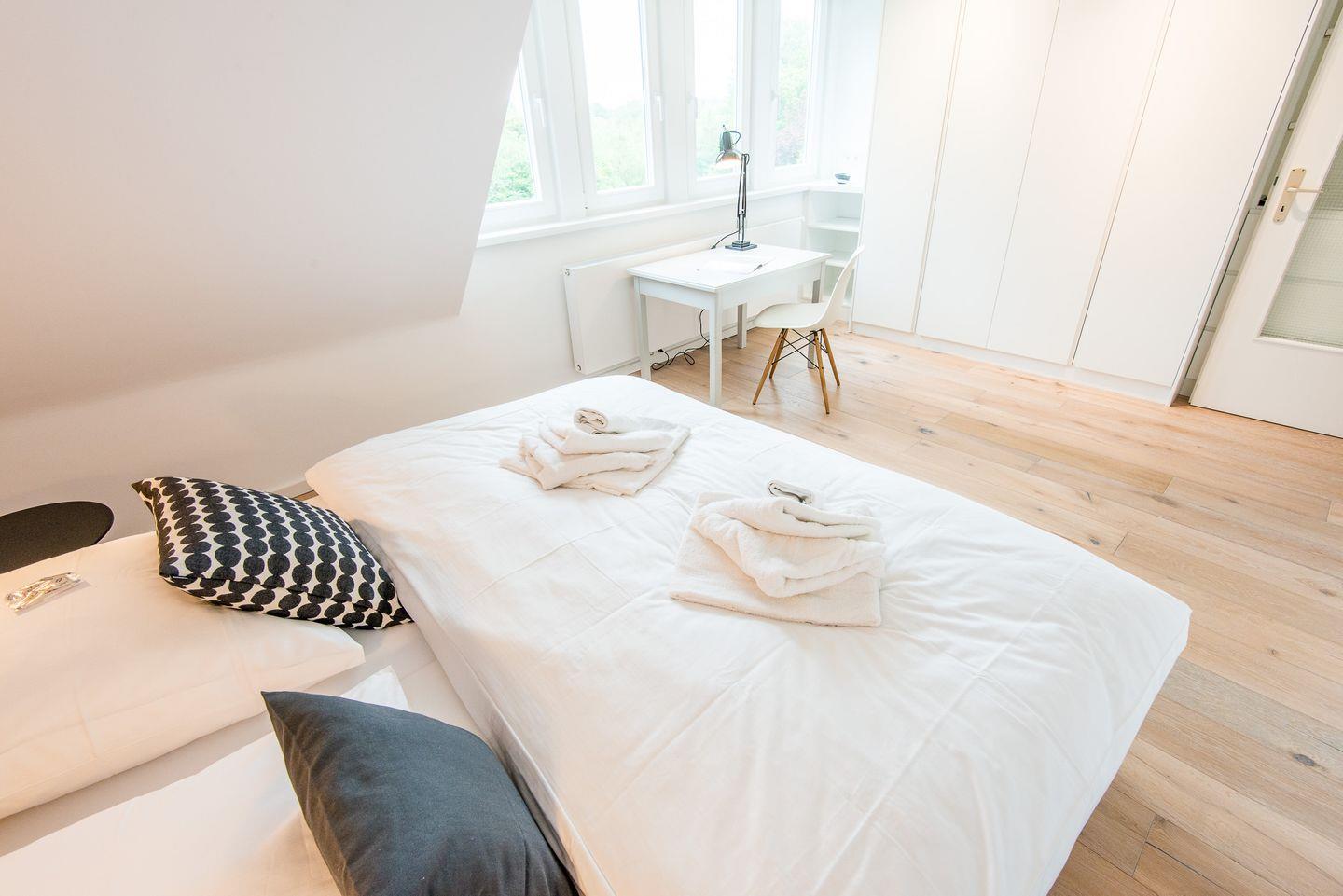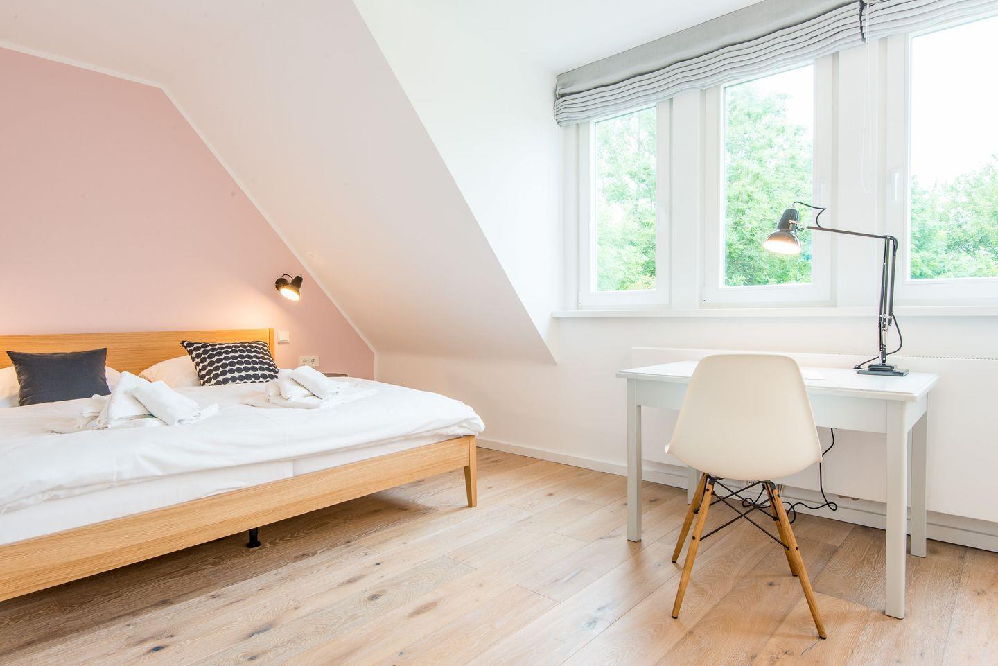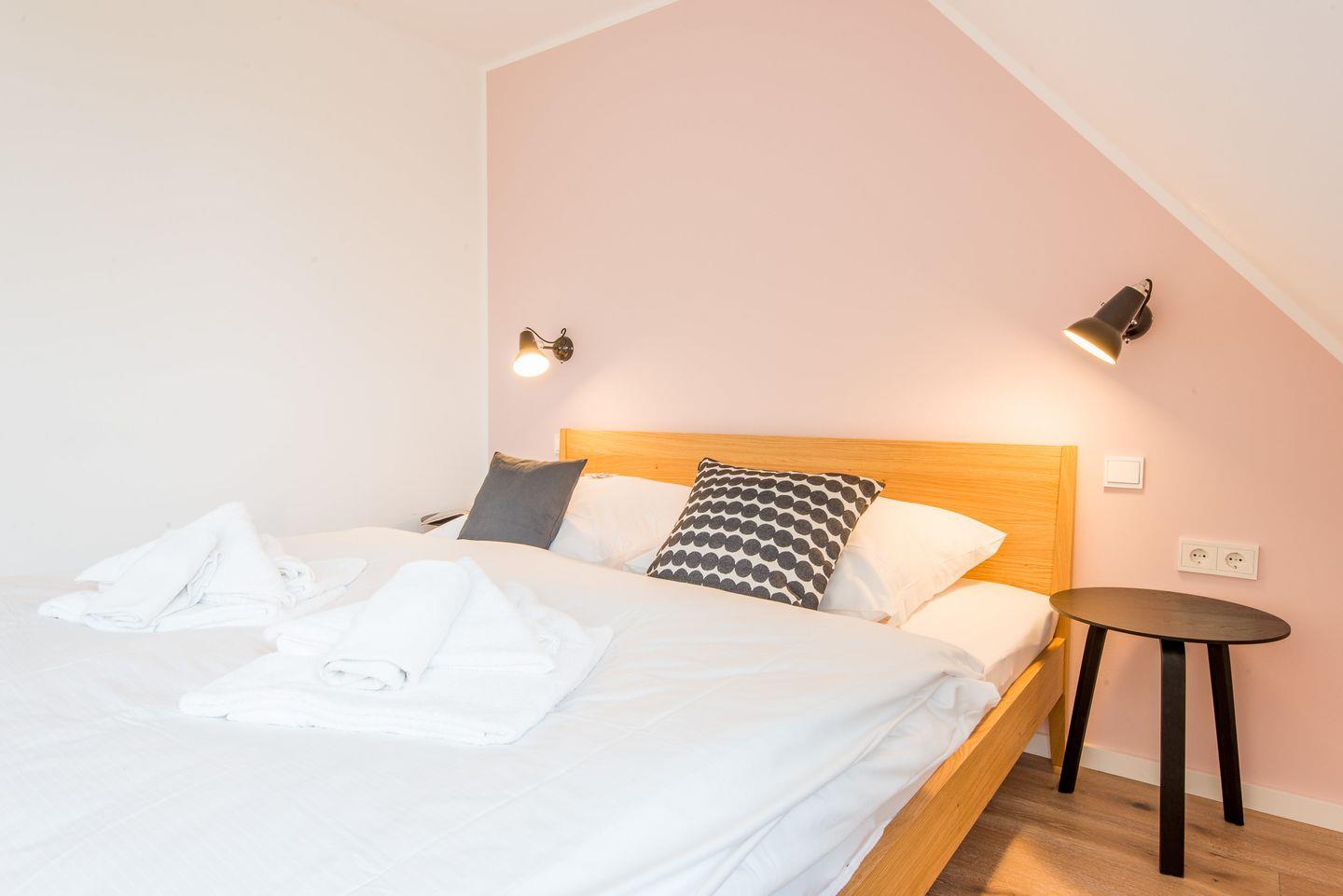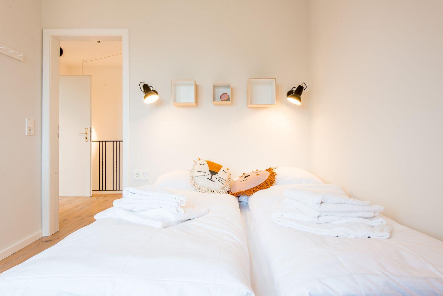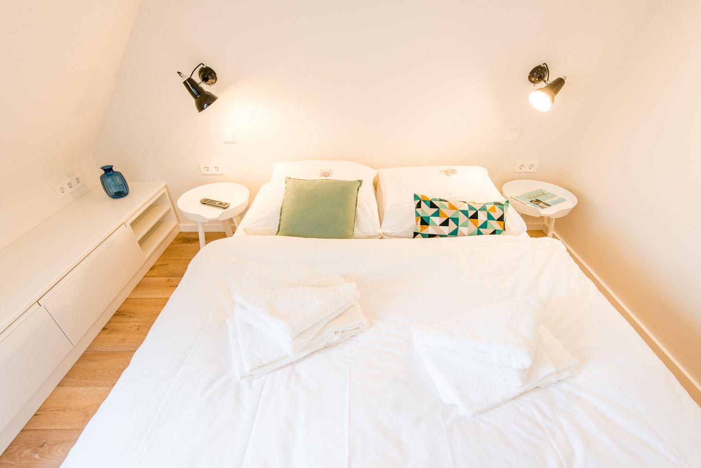 Das Hauptschlafzimmer verfügt über ein gemütliches Doppelbett (2x 90x200 cm), einen geräumigen Kleiderschrank und einen TV für zusätzlichen Komfort. Zwei weitere Schlafzimmer, ebenfalls mit Doppelbetten (2x 90x200 cm) und TV, bieten ausreichend Platz für alle Gäste und garantieren eine erholsame Nachtruhe.