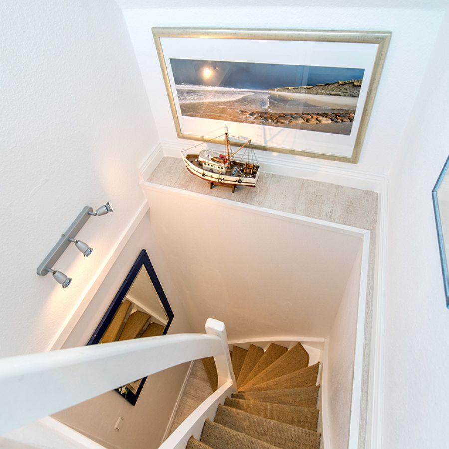 Moin und herzlich Willkommen im Appartement „Studio“, einer kleinen, sehr gemütlichen Ferienwohnung unterm Dach, die 32 Quadratmeter groß und über eine urige halbe Wendeltreppe zu erreichen ist. Die lichtdurchflutete Wohnung bietet Platz für höchstens drei Personen, wobei eine*r dann auf der Schlafcouch im Wohnzimmer nächtigt.