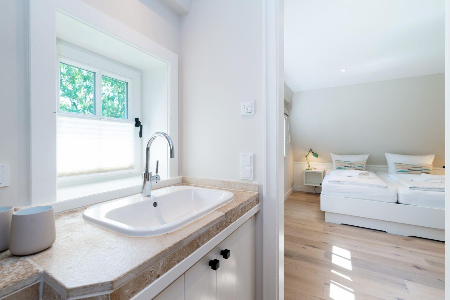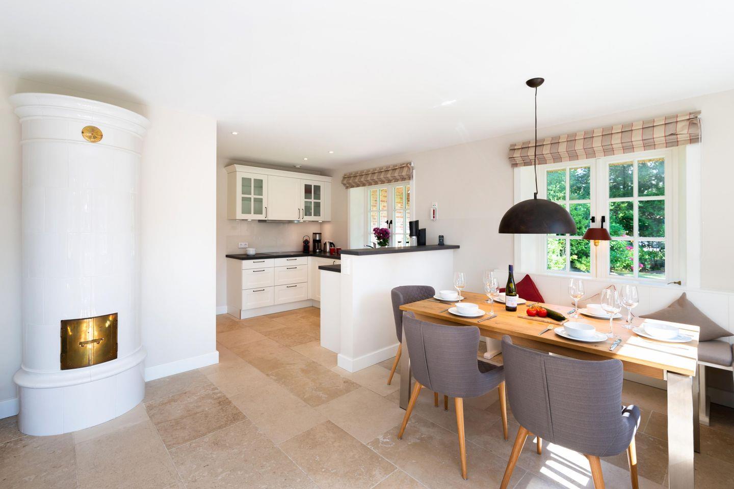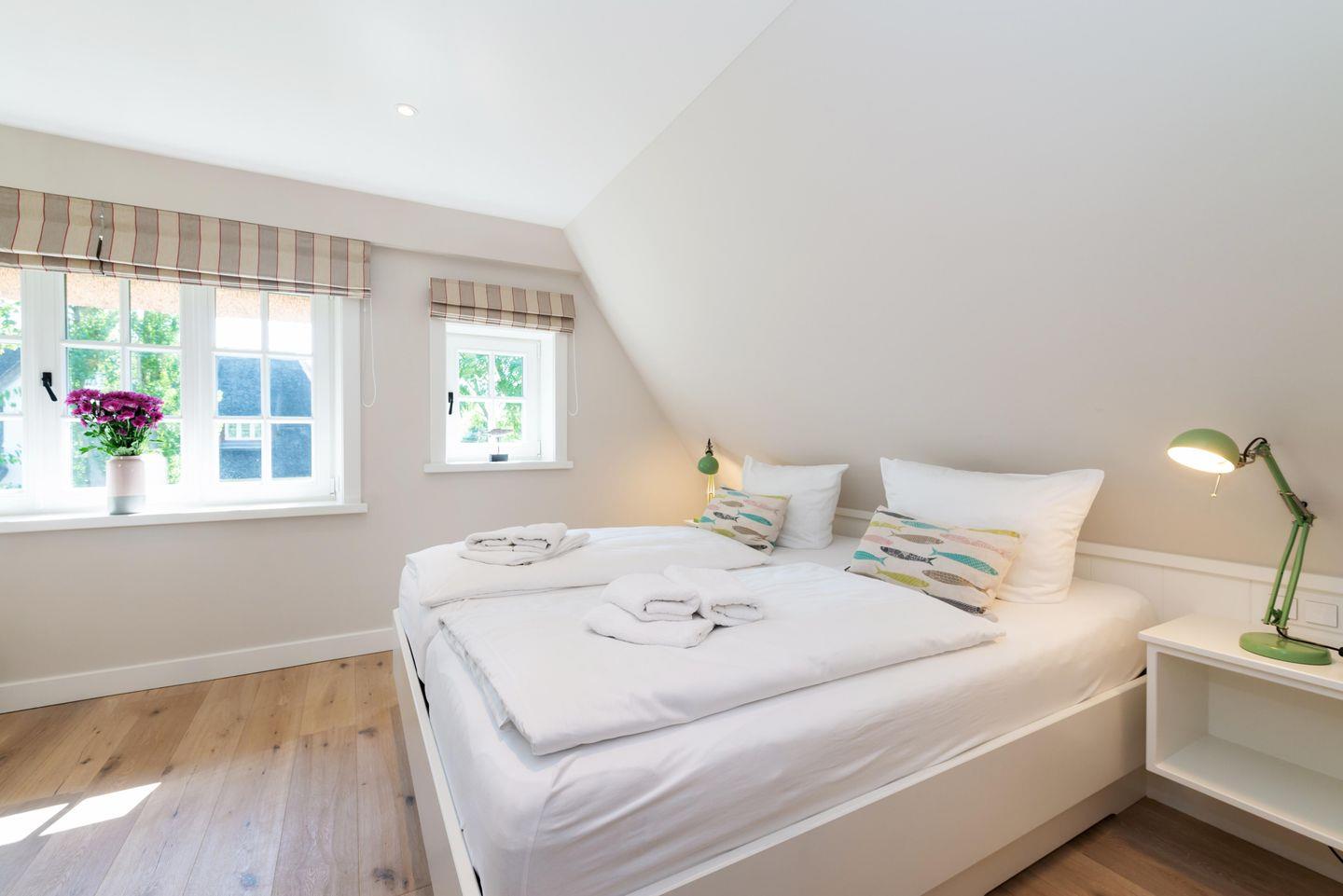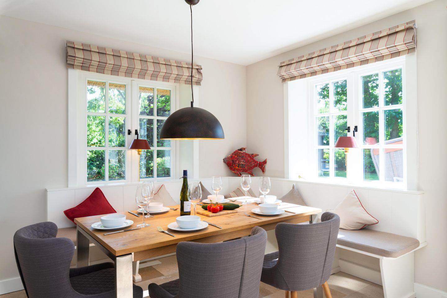 Ein Traum unter Reet. Diese friesische Doppelhaushälfte für bis zu 8 Personen im Herzen Keitums bietet auf 170 m² einen Mix aus Modernität und absoluten Luxus. Der lichtdurchflutete Wohnbereich mit offener Küche bietet viel Platz zum gemeinsamen Kochen, Essen und Verweilen. Auf der angrenzenden Terrasse samt Gartenmöbeln und Strandkorb (in der Saison) lassen sich viele Sonnenstunden verbringen. An kalten Tagen sorgt der Kachelofen im Wohnbereich für warme Temperaturen. Im Eingangsbereich befindet sich ein Gäste-WC. Über eine Treppe gelangen Sie ins Obergeschoss, dort erwarten Sie zwei Schlafzimmer sowie zwei großzügige Bäder. Im Dachgeschoss befindet sich ein Schlafzimmer, welches mit zwei Einzelbetten ausgestattet ist. Ein weiteres großzügiges Schlafzimmer mit Bad en suite erwartet Sie im Souterrain. Dort dient Ihnen auch - besonders in den Wintermonaten - eine finnische Sauna mit Ruheraum als Wellnessoase. Alle Schlafräume sind durch hochwertige Tischlereinbauten ausgestattet. WLAN, einen zugehörigem PKW-Stellplatz am Haus inkl. E-Ladestation, eine abschließbare Fahrradgarage ebenfalls mit Ladestation für Ihr E-Bike sowie ein Waschtrockner stehen Ihnen zur Verfügung. Haustiere sind willkommen.