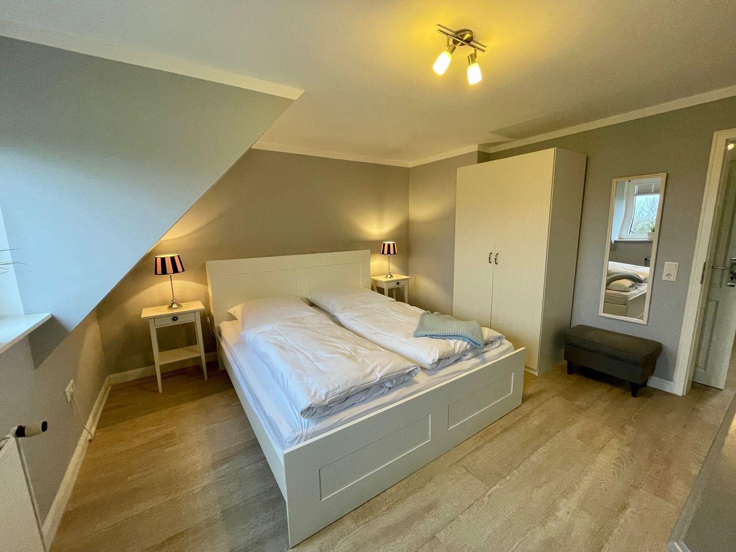 Unser großes Appartement befindet sich im ersten Stock unserer Doppelhaushälfte in einer sehr ruhig gelegenen Ringstrasse mit geringem Verkehrsaufkommen. Unsere kleine Siedlung grenzt unmittelbar an das Tinnumer Naturschutzgebiet "Salzwiesen" und ist somit ideal für Spaziergänger, Jogger und Radfahrer. Einem Spaziergang in den umliegenden Feld- und Wanderwegen, sowie zur Tinnum Burg (0,5 km) oder an den Strand (1,2 km) sollte also nichts im Wege stehen. Aber auch die Friedrichstrasse in der Innenstadt (2,5 km) ist in kurzer Zeit zu erreichen.