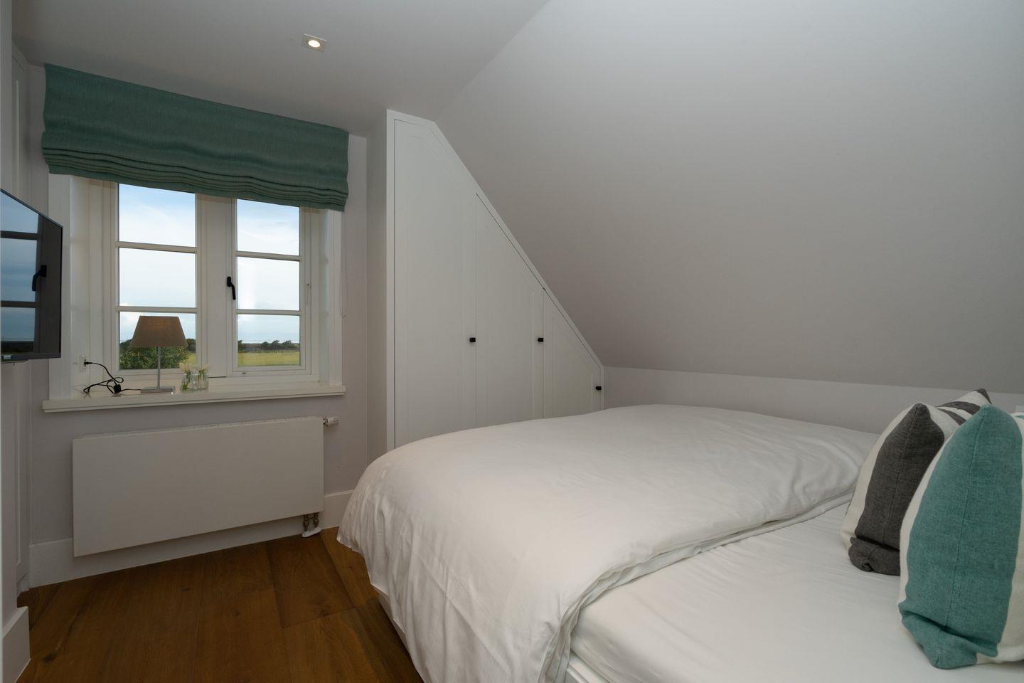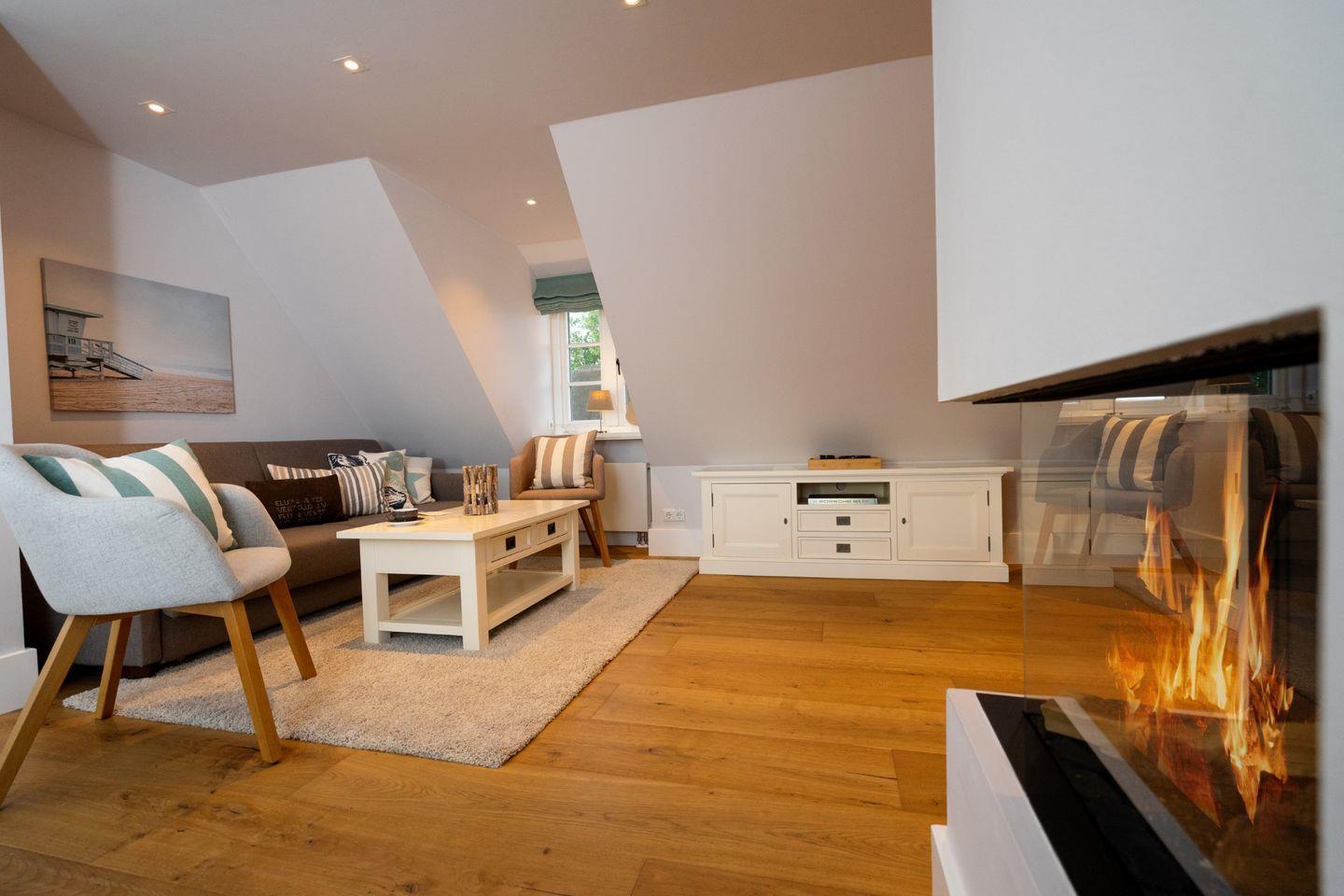 Die charmante Ferienwohnung "Pauenhuus" liegt im Obergeschoss eines historischen Reetdachhofs am Ortsrand von Archsum. Aus den Fenstern genießen Sie traumhafte Ausblicke über die Wiesen, bis aufs nah gelegene Wattenmeer. Hochwertige Materialien, wie z.B. Eichendielen und Naturstein sorgen für ein ganz besonderes Wohngefühl. Der großzügige Wohnbereich mit offener Küche und Essbereich ist mit einem Gas-Kamin ausgestattet. Zur Wohnung gehört ein geschützter Terrassenplatz in Südausrichtung mit Strandkorb und Weitblick.
