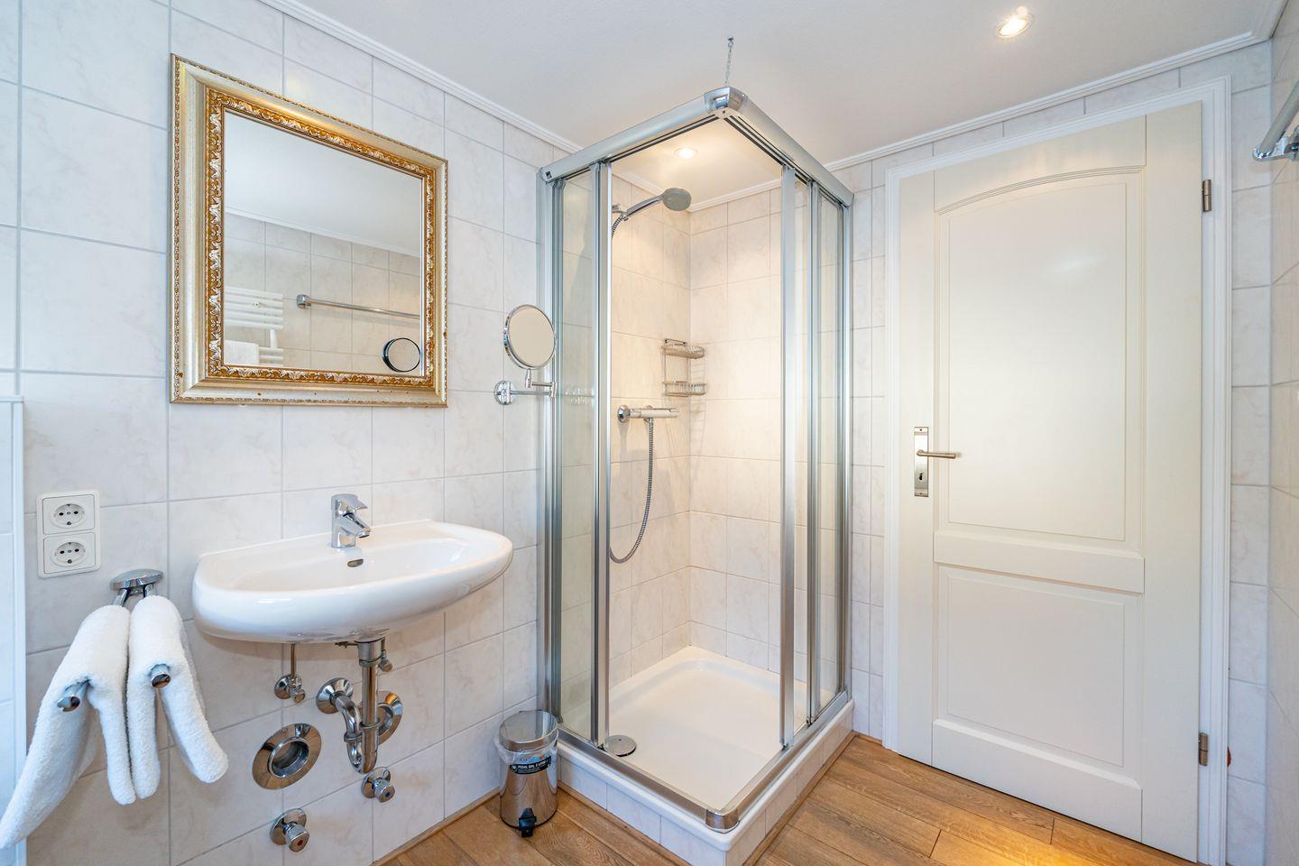 Die Ferienwohnung befindet sich im 1. Obergeschoss und verfügt komplett über Holzfußböden. In der gemütlichen Küche mit Esstisch, TV, Kaffeevollautomat, Eierkocher, Saftpresse kann man das Frühstück bis in den späten Nachmittag hinein verlängern. Das geräumige Wohnzimmer verfügt über eine Schlafcouch (für 2 Personen), Sofaecke und TV. Alle TV-Geräte sind mit einem Magentamodul ausgestattet und verfügen nun über HD TV. Netflix, Apple TV, DAZN und WOW können mit Ihren persönlichen Zugangsdaten benutzt werden. In der Ferienwohnung gibt es ein Schlafzimmer mit Doppelbett, TV und Einbauschrank. Das Badezimmer verfügt über eine Dusche, WC, Waschtisch und einen Waschtrockner.